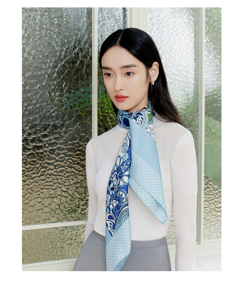 万事利“骑士光彩”63厘米双面印花真丝中方巾