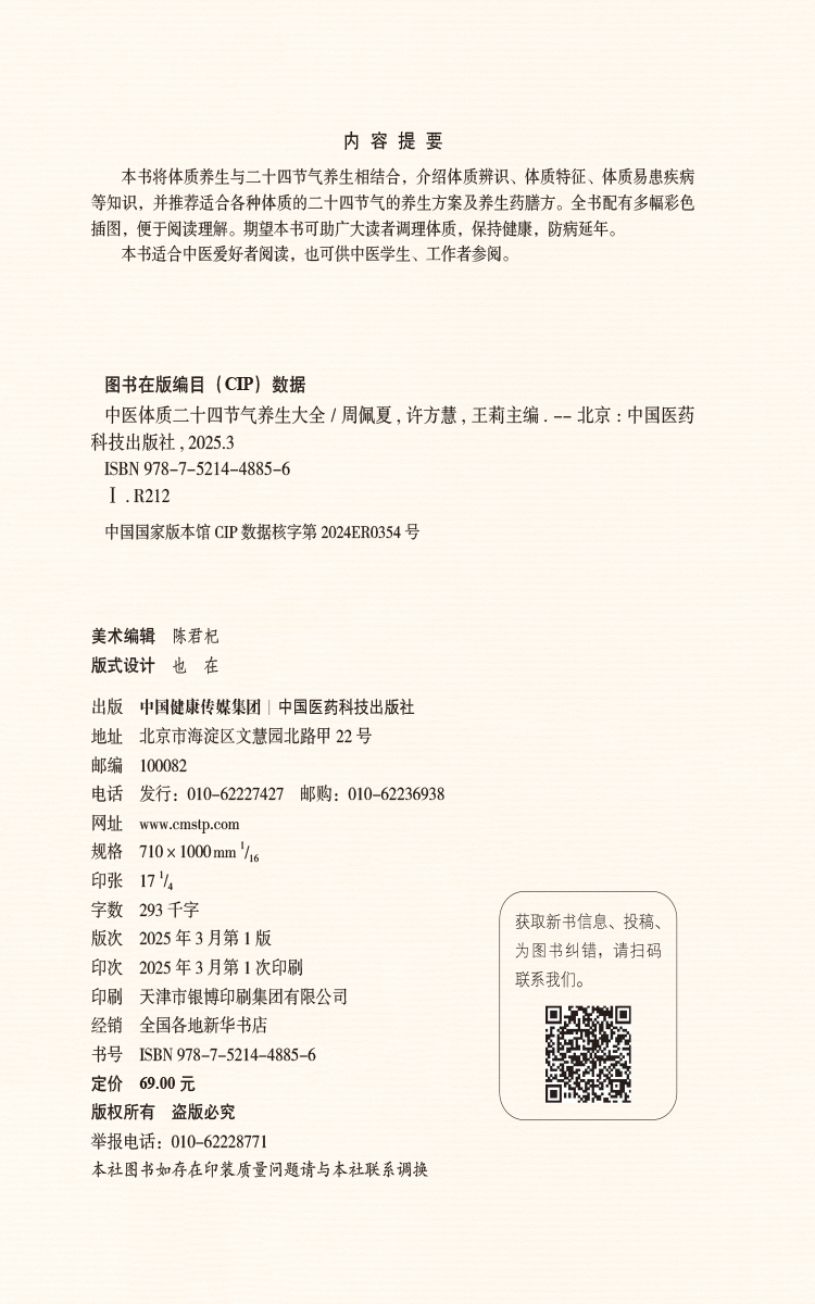 中医体质二十四节气养生大全 周佩夏 许方慧 王莉编 介绍体质辨识 体质特征 体质易患疾病等知识 9787521448856中国医药科技出版社