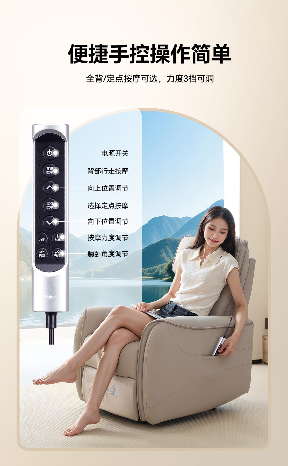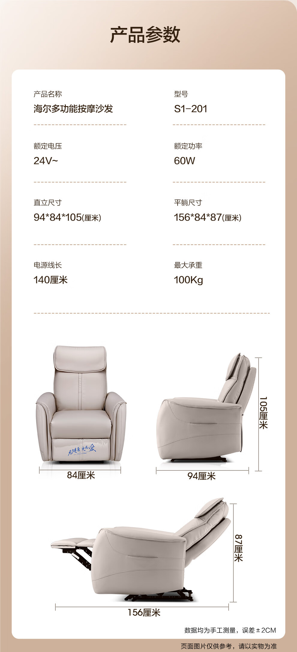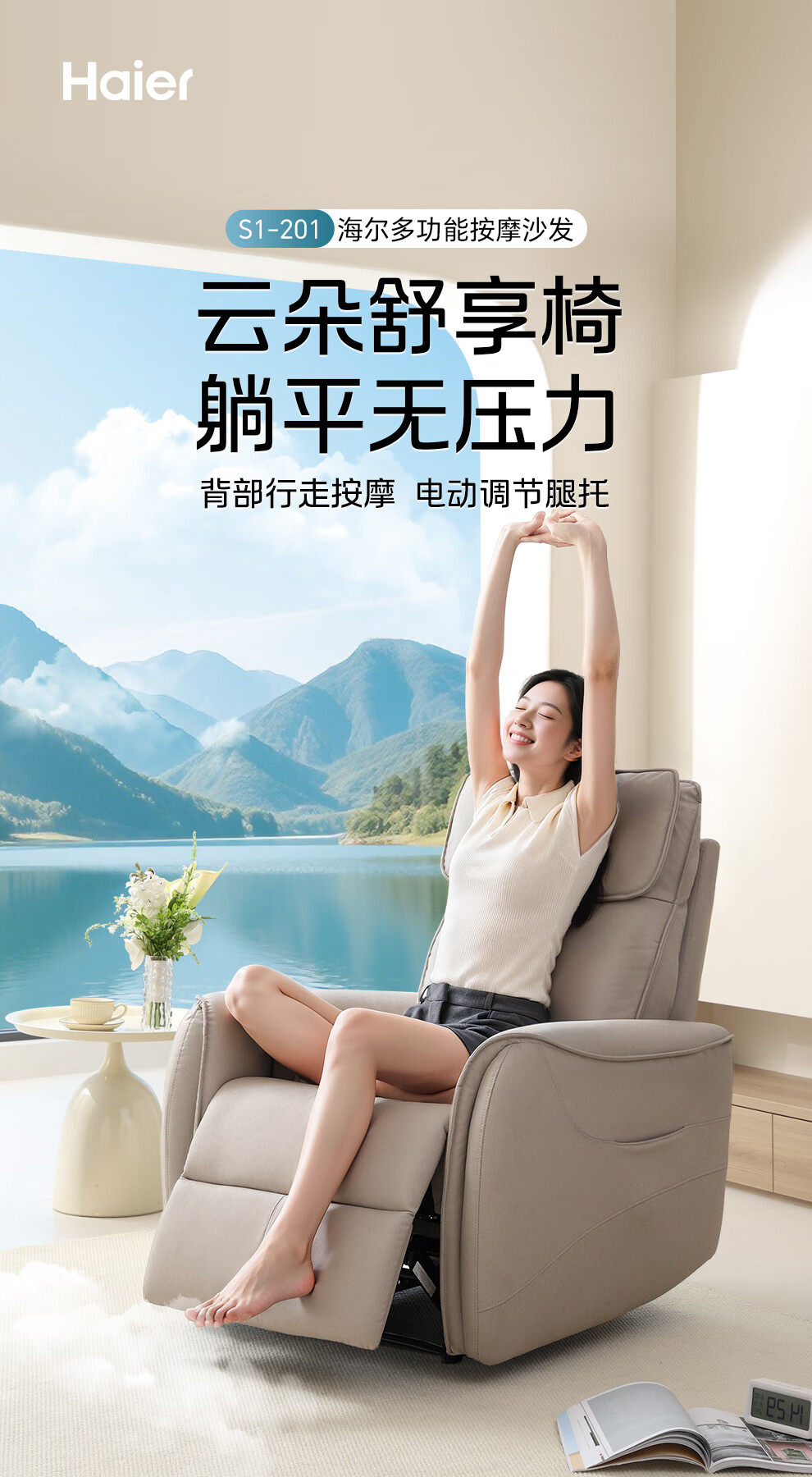 海尔按摩椅多功能单人沙发按摩沙发客厅休闲可躺懒人沙发椅摇摇椅小型智能按摩机父亲节礼物S1-201