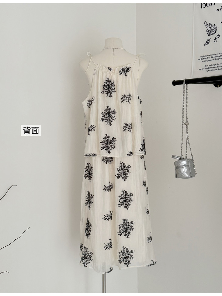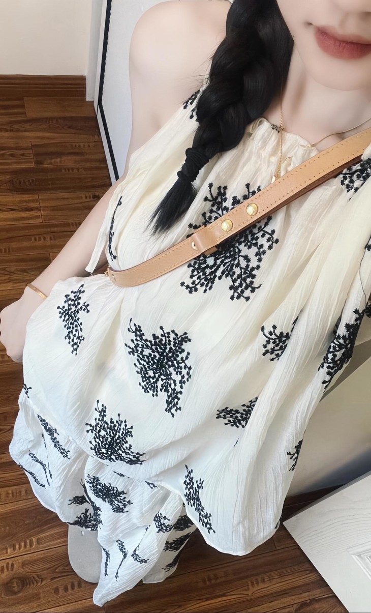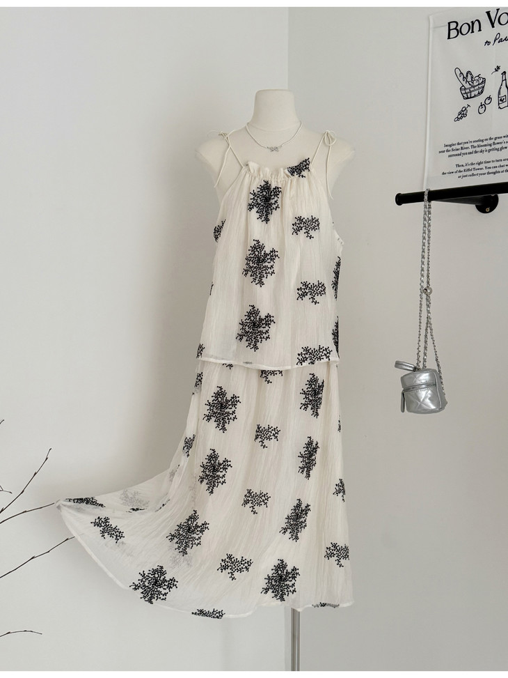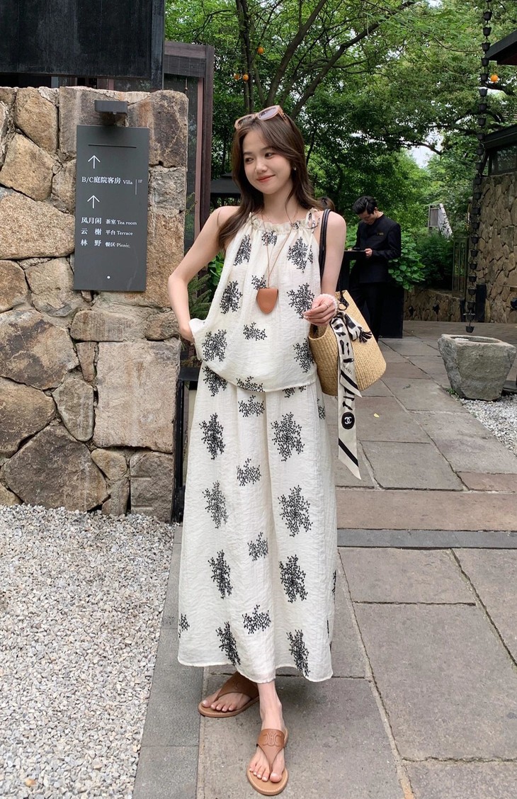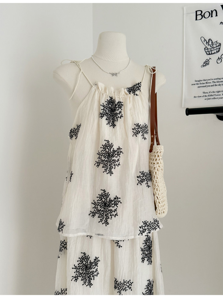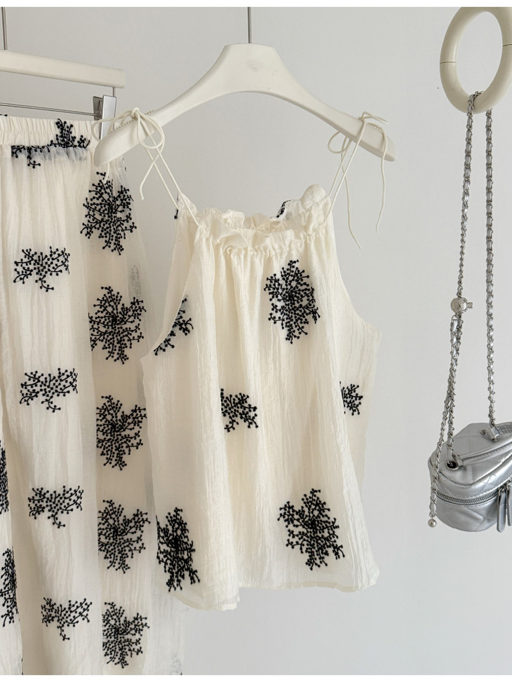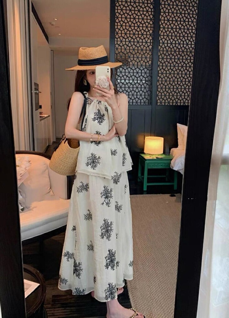 救命‼️谁懂啊😭 👉最近超爱的【刺绣系带挂脖小衫+松紧腰A字裙】套装 这套刺绣套装简直是夏日甜妹氛围感的收割机❗️ 温柔到骨子里 我愿称它为行走的温柔制造机❗️ 每次穿出门都被追着问链接 那种被夸到不好意思的快乐,全靠它给! ✅这一套直接把“温柔感拉满” 上身一整个清冷气质的温柔感~ 刻进DNA 里的那种😜