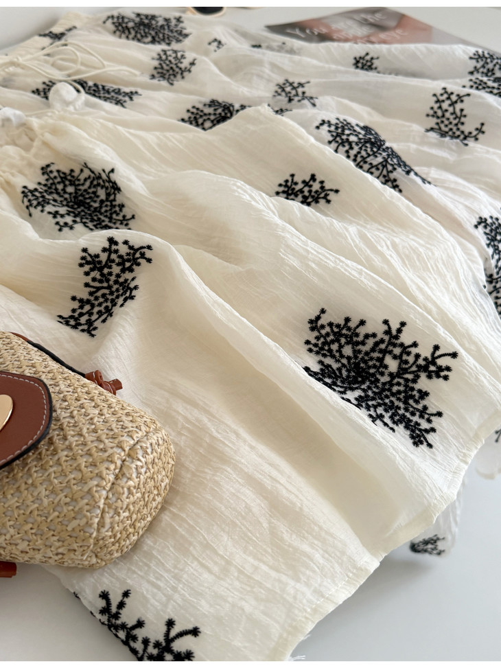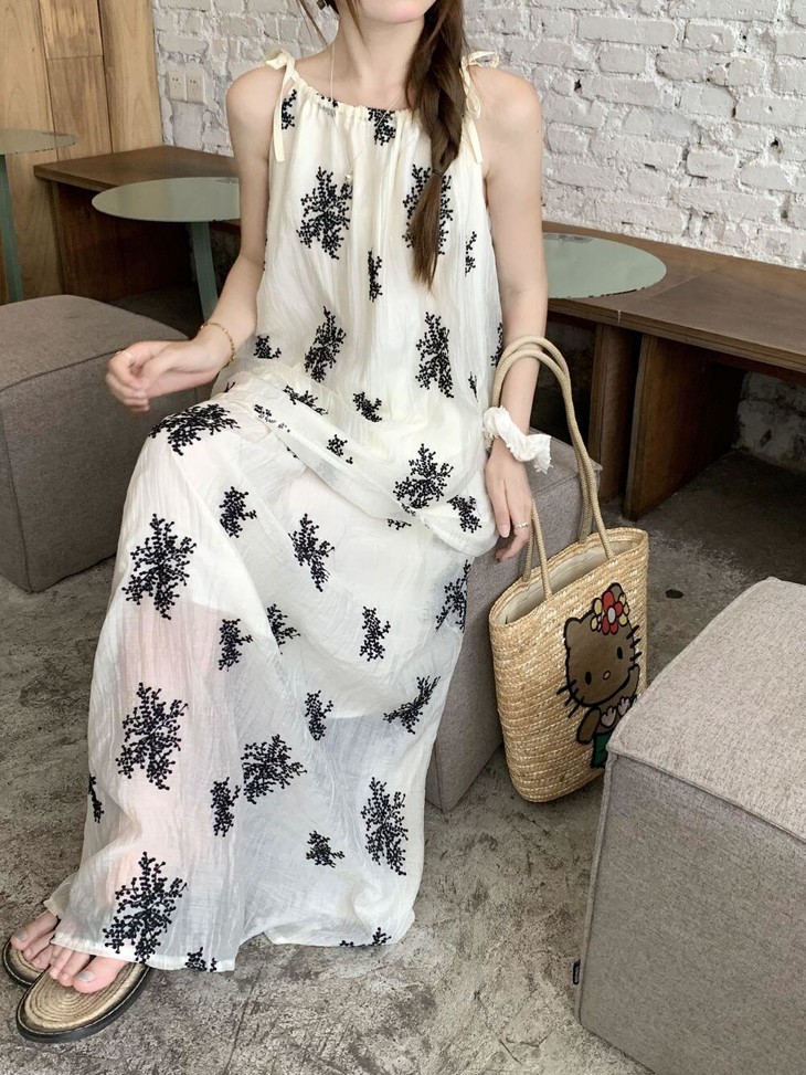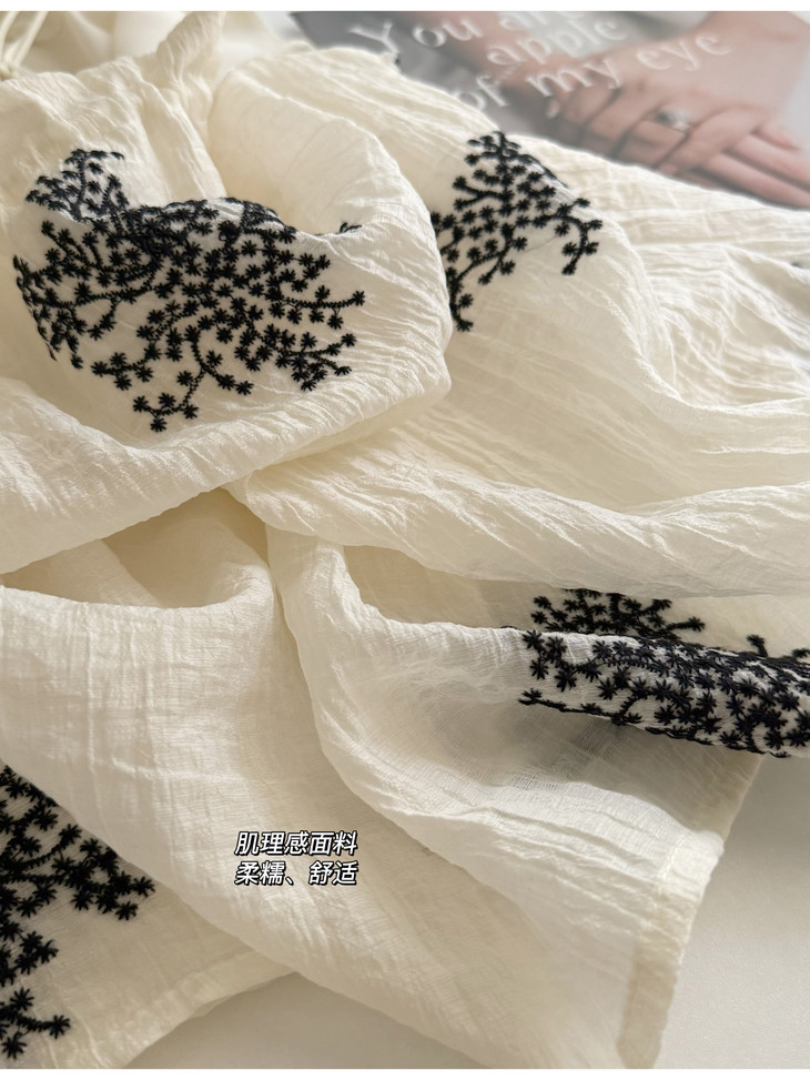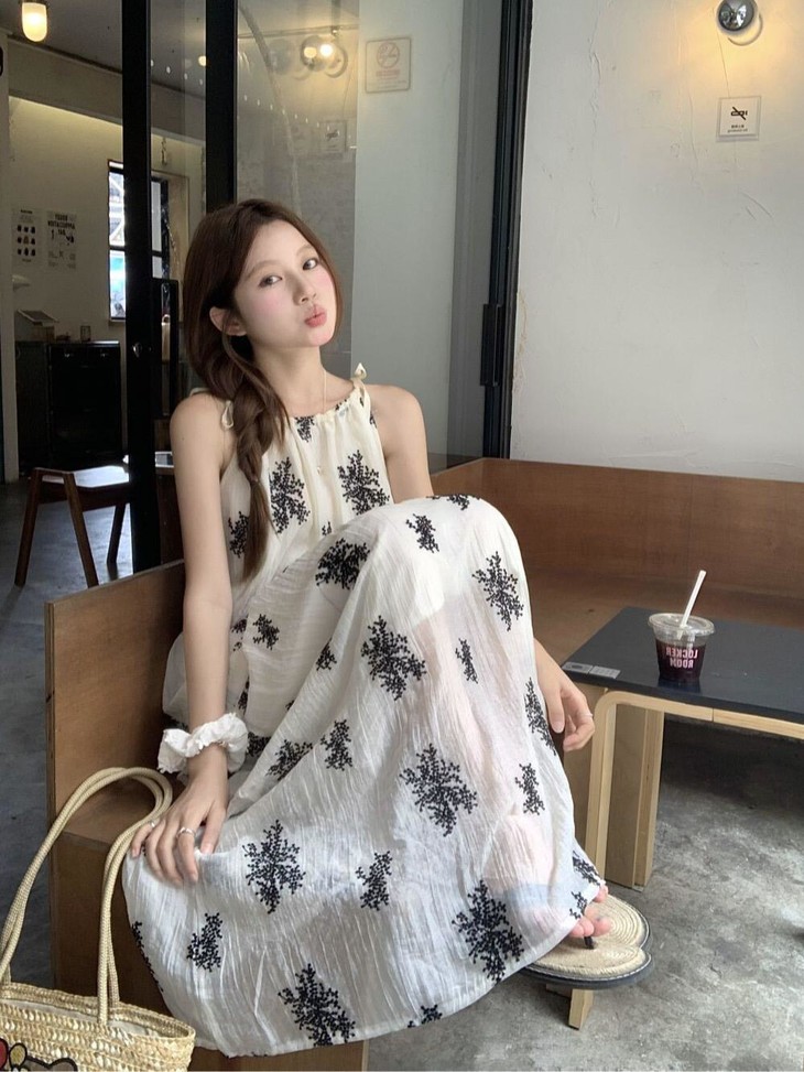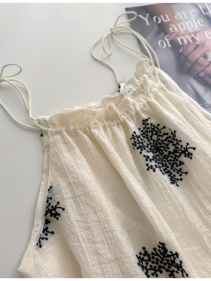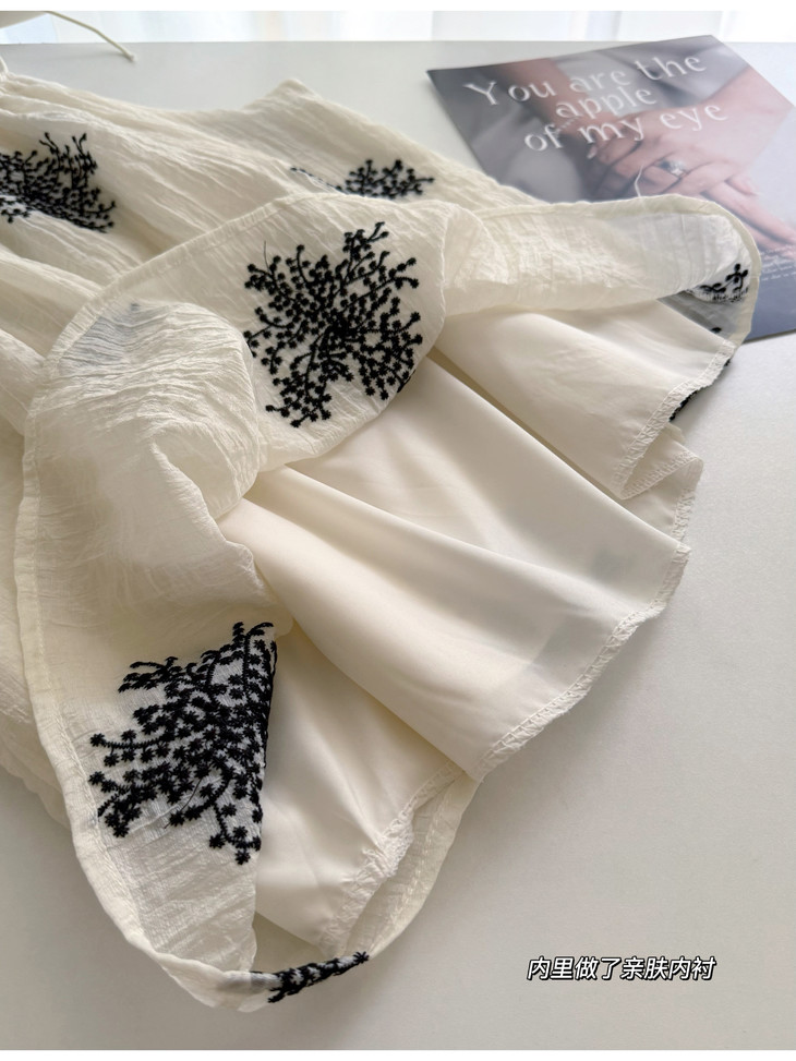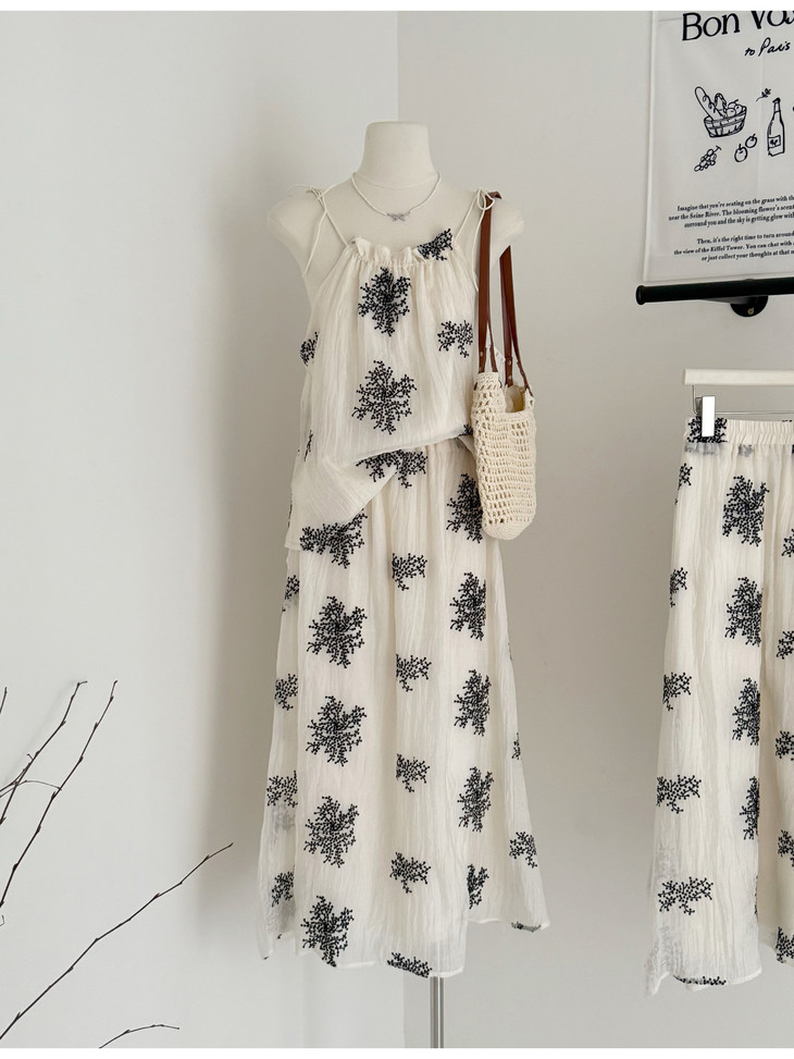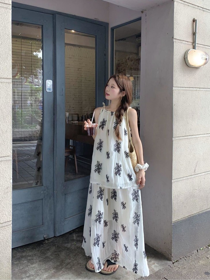 救命‼️谁懂啊😭 👉最近超爱的【刺绣系带挂脖小衫+松紧腰A字裙】套装 这套刺绣套装简直是夏日甜妹氛围感的收割机❗️ 温柔到骨子里 我愿称它为行走的温柔制造机❗️ 每次穿出门都被追着问链接 那种被夸到不好意思的快乐,全靠它给! ✅这一套直接把“温柔感拉满” 上身一整个清冷气质的温柔感~ 刻进DNA 里的那种😜