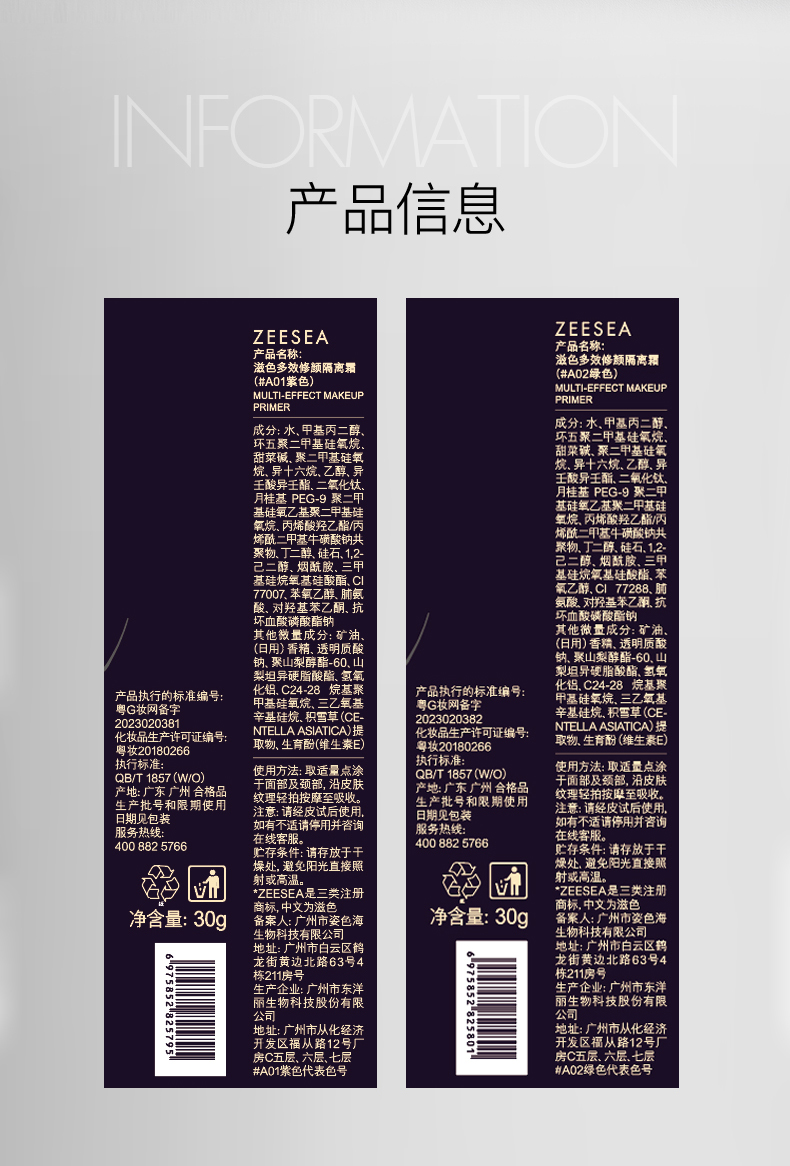 [软管隔离]【49.9任选3件 | 79.9任选5件 | 专区满3件送唇釉】ZEESEA滋色多效修颜隔离霜(软管升级版 压纹版)30g