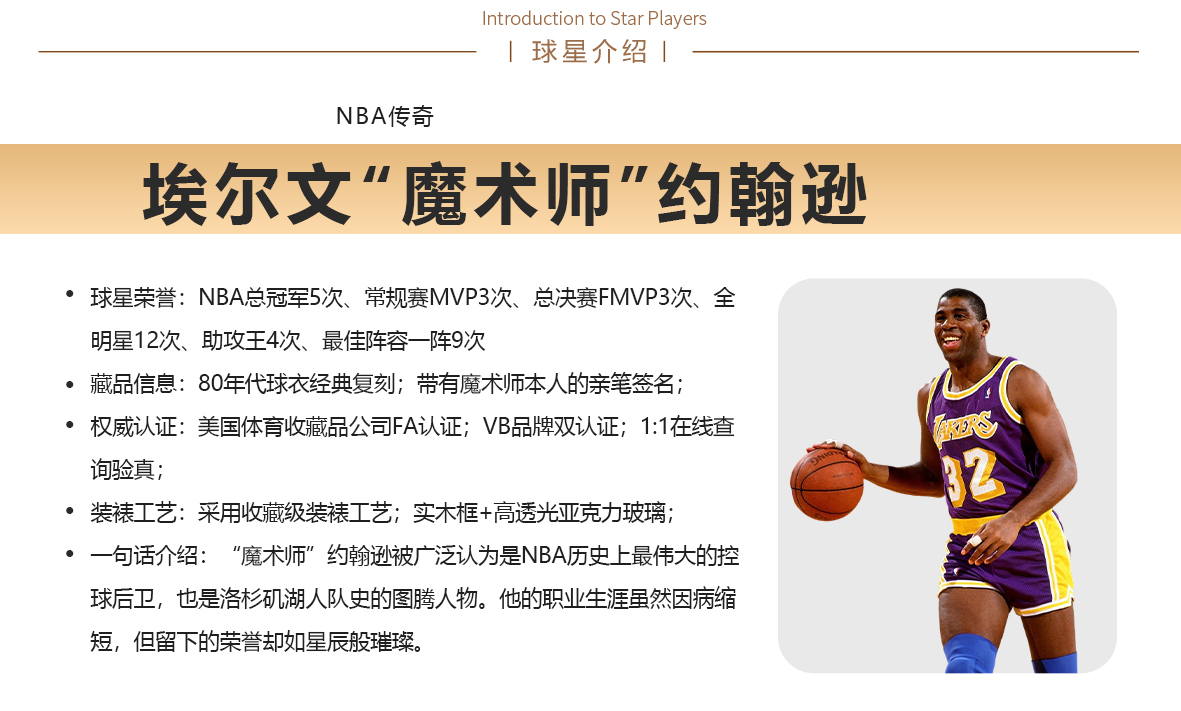 收藏系列 魔术师约翰逊 湖人队32号紫色 亲笔签名球衣(仅支持小程序下单 约45天到货)
