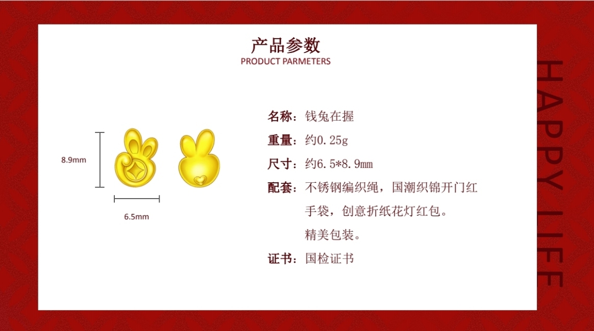 磨砂的质感,让小兔子更加可爱,选用精致配线,自带、送人都红红火火,吉祥如意!