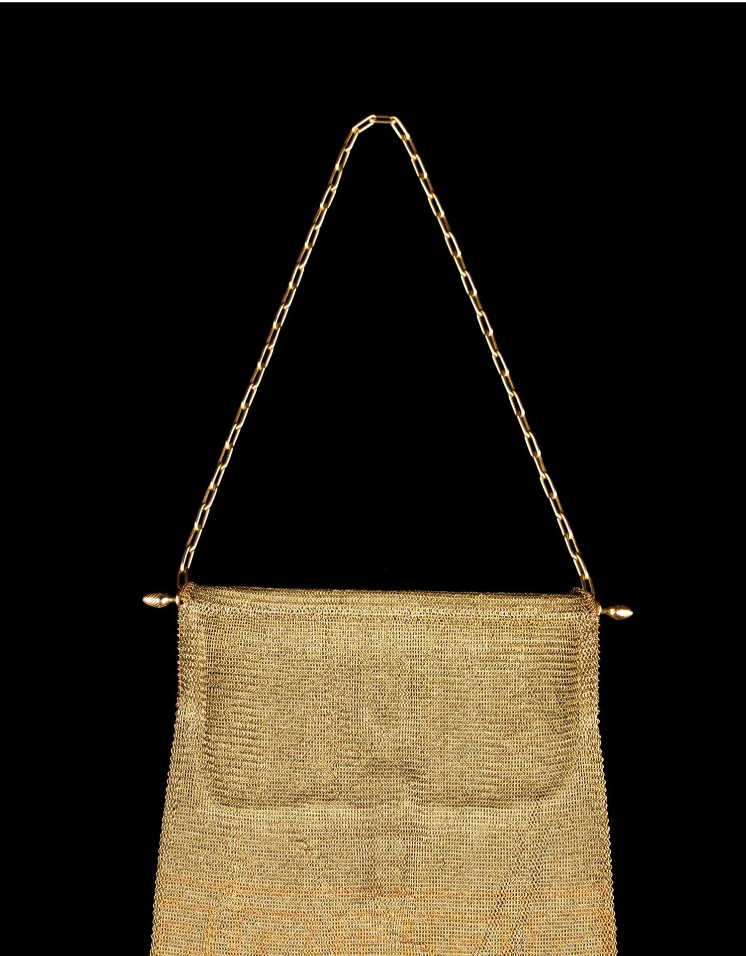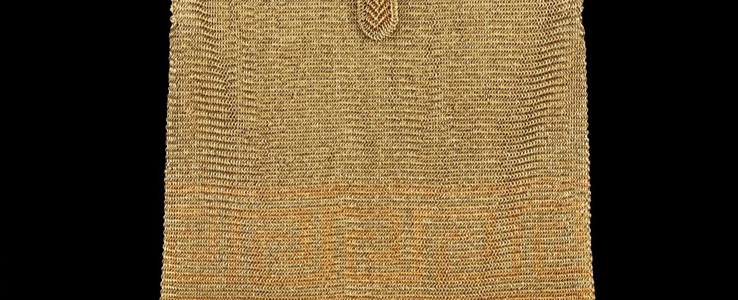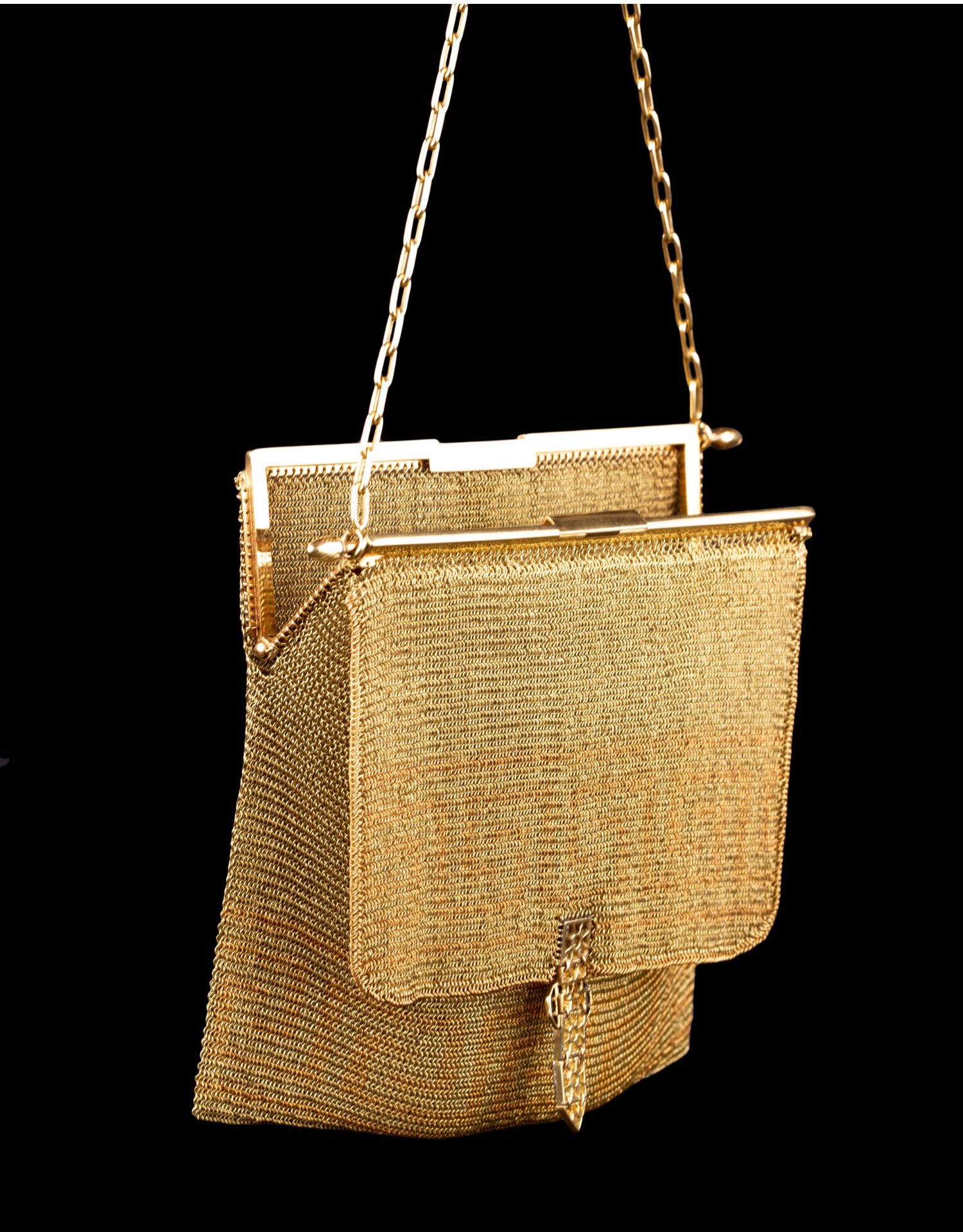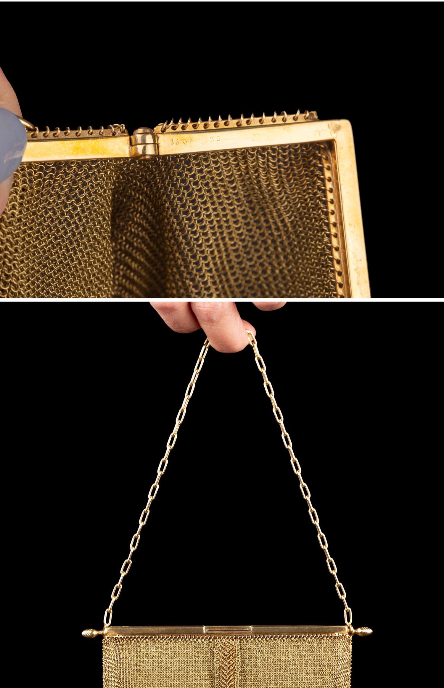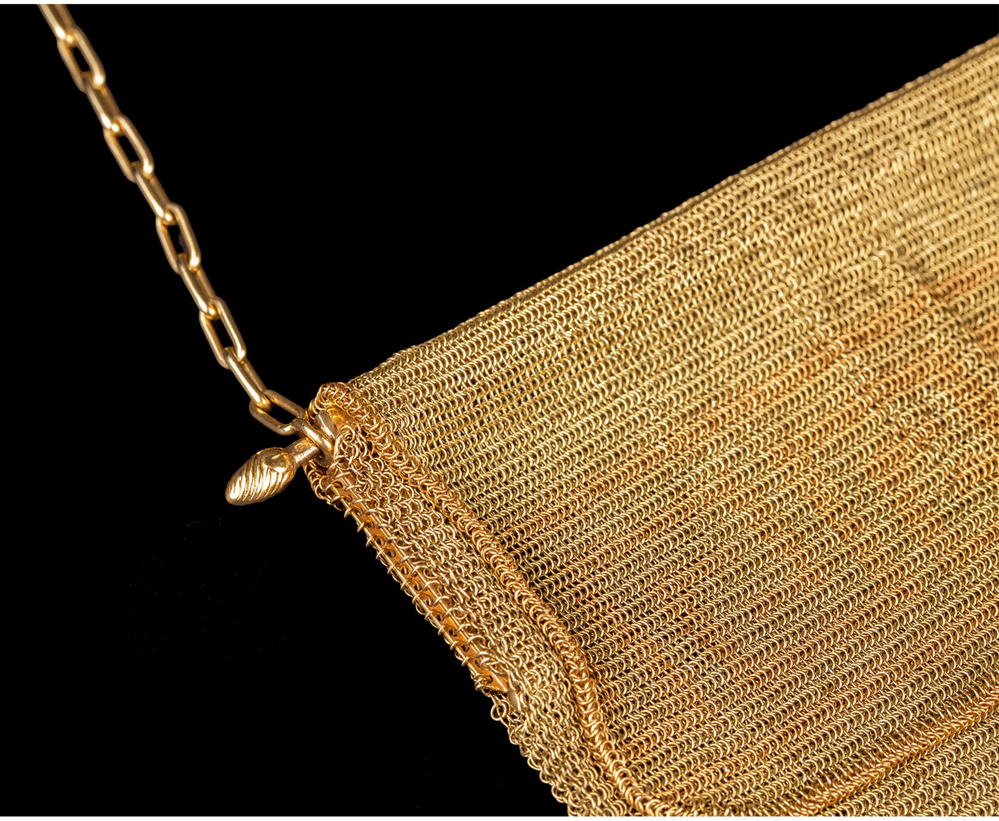 独角鹿西洋古董18K金黄金锁子甲编织希腊回字纹镶钻石女士晚宴包