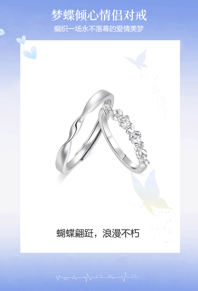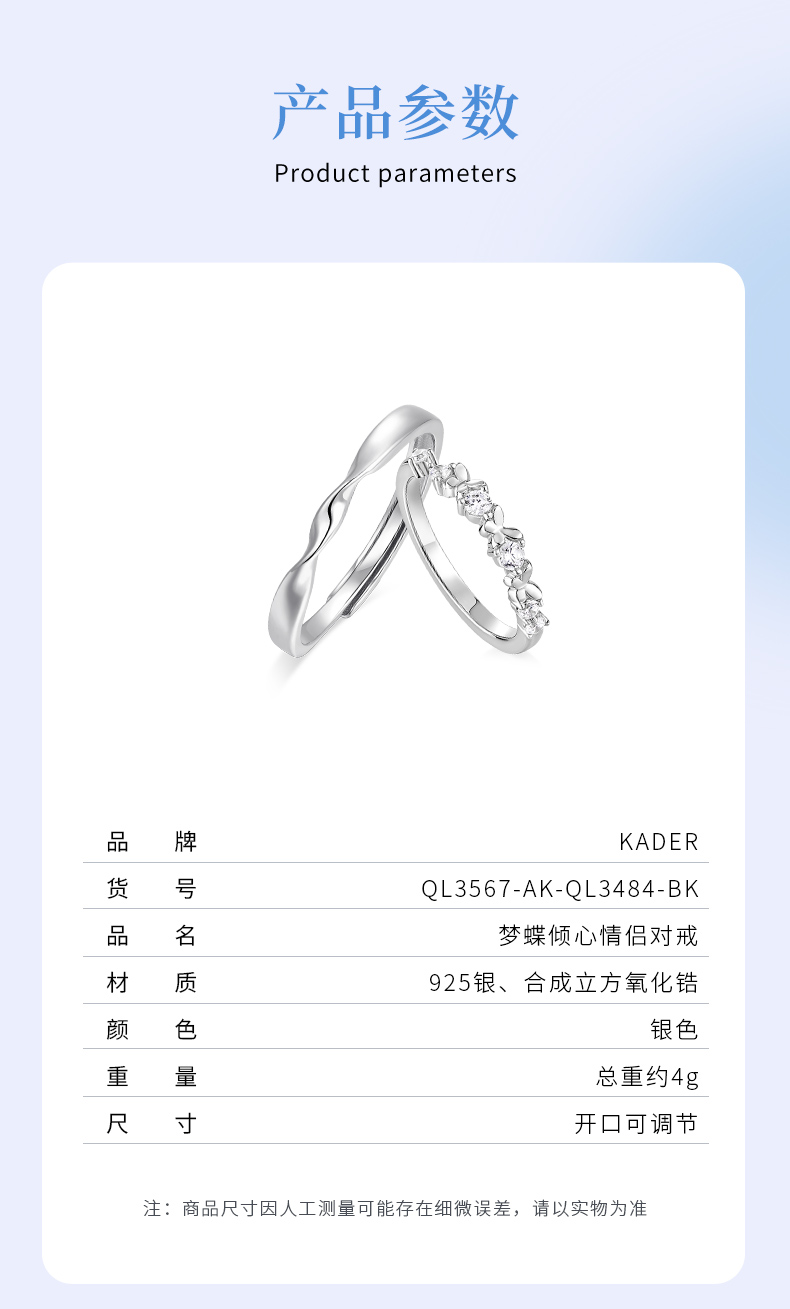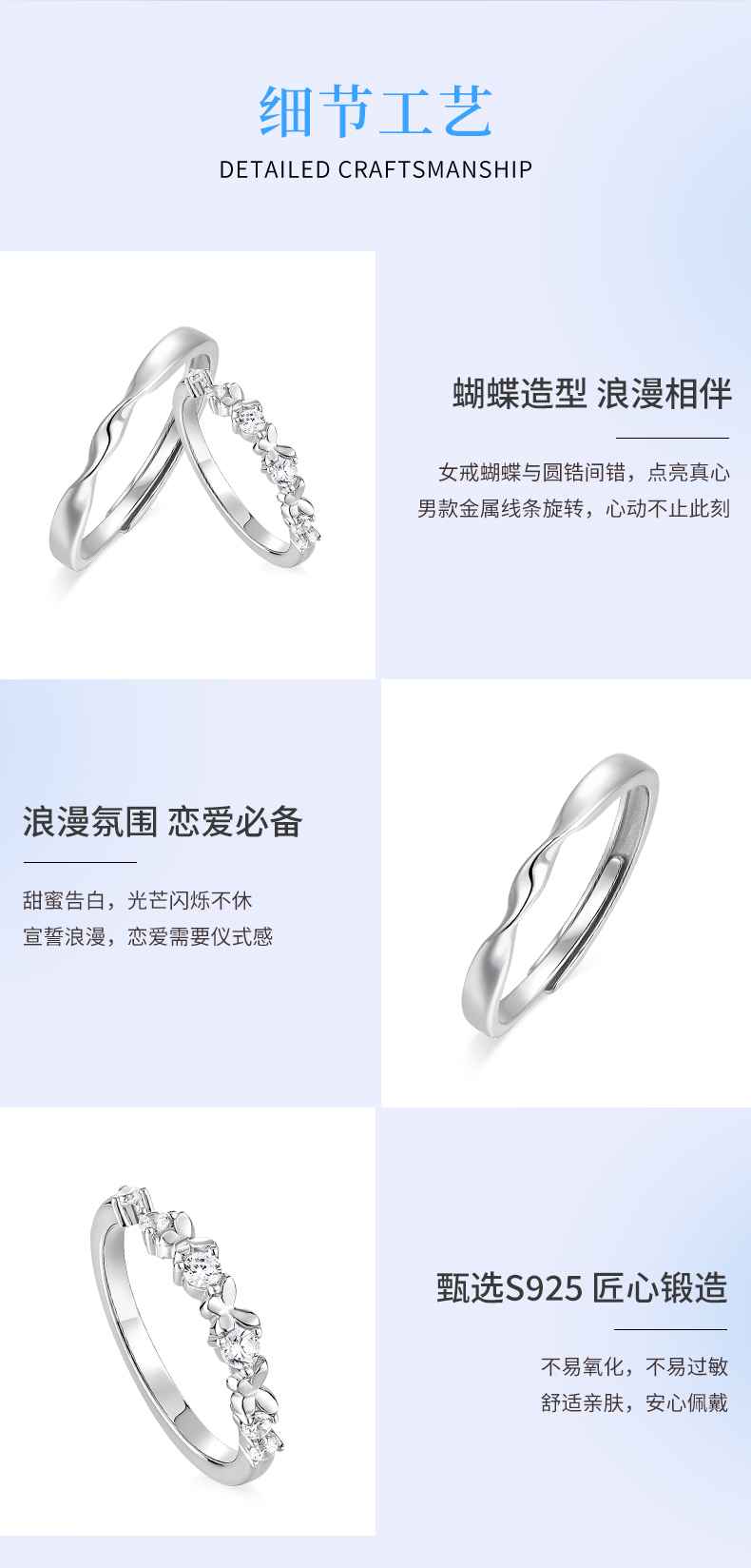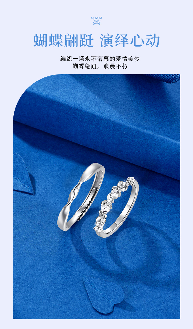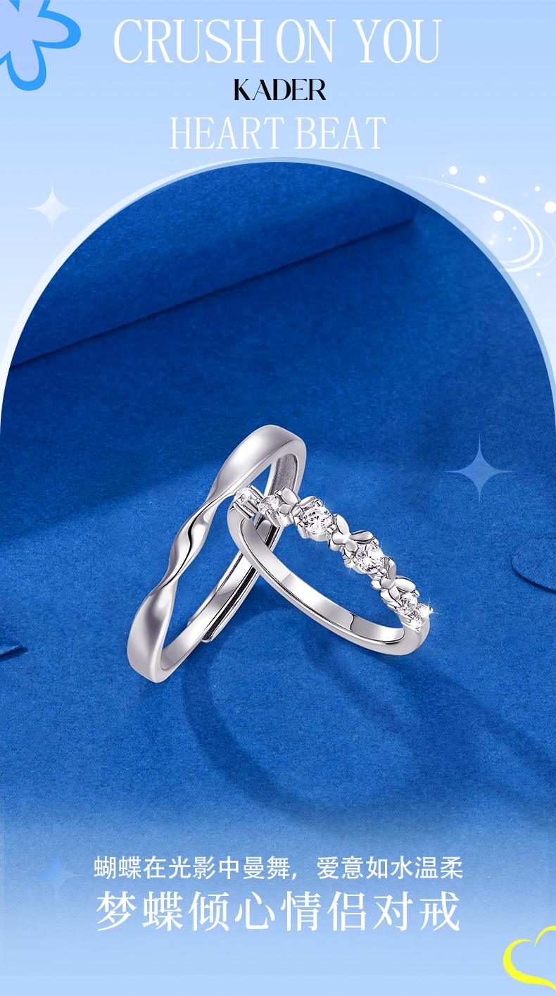卡蒂罗/KADER 星蝶之梦闺蜜女戒 闪闪蝶舞招财蝴蝶简约时尚可调节单戒一只 璀璨星光闪耀星点开口配饰