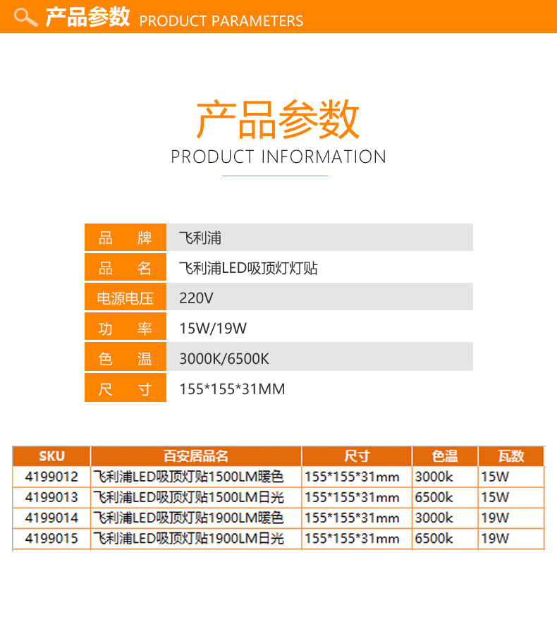 飞利浦LED吸顶灯贴1500LM暖色
