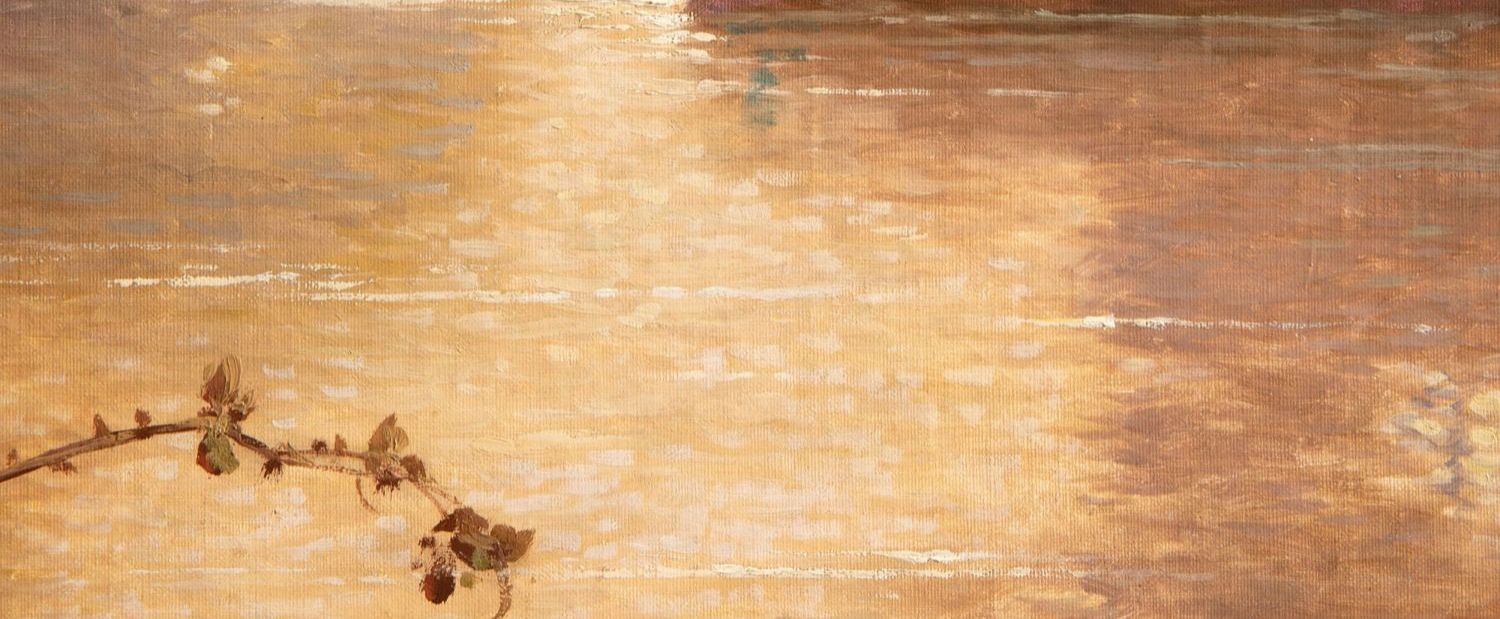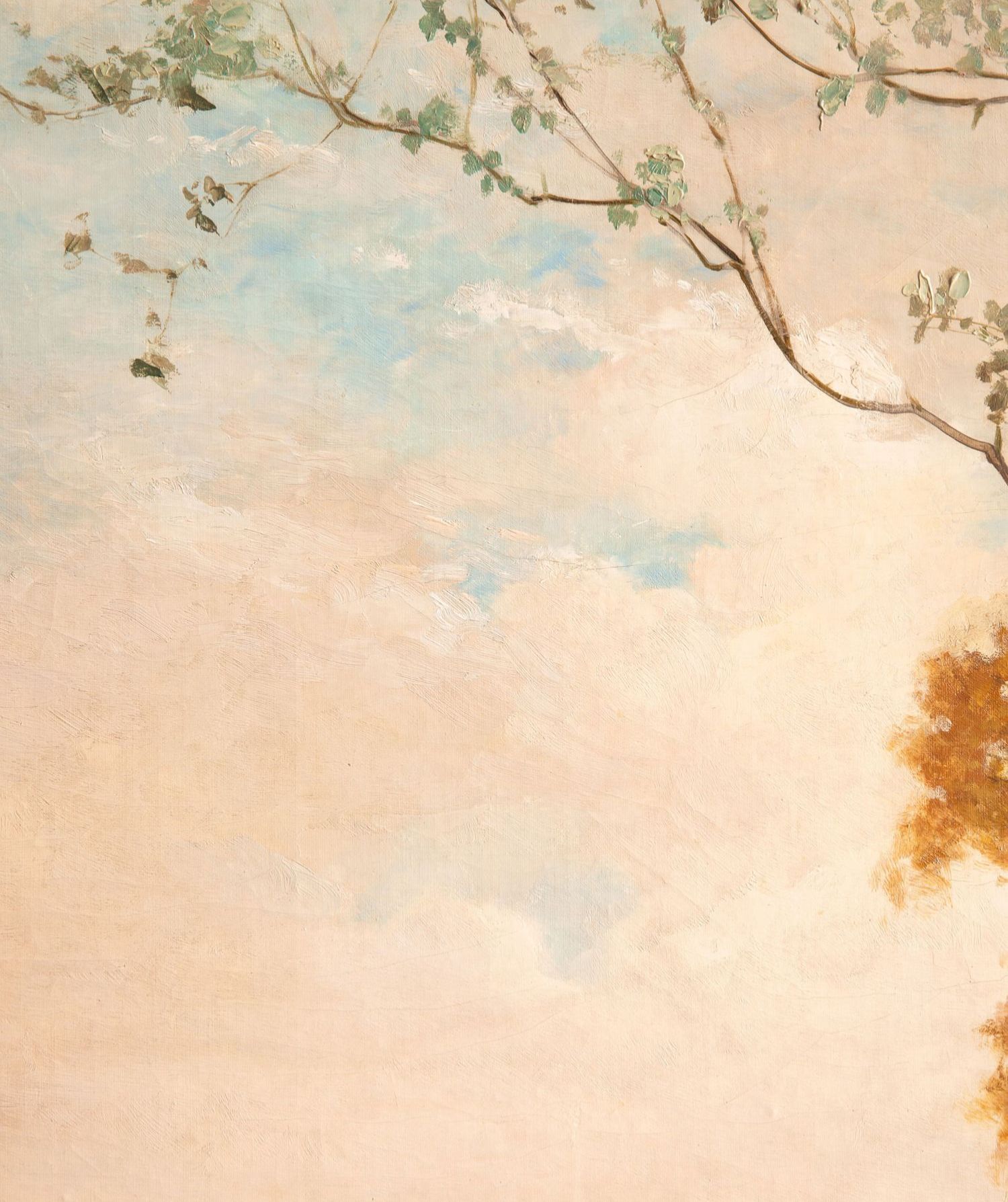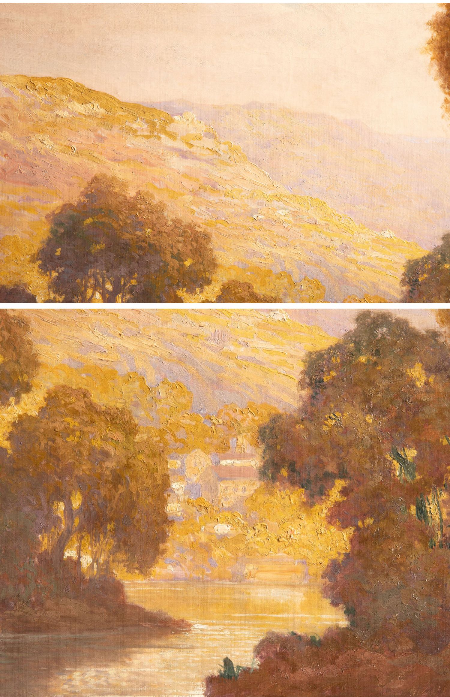 独角鹿西洋古董法国画家J. Georges风景布面油画金林秋波独钓人