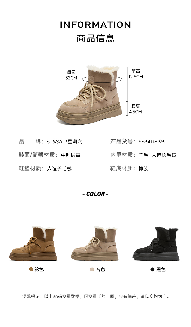 星期六厚底加绒保暖加厚防寒舒适棉鞋雪地靴SS34118I93