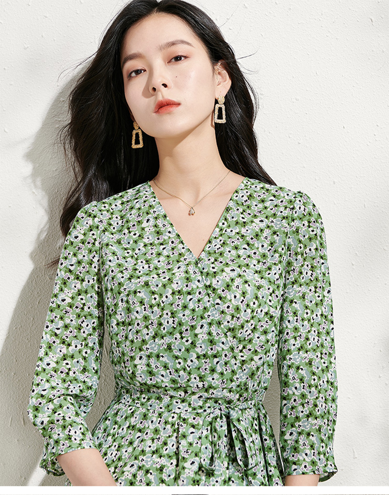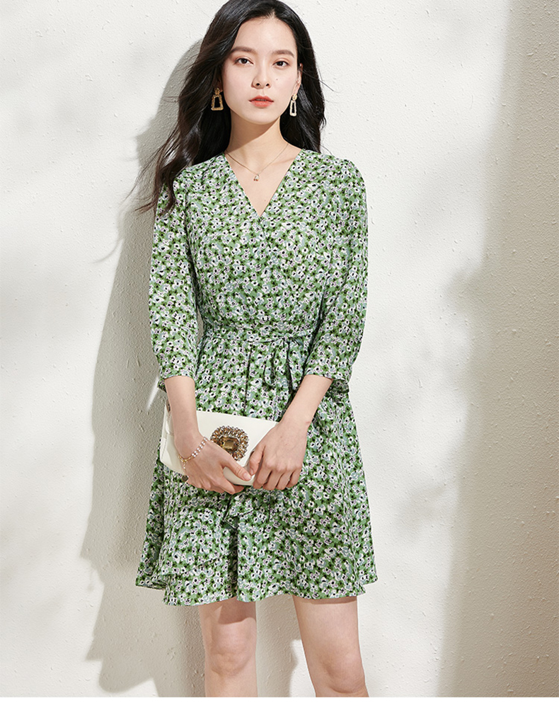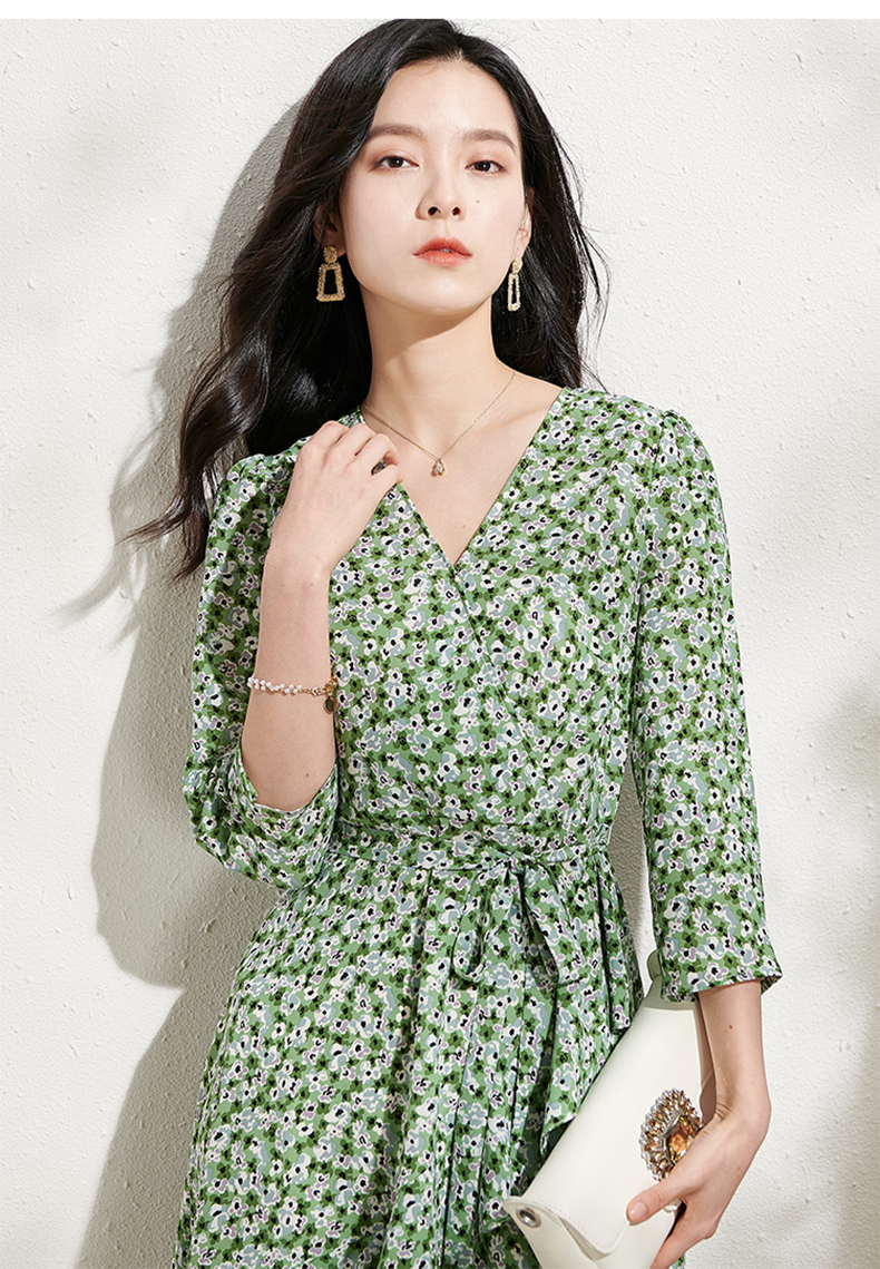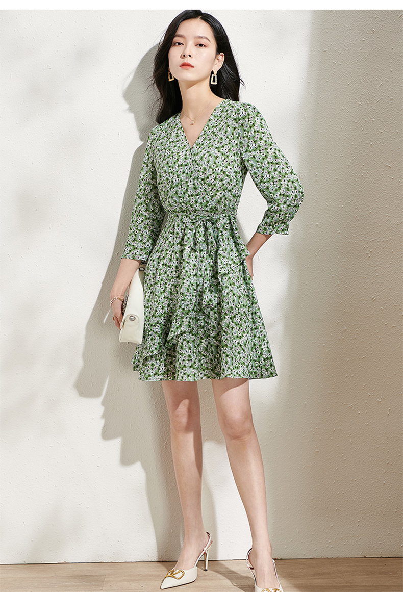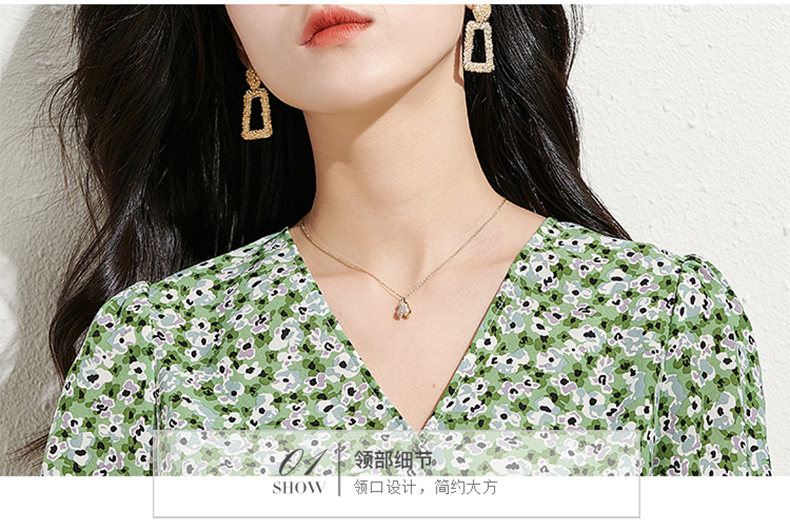 剩S/M/L/XL 芳外新款法式收腰小个子雪纺碎花连衣裙女8T22AL0240
