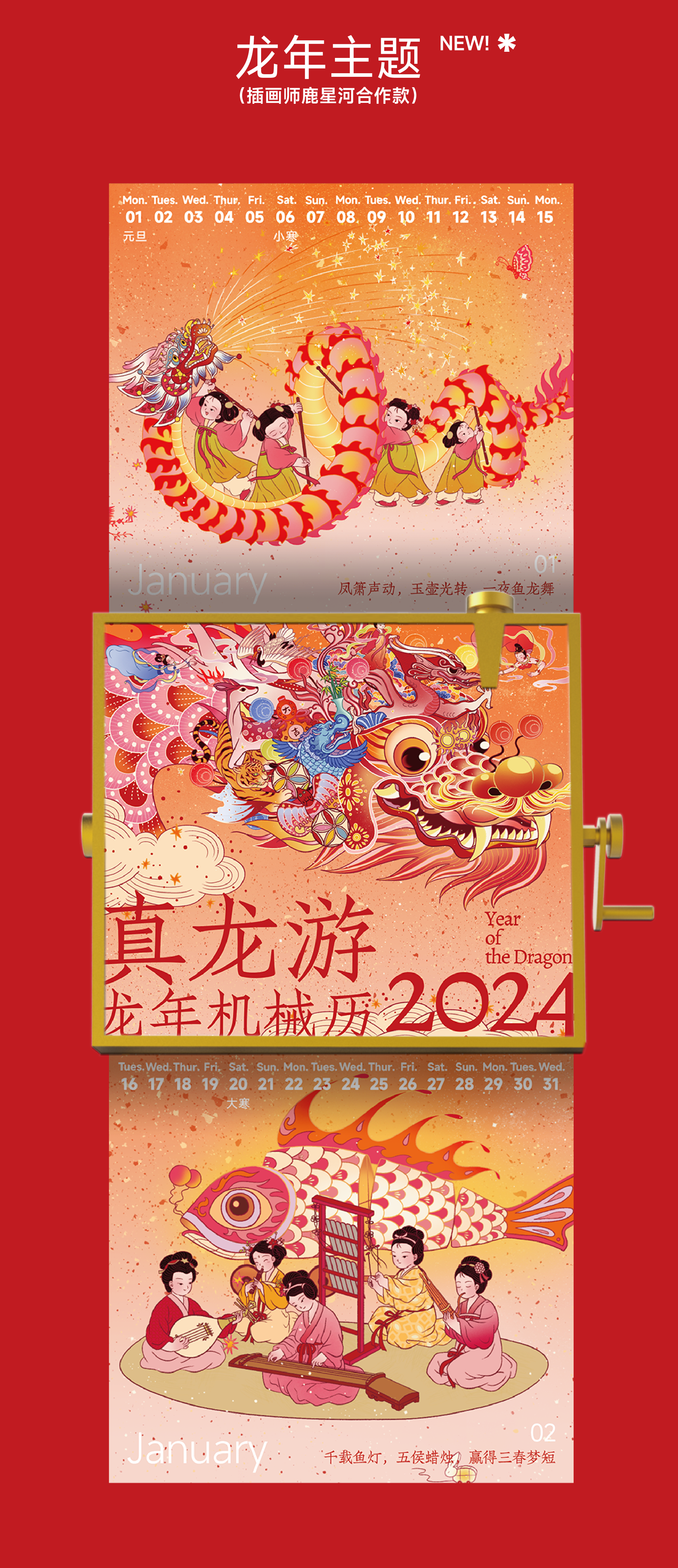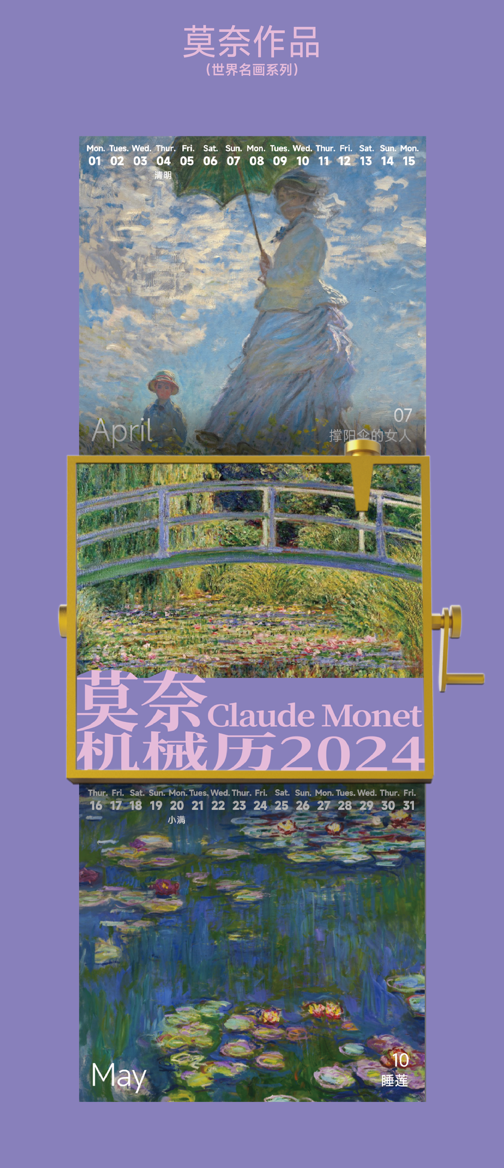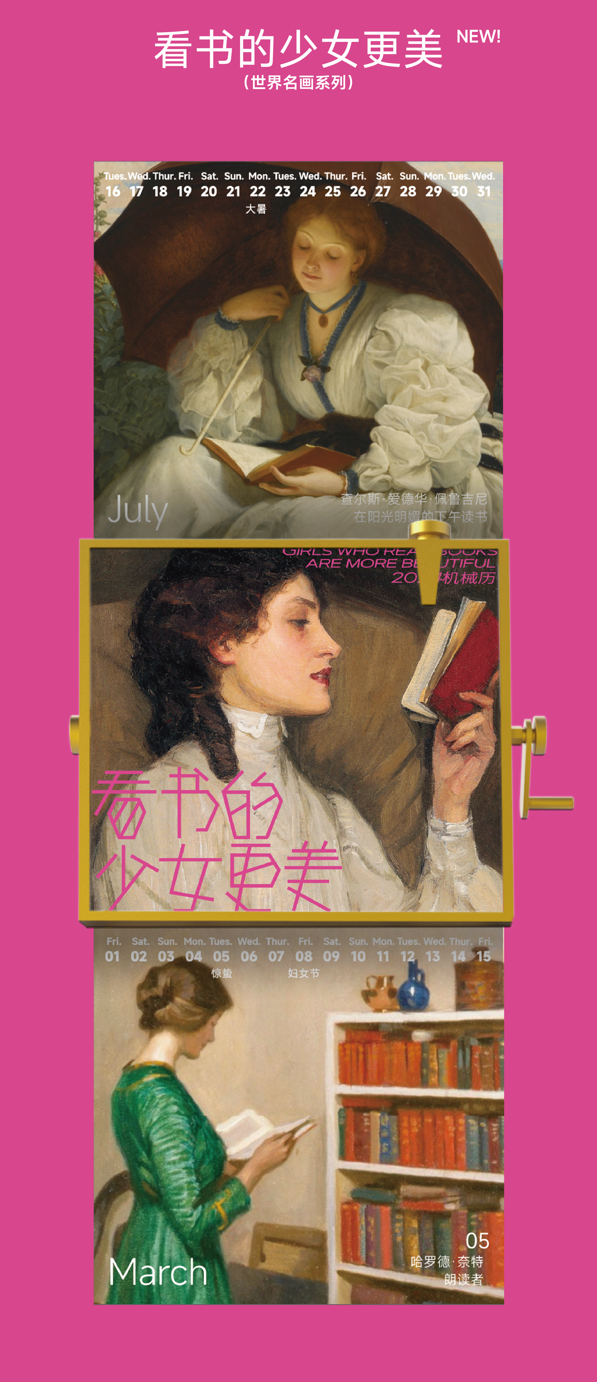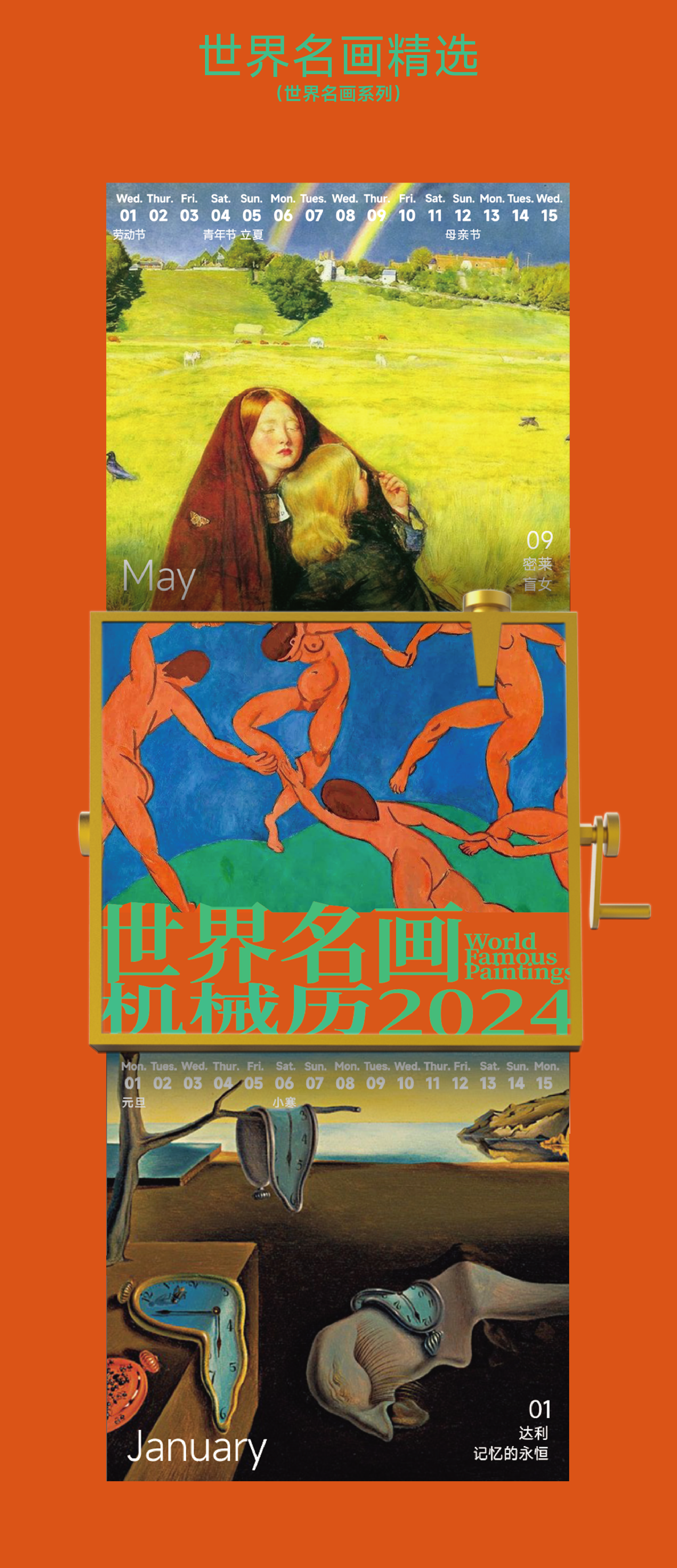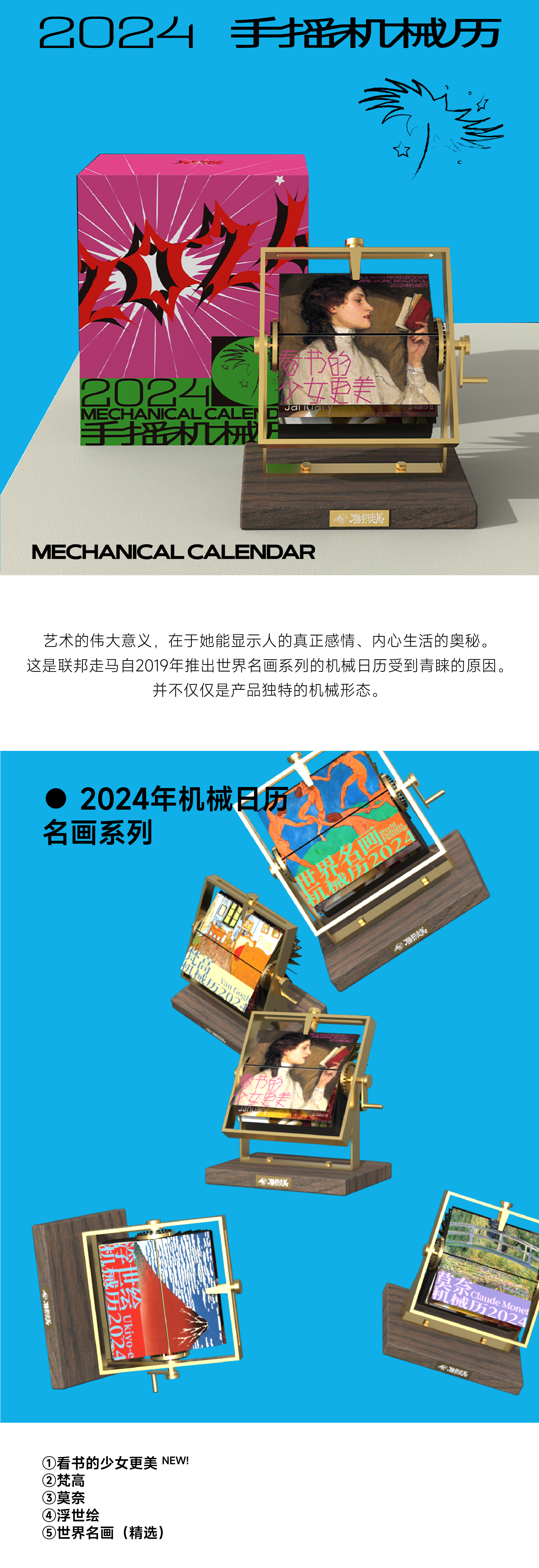 联邦走马2024年日历机械手摇半月历 世界名画/读书少女 复古治愈