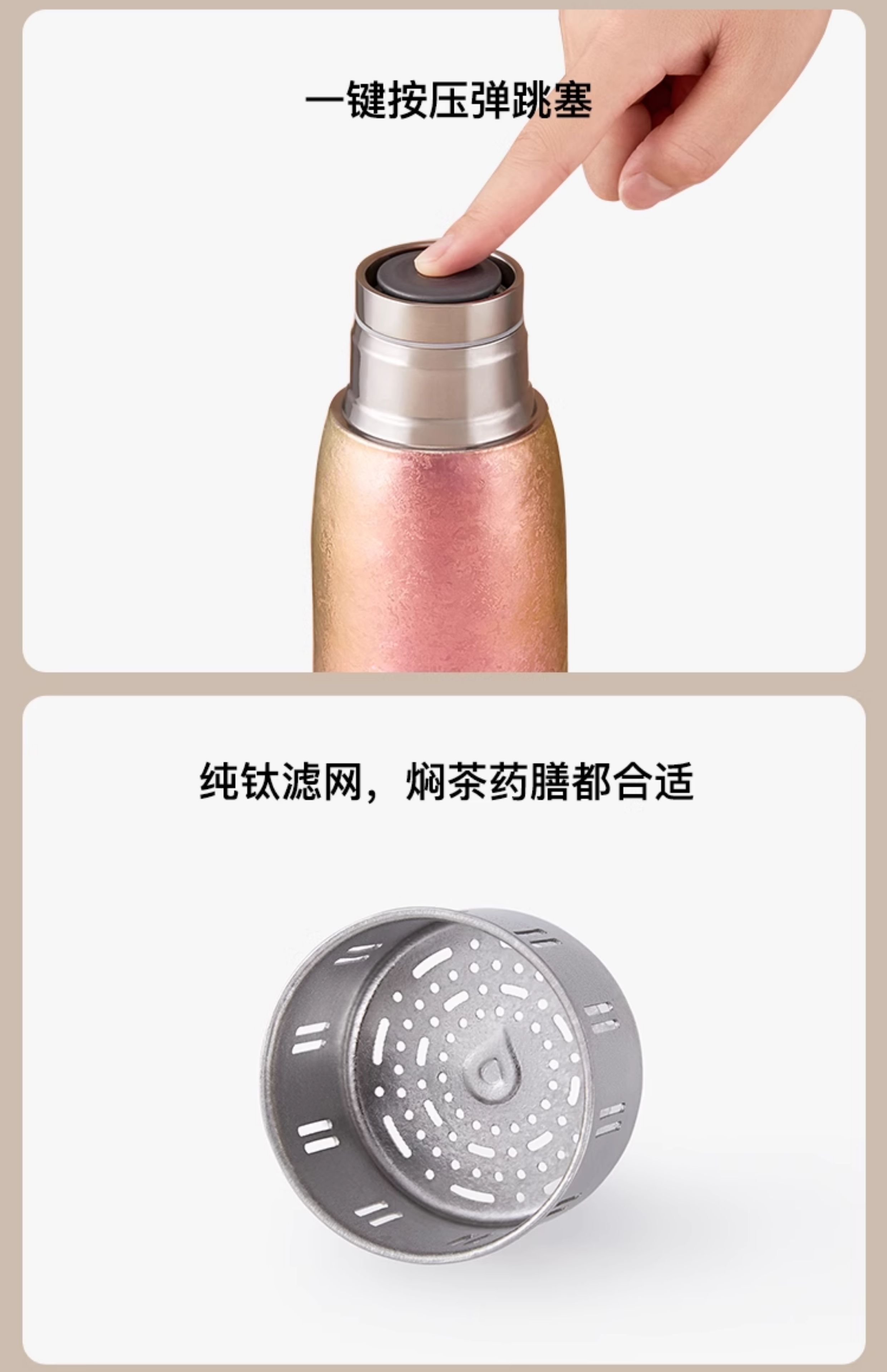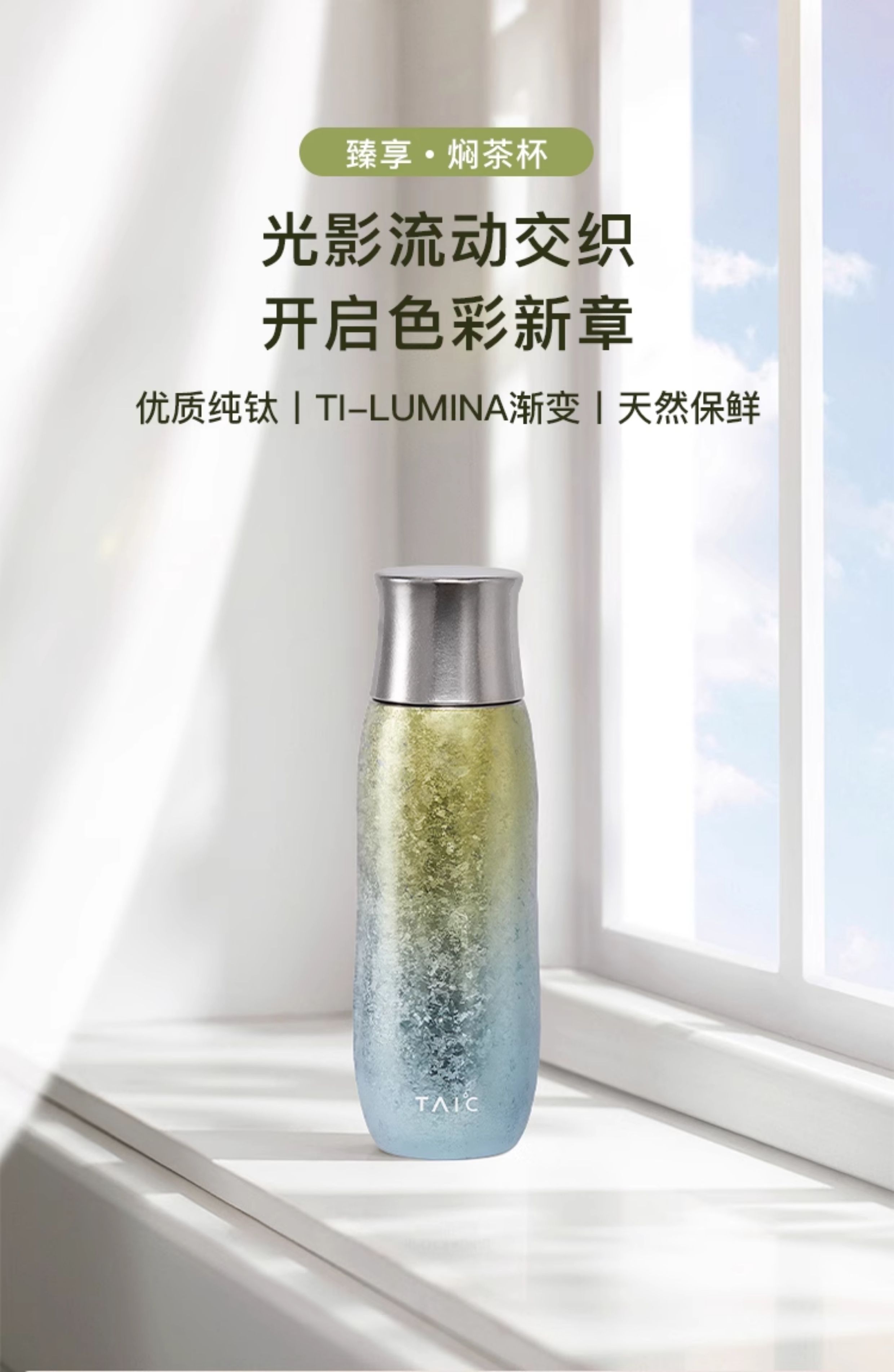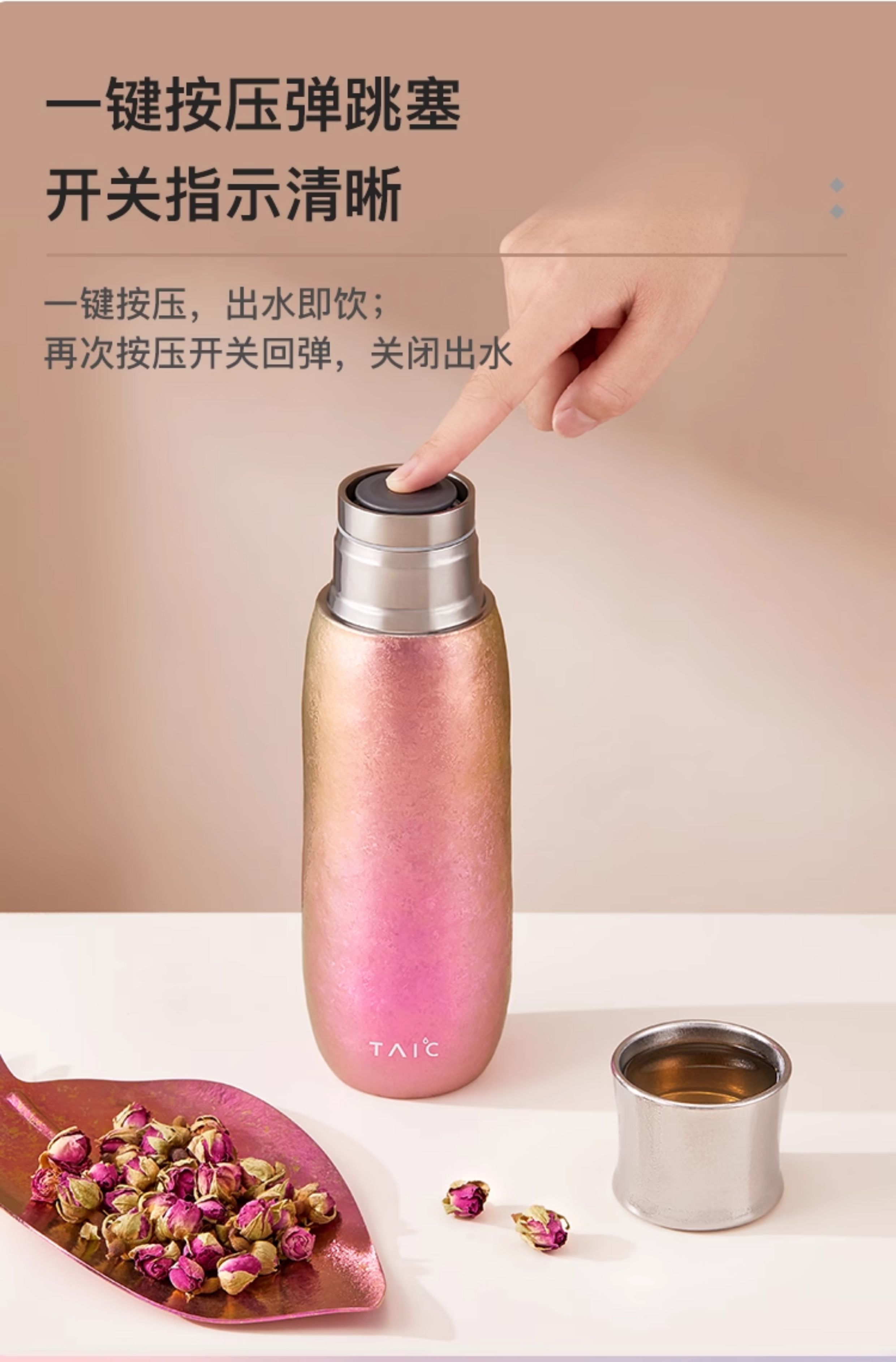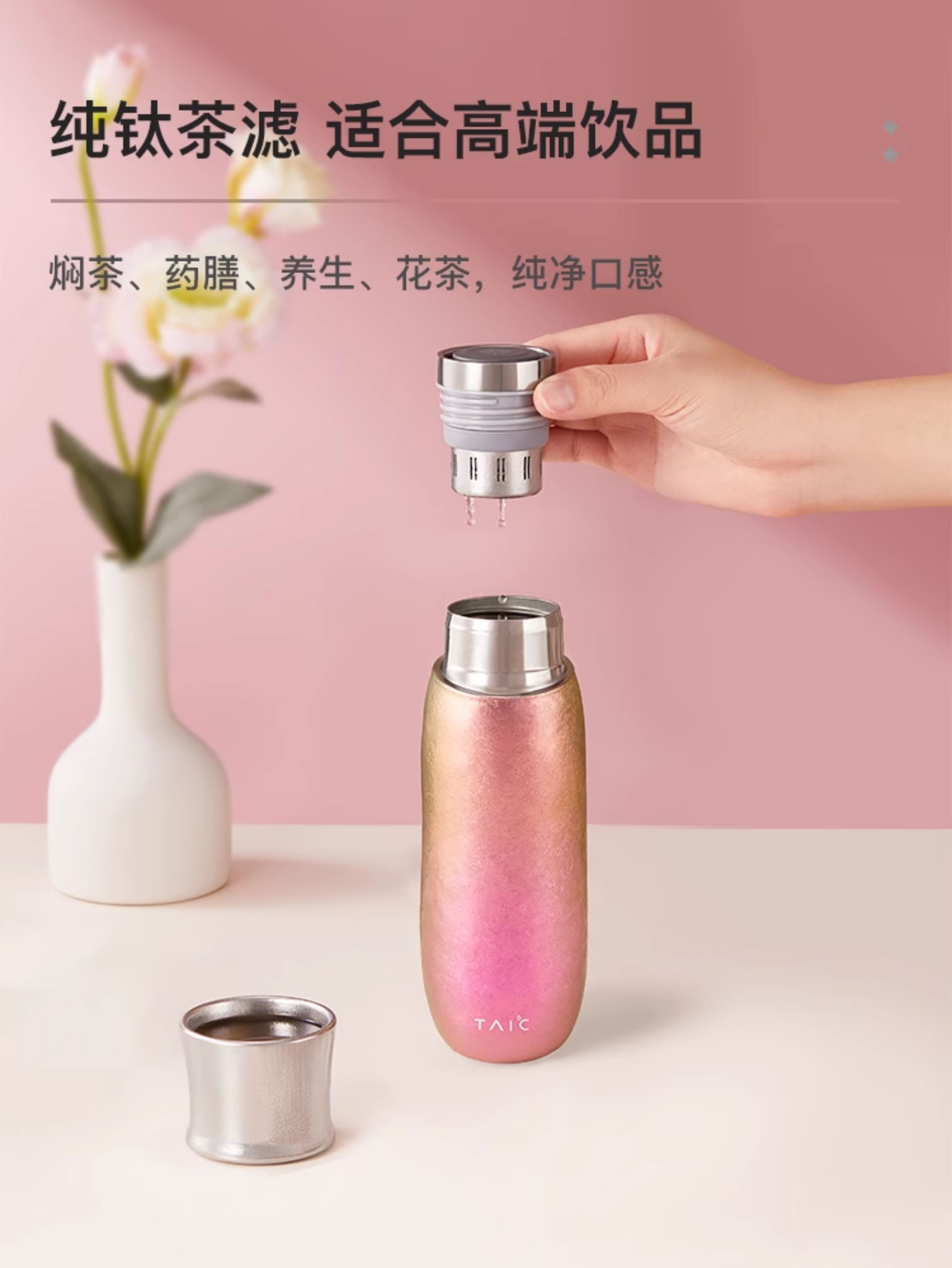 TAIC太可纯钛保温杯彩韵系列双层焖茶杯女士轻奢按压出水花茶中药泡茶杯子