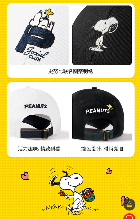 佐丹奴男女同款【史努比联名款】刺绣鸭舌帽01205801