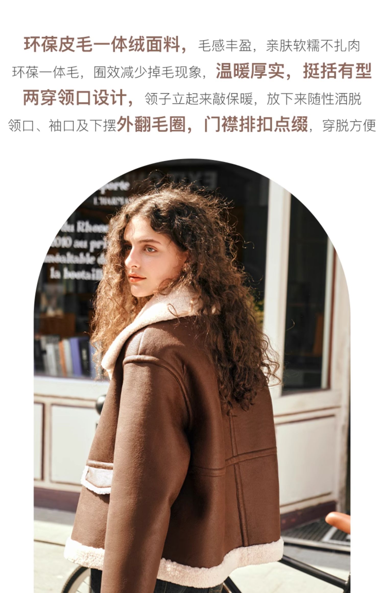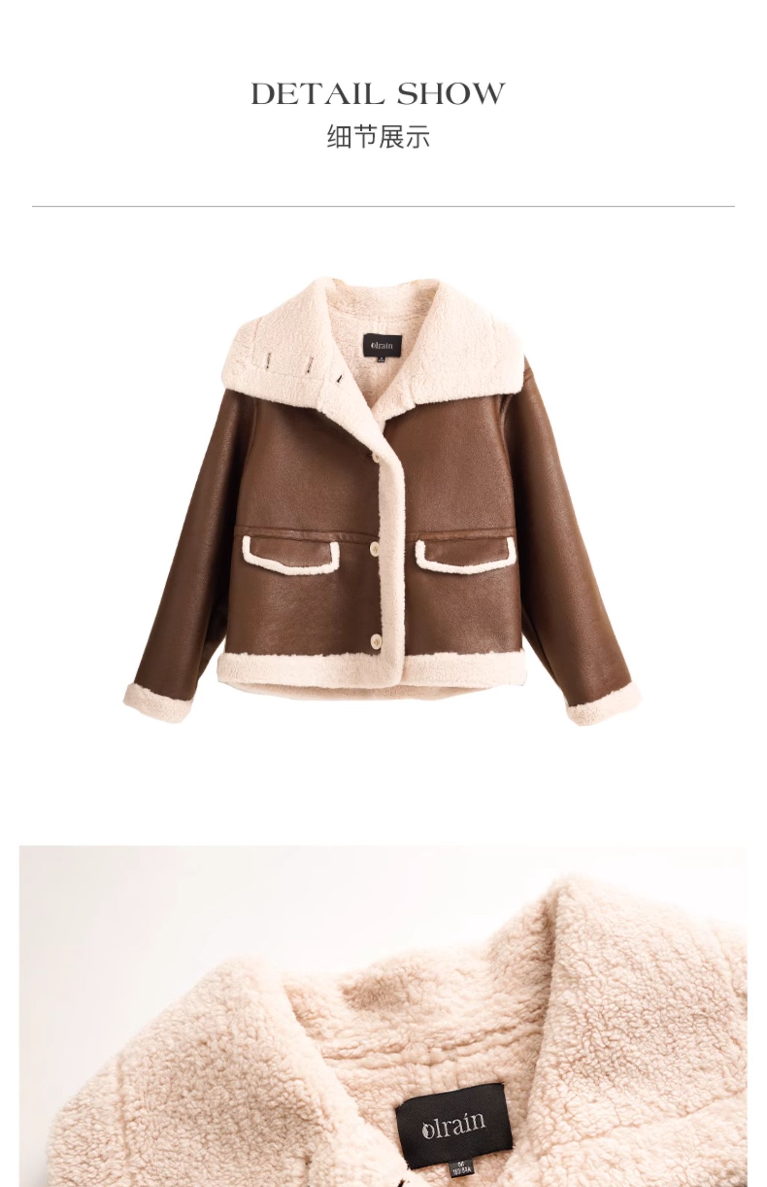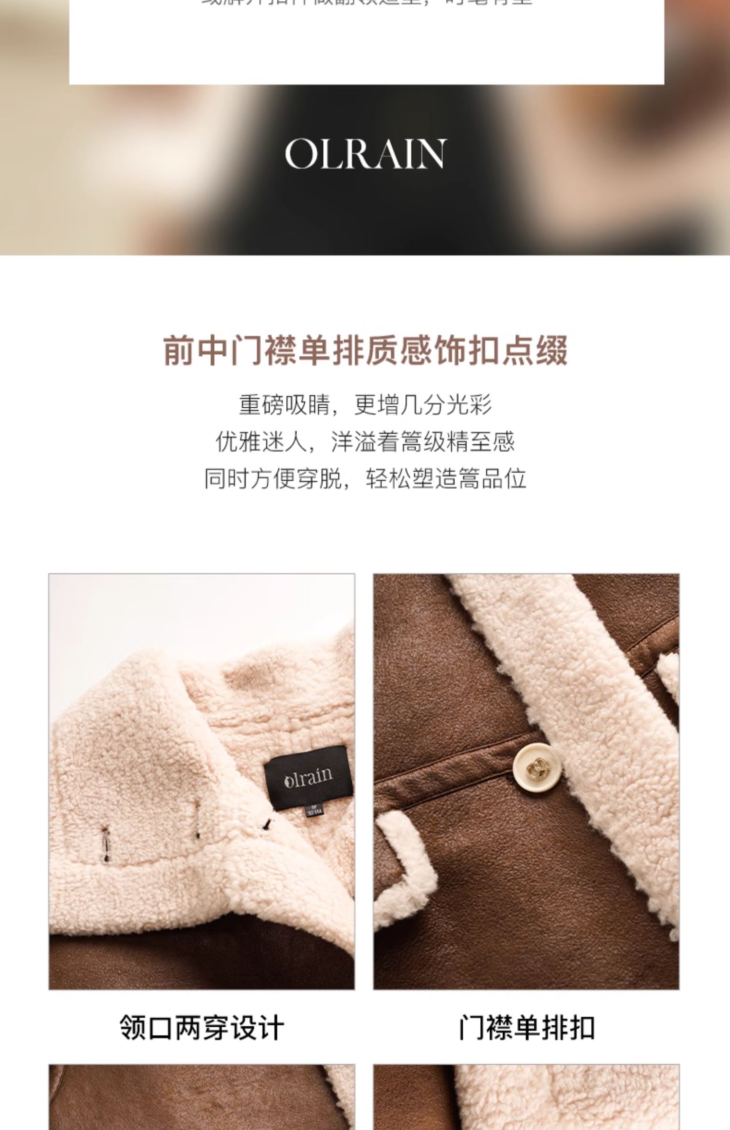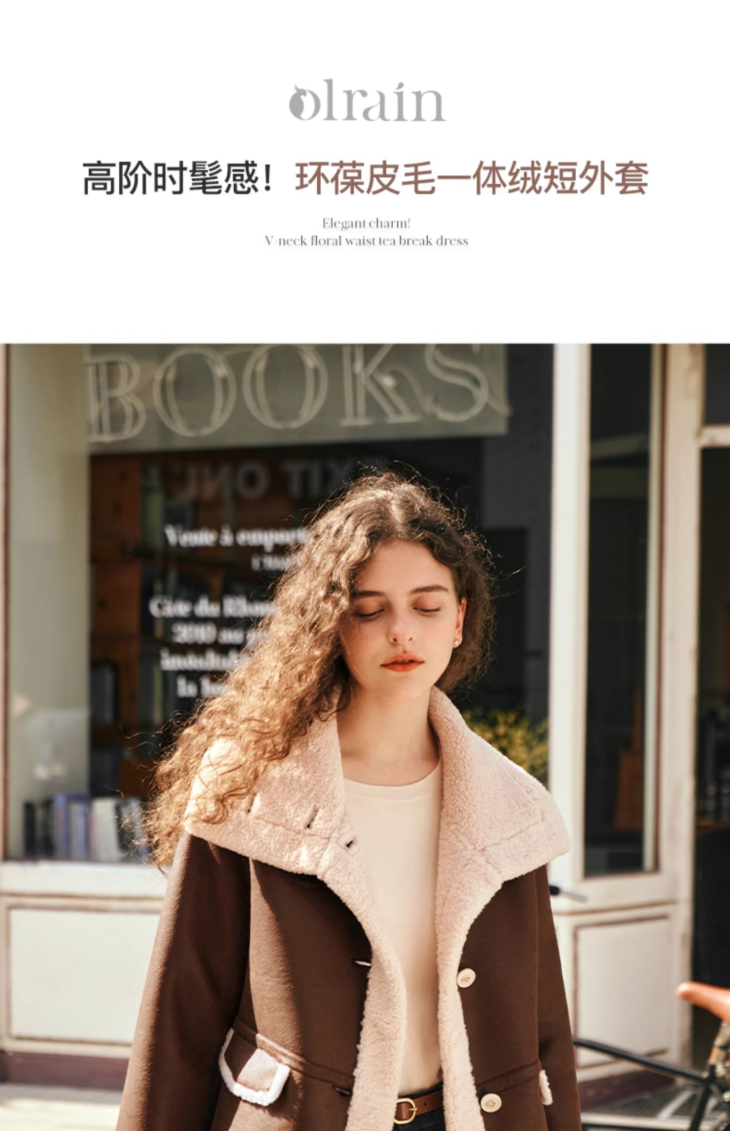 OLrain欧芮儿摩卡棕皮草外套女秋冬2023年新款羊羔绒皮毛一体上衣