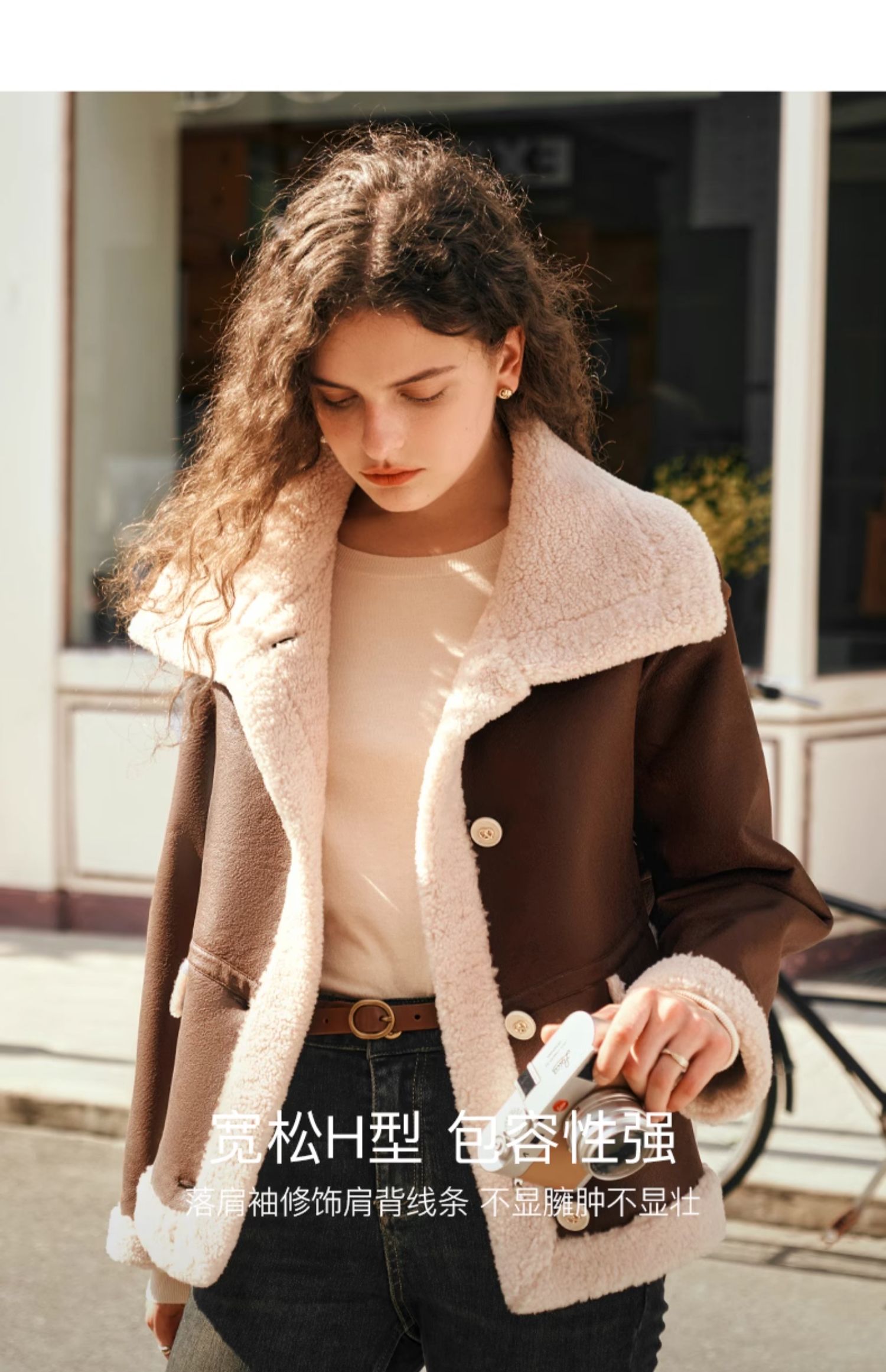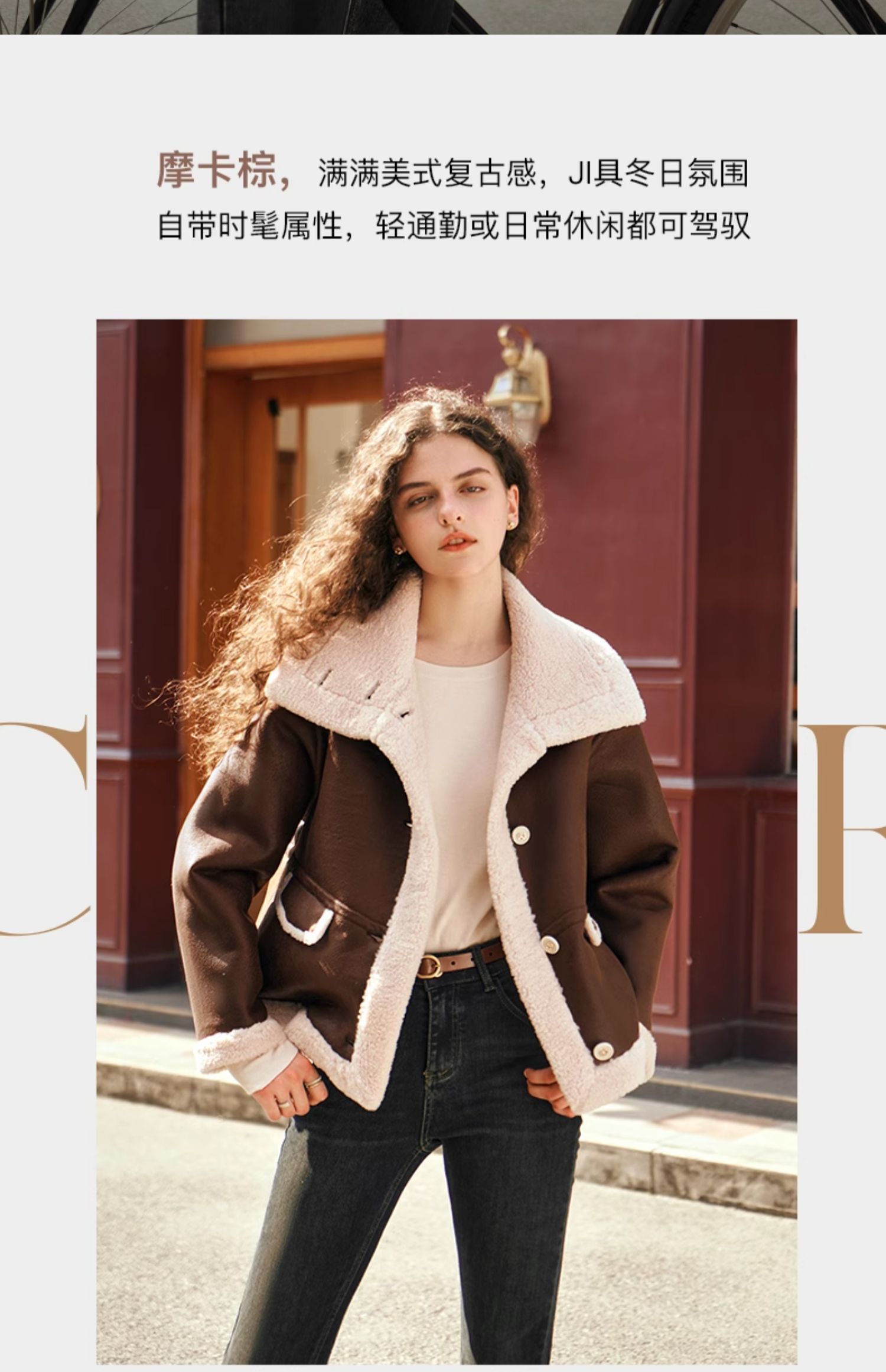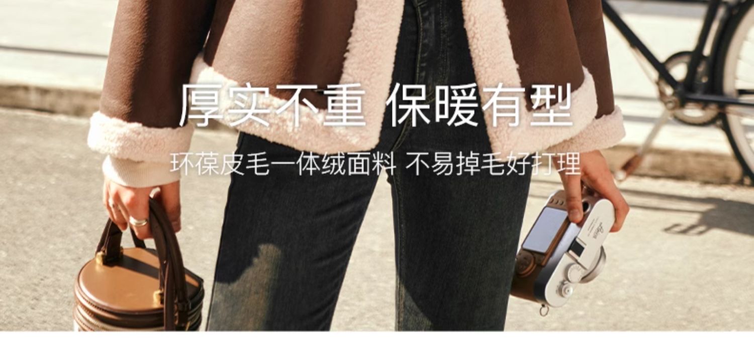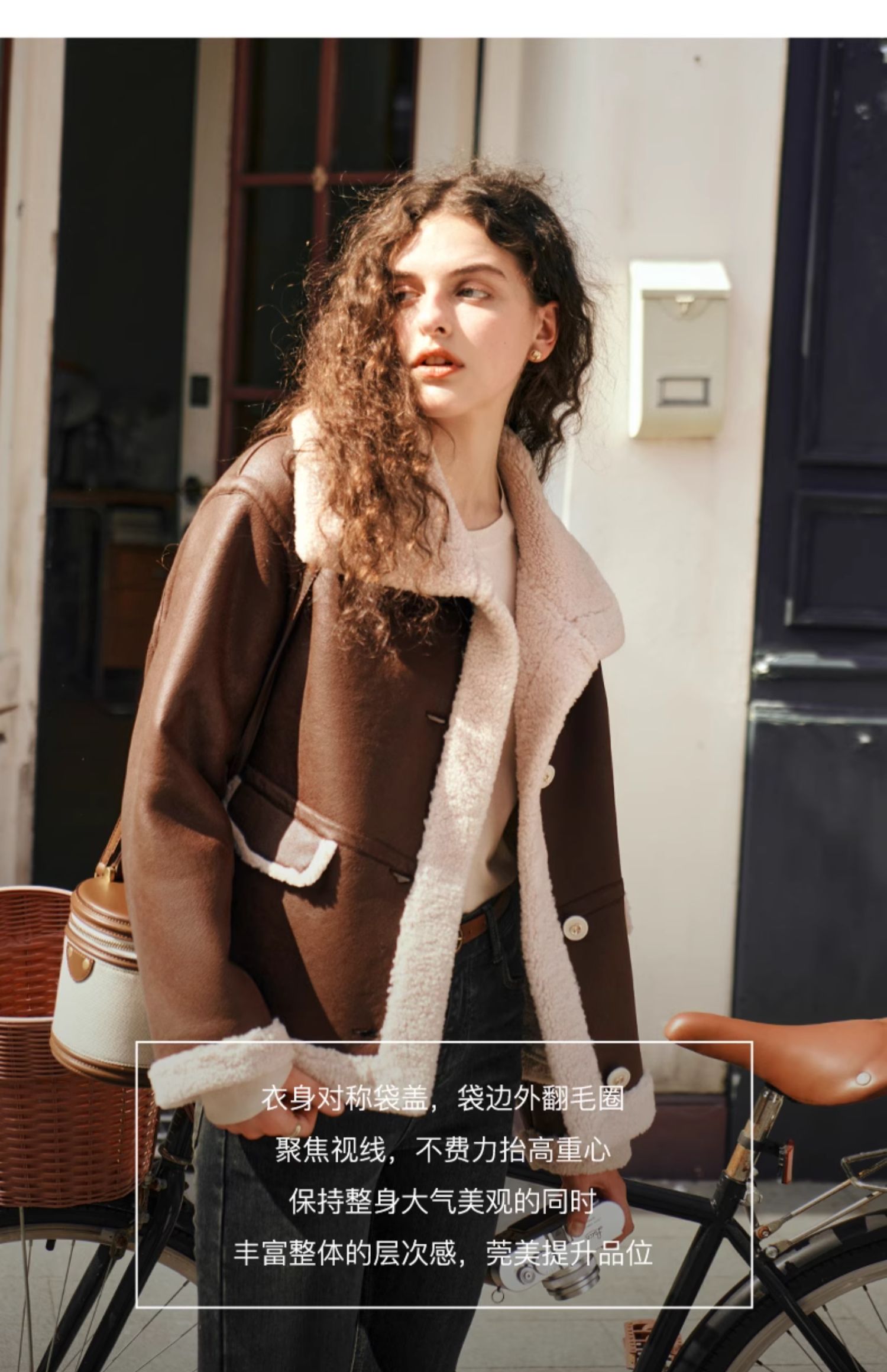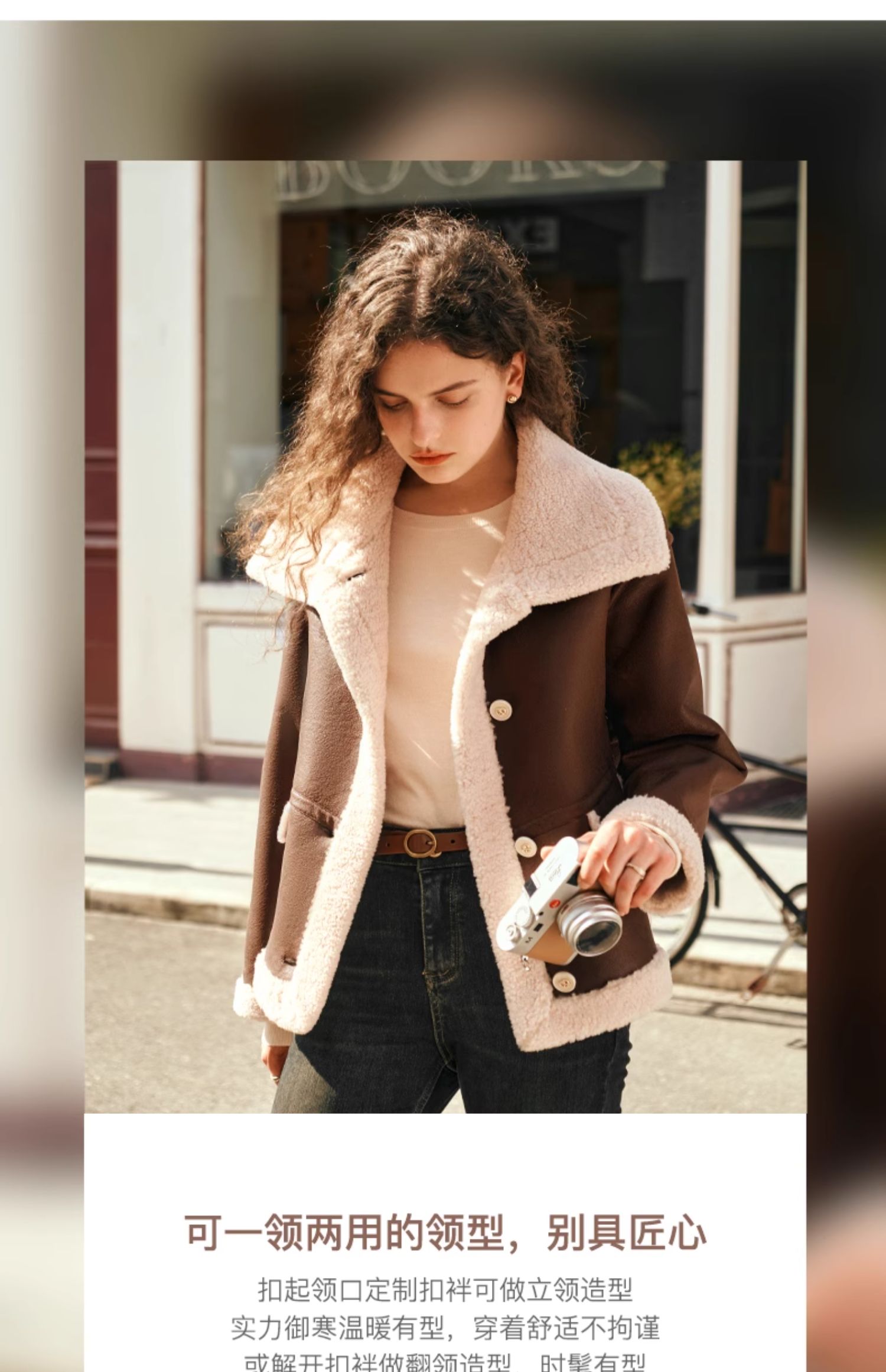 OLrain欧芮儿摩卡棕皮草外套女秋冬2023年新款羊羔绒皮毛一体上衣