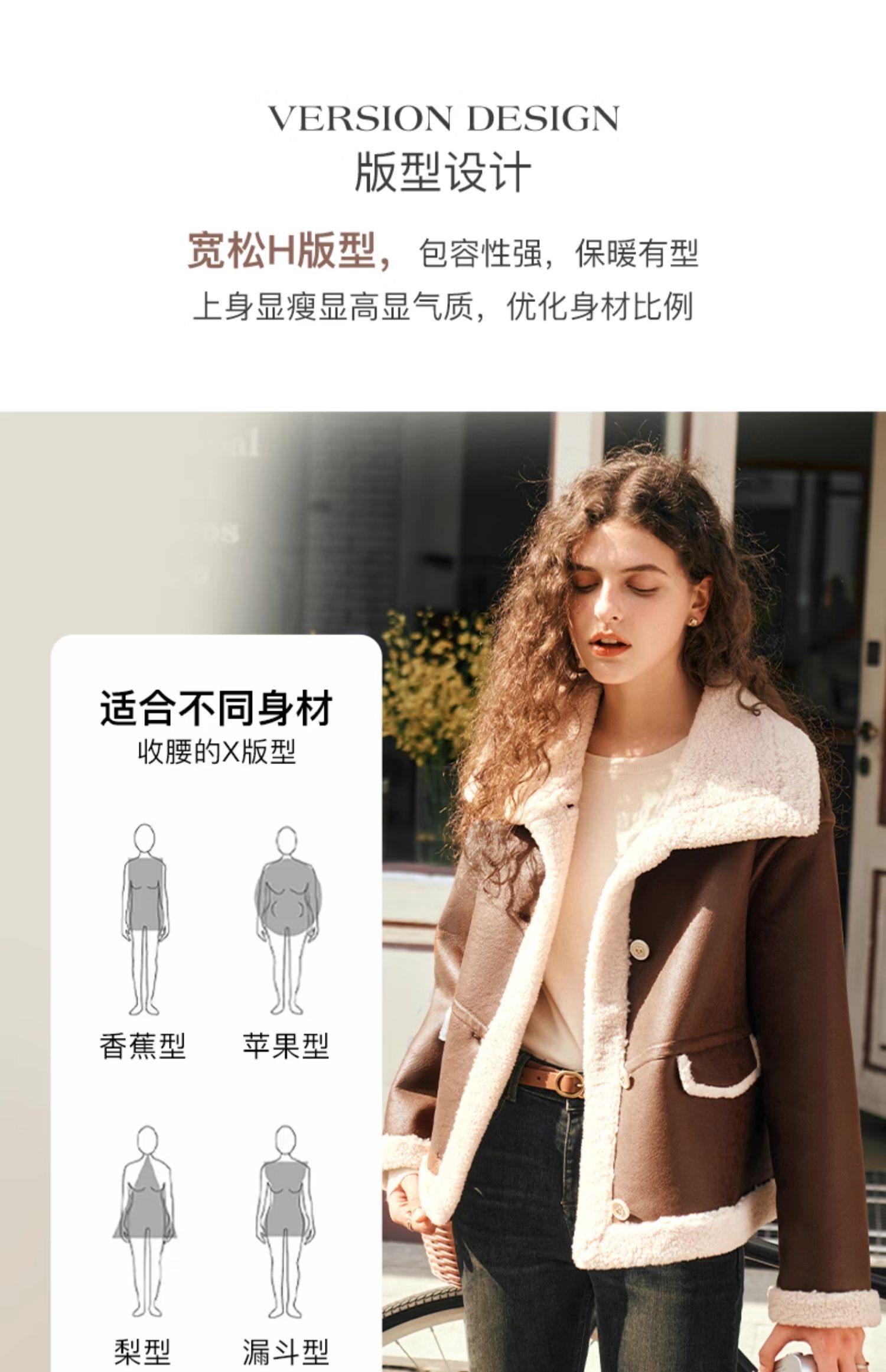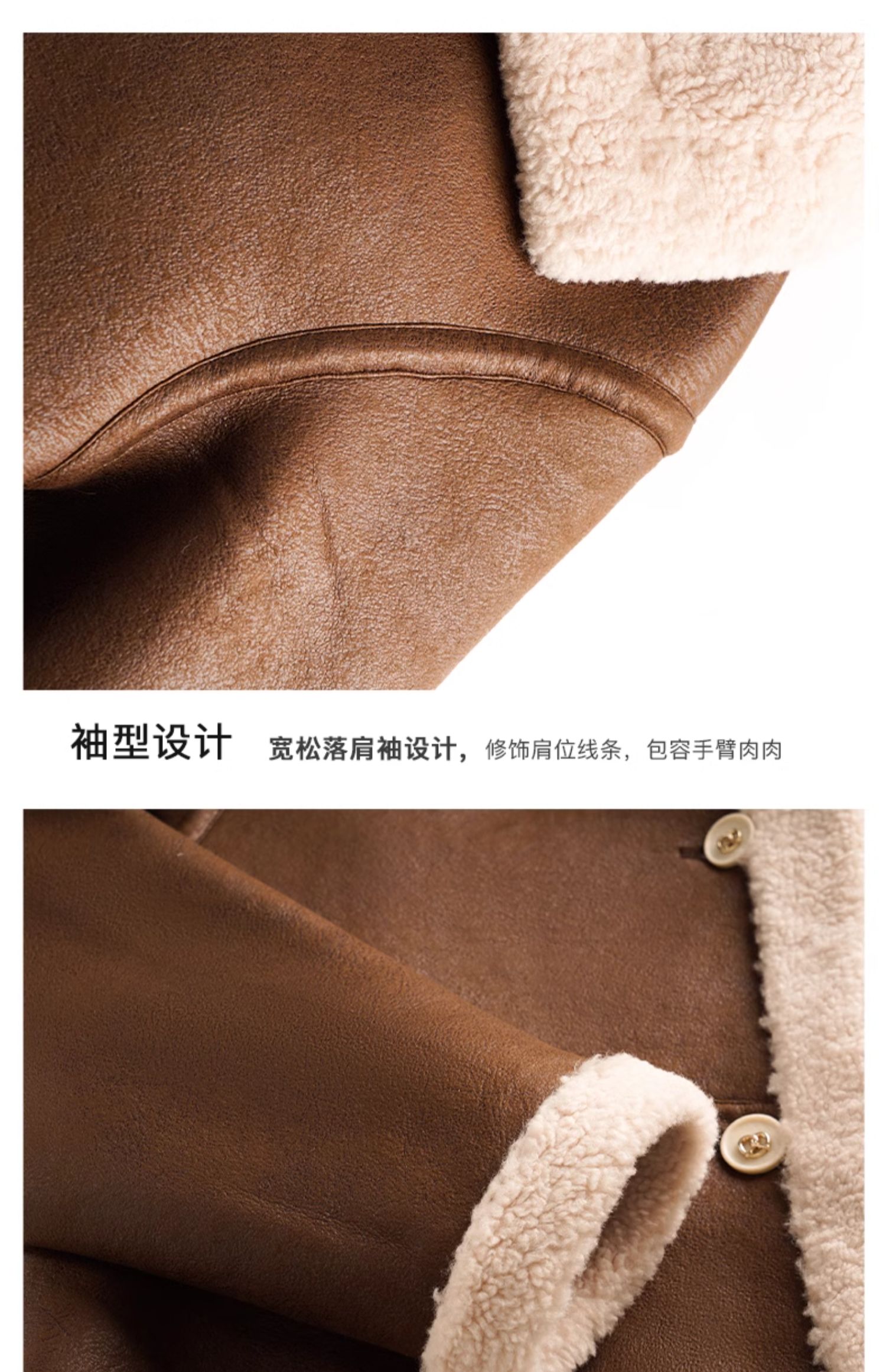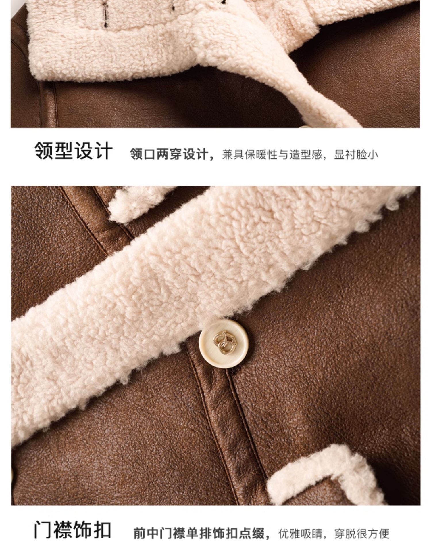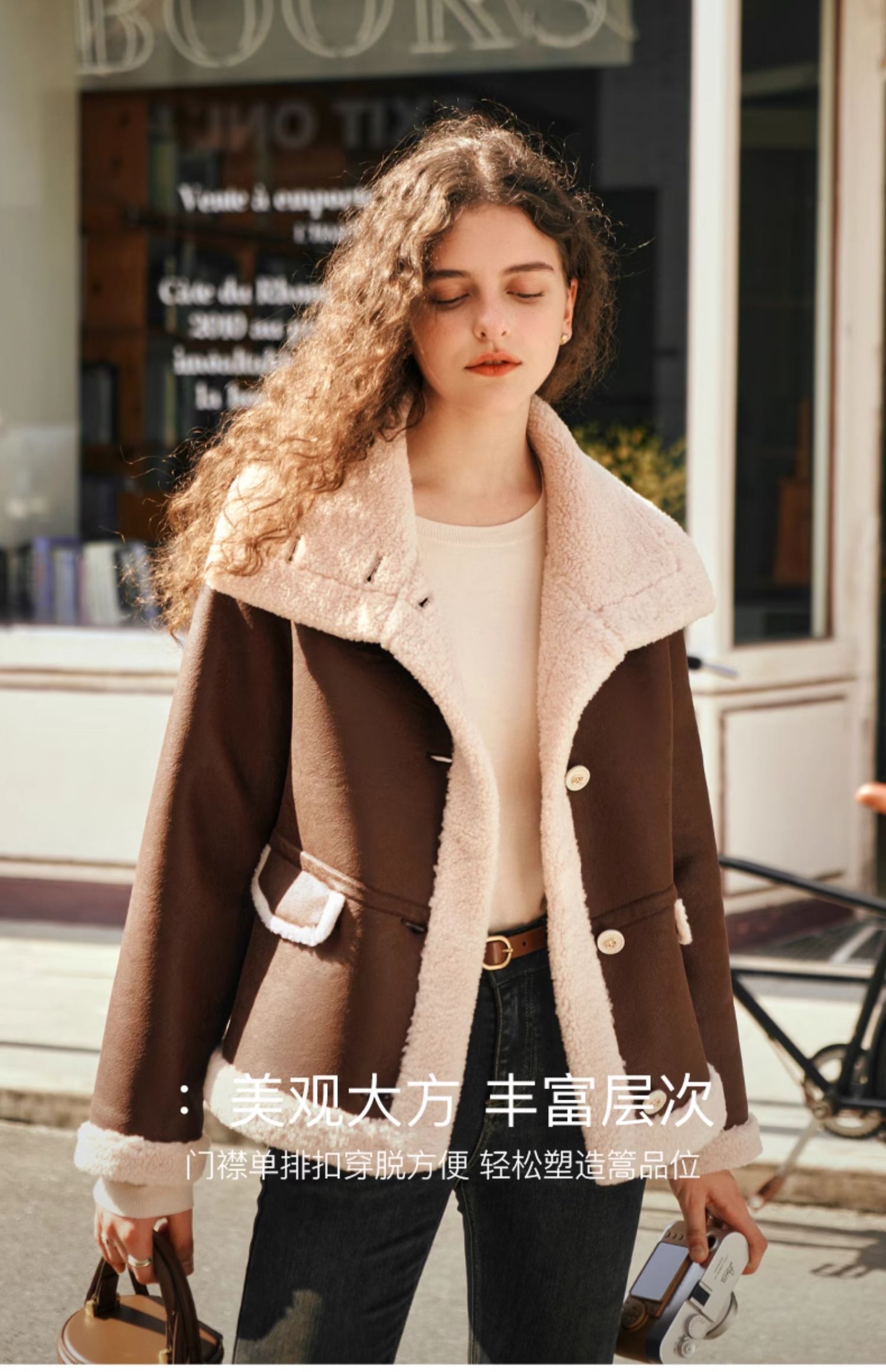 OLrain欧芮儿摩卡棕皮草外套女秋冬2023年新款羊羔绒皮毛一体上衣