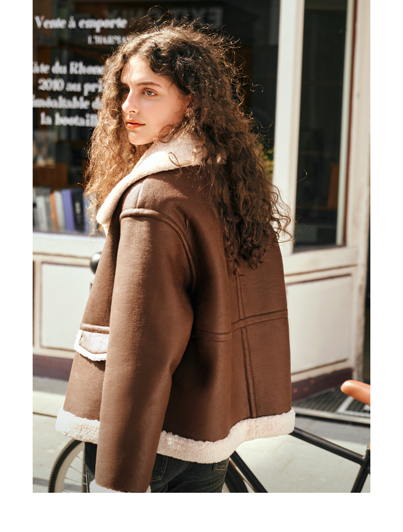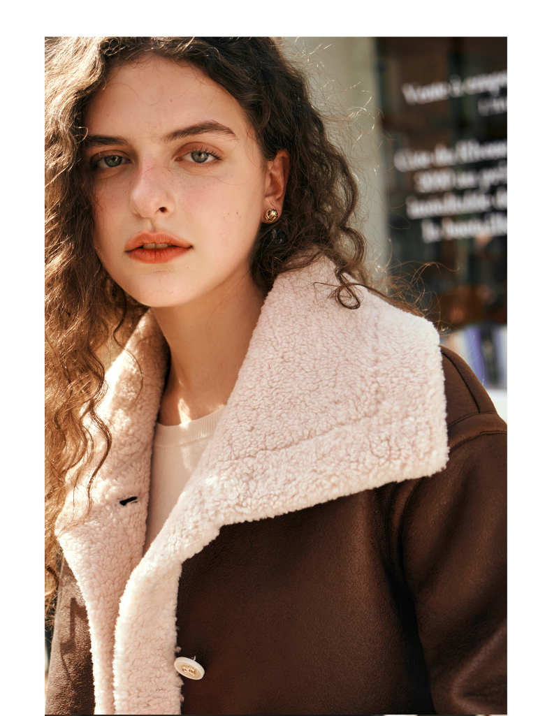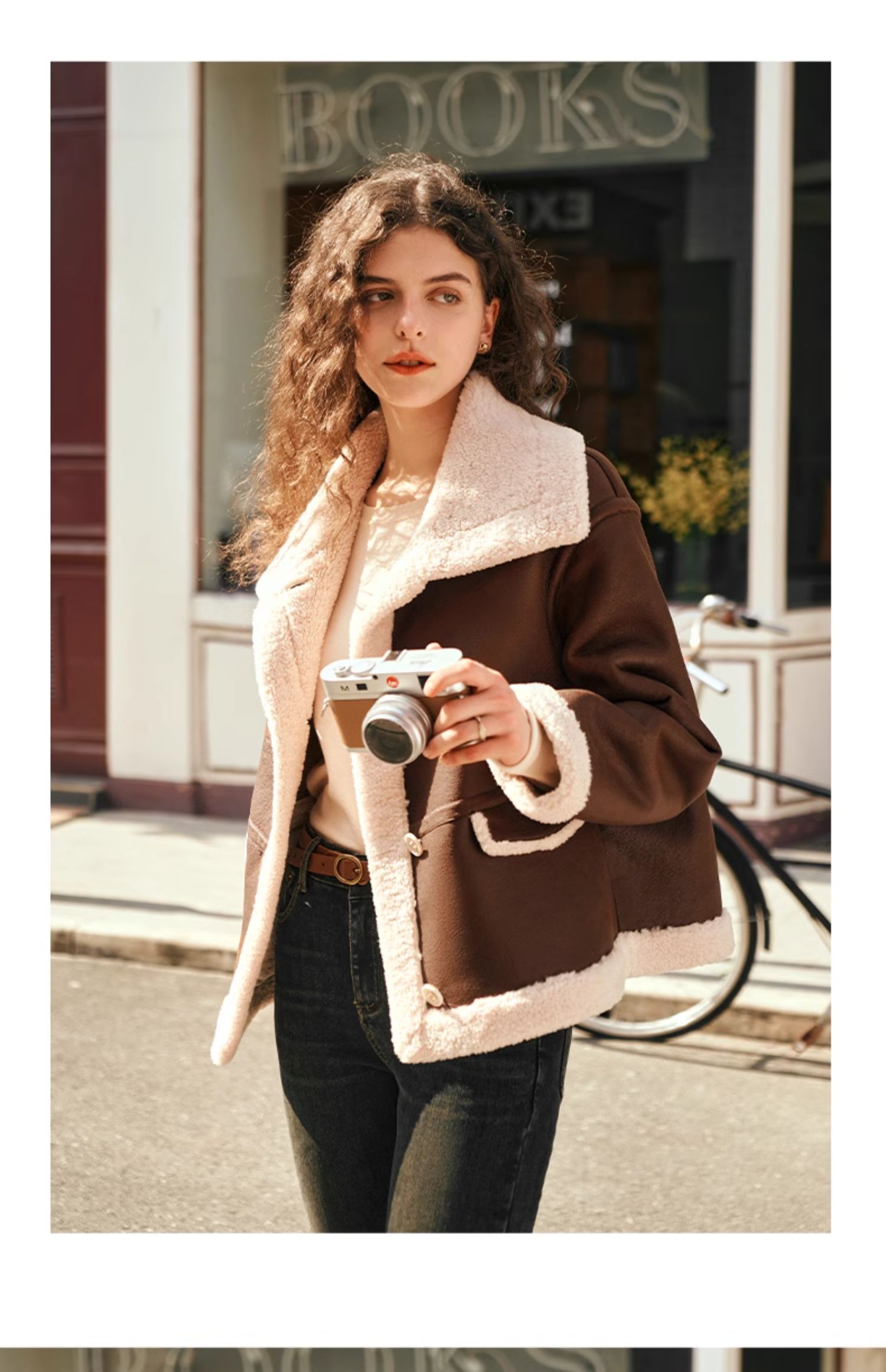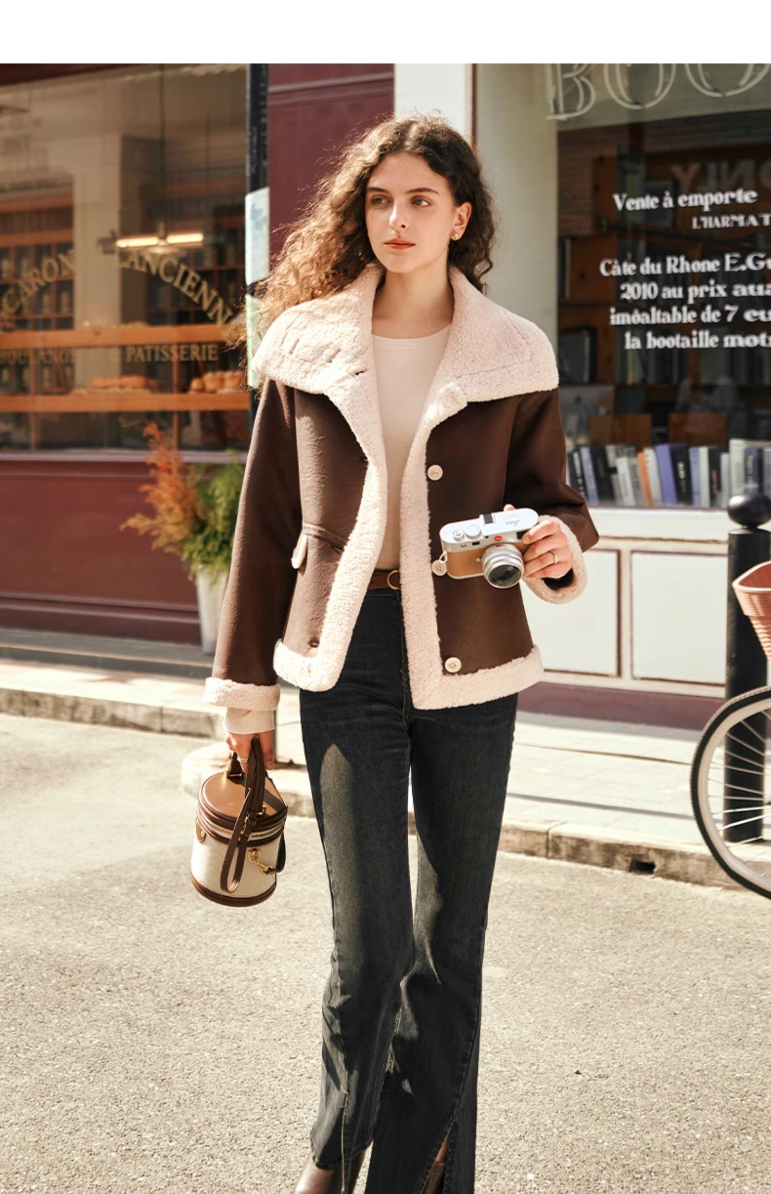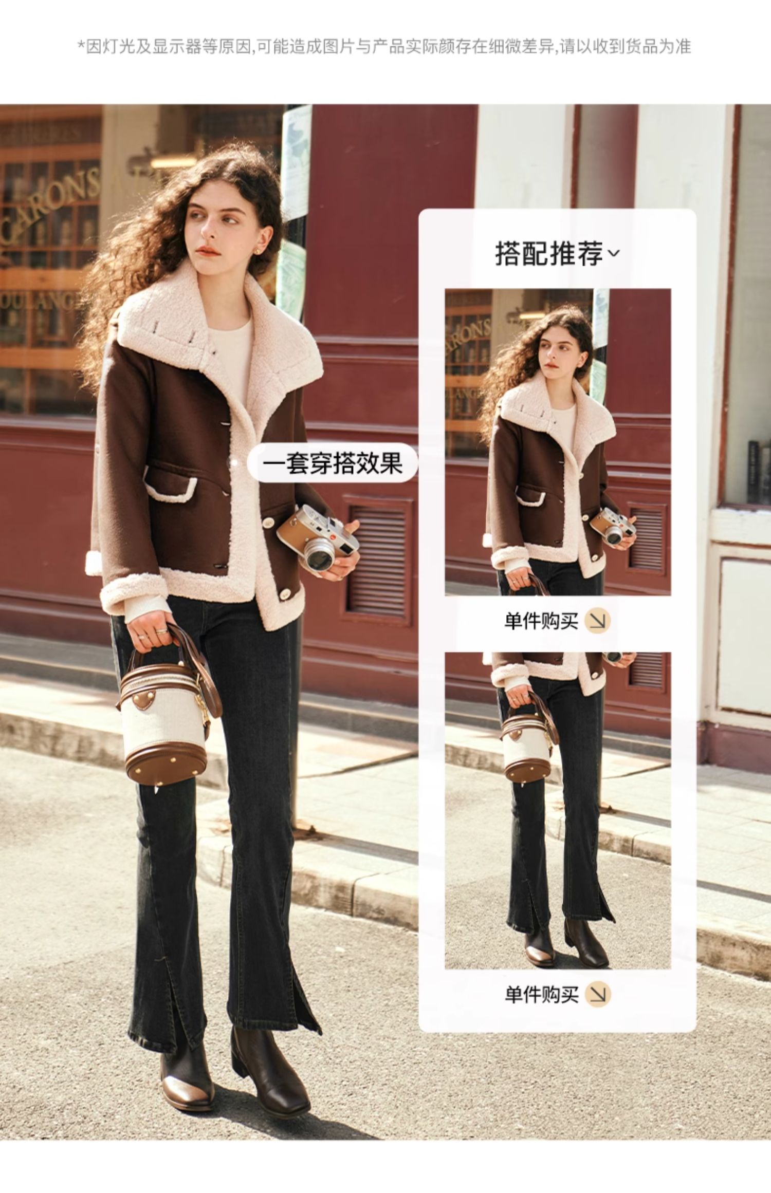OLrain欧芮儿摩卡棕皮草外套女秋冬2023年新款羊羔绒皮毛一体上衣