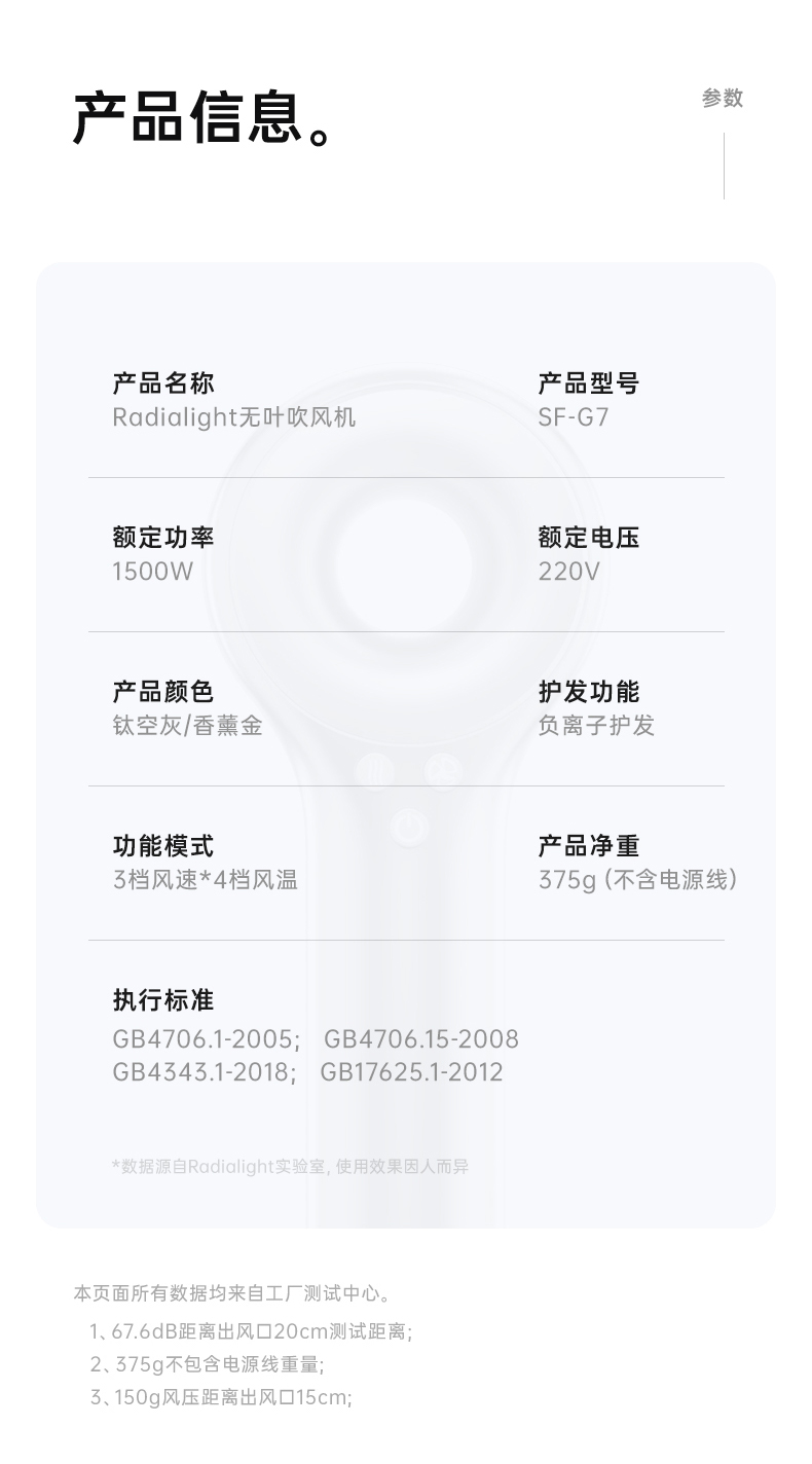 Radialight吹风机!干发超快!智能温控,柔和不伤手,抚平毛躁、沙发、烫染受损发质!G7高速吹风机标配无风嘴版