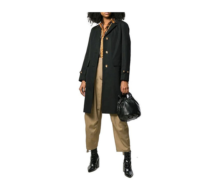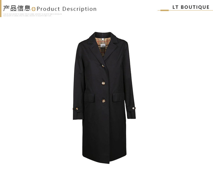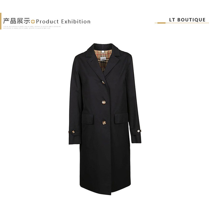 BURBERRY 巴宝莉 女士按扣细节棉质华达呢实验大衣 黑色 8015484 A1189
