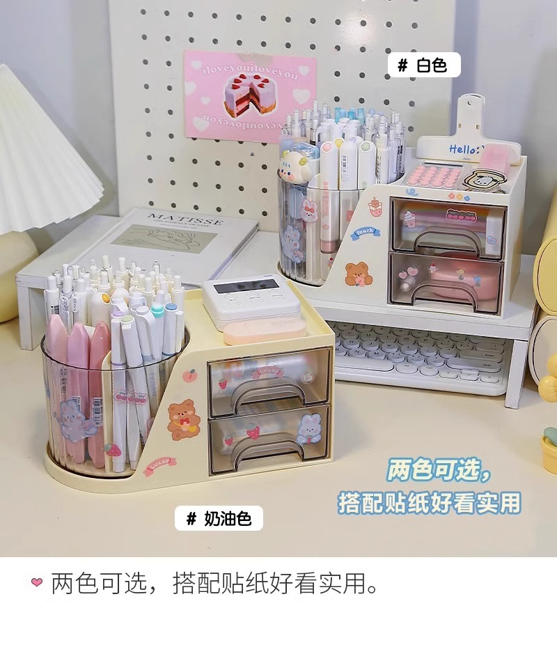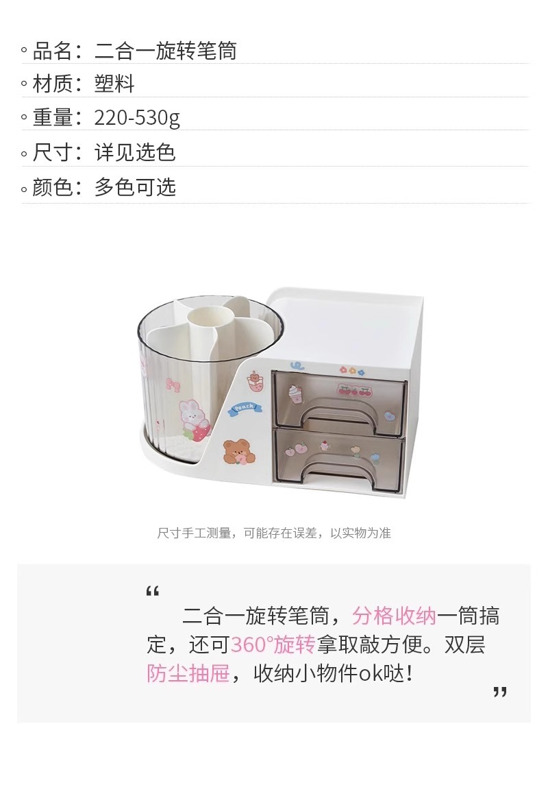 「二合一旋转笔筒」桌面大容量旋转笔筒学生创意书桌学生收纳整理盒办公室高级置物架