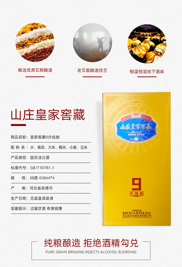 山庄皇家窖藏9 38度浓香型白酒450ml 整箱4瓶装 整箱4瓶装