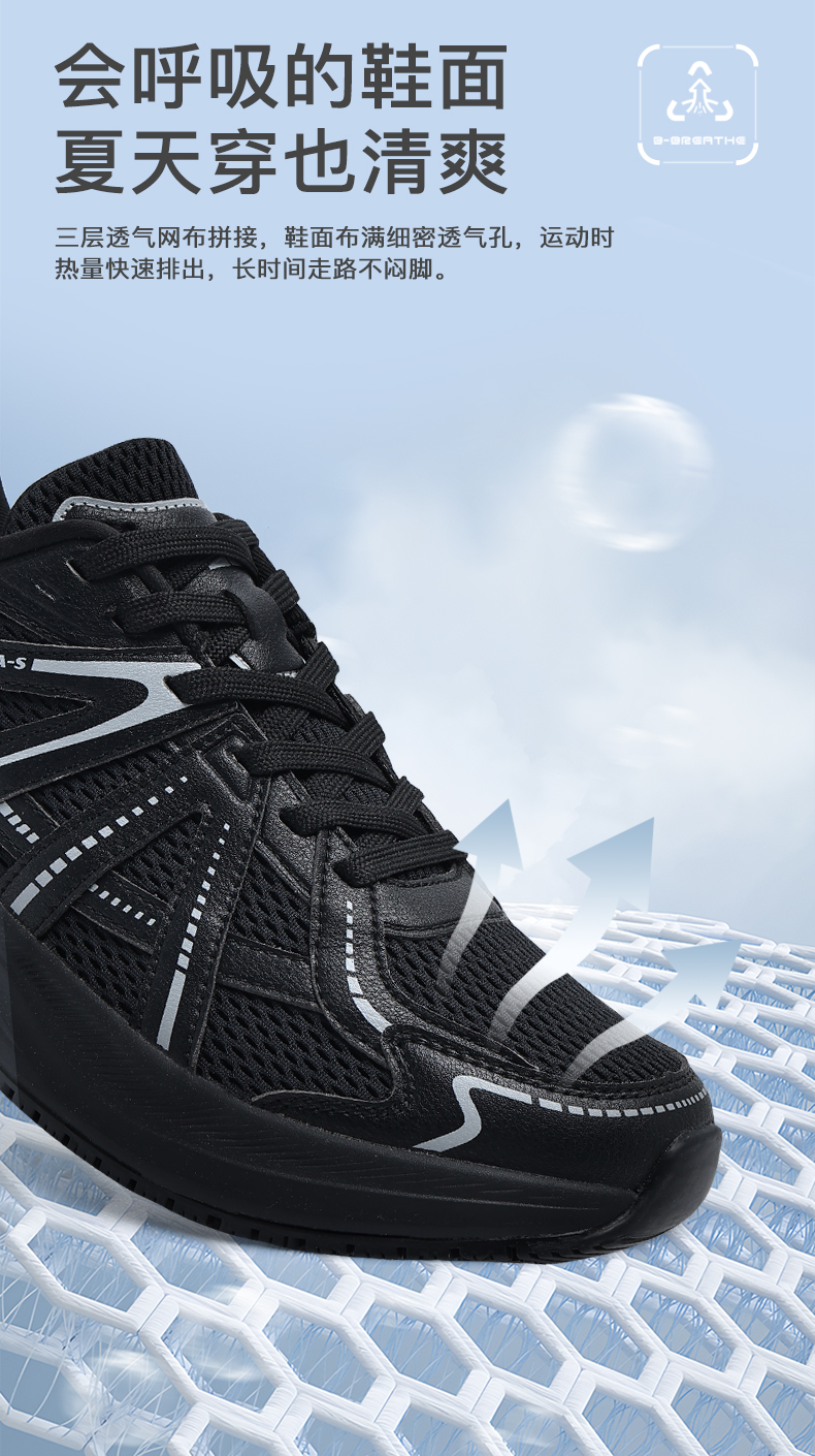 百宝男鞋运动鞋2025春夏季新款网面透气男士跑步鞋黑色防滑休闲鞋