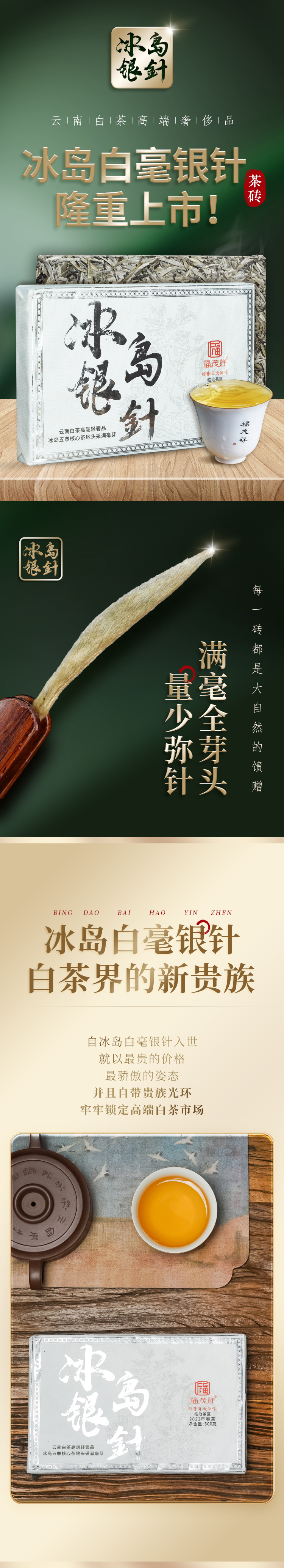 【积分兑换】【冰岛银针】2022年云南白茶 冰岛古300 全芽头冰岛白毫银针茶砖500g/砖