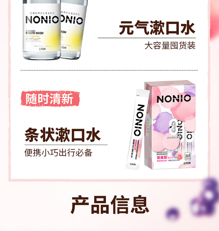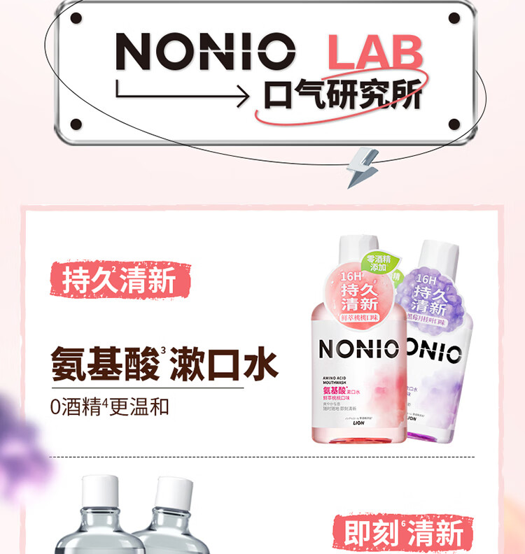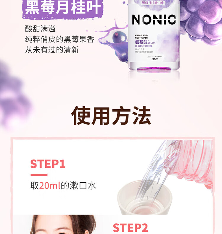 【分仓直发包邮】狮王NONIO氨基酸漱口水450ml(鲜萃桃桃/黑莓月桂叶)