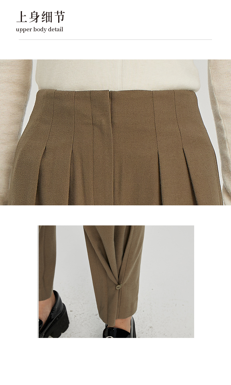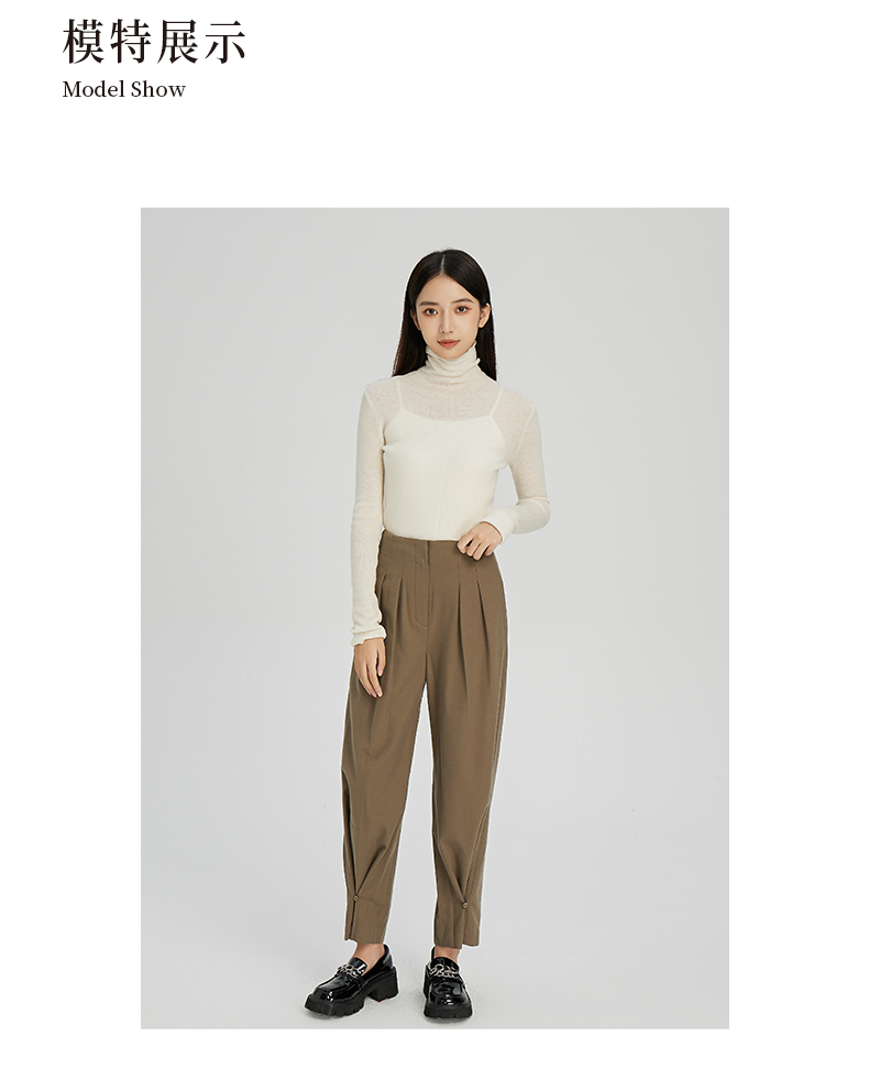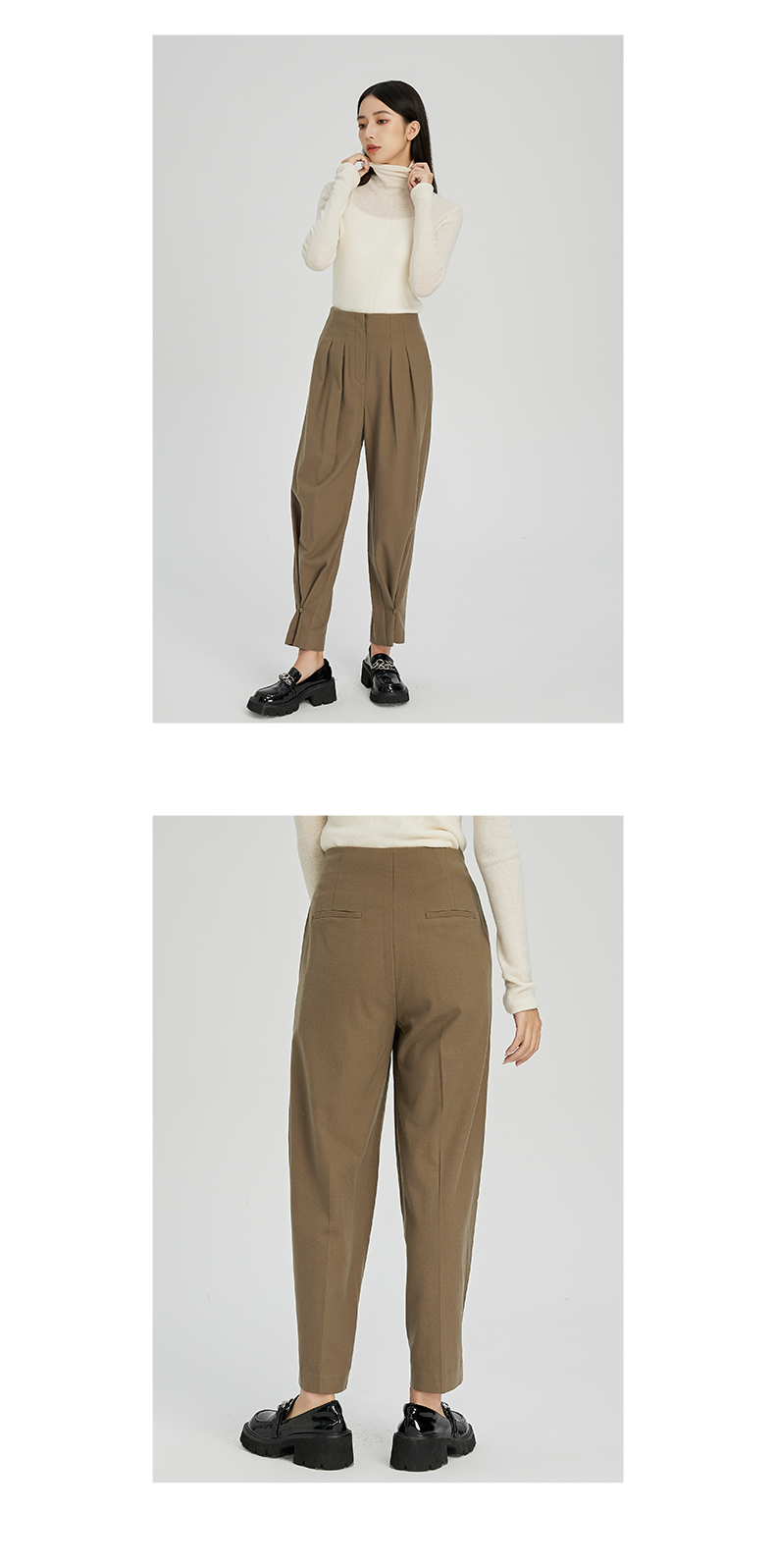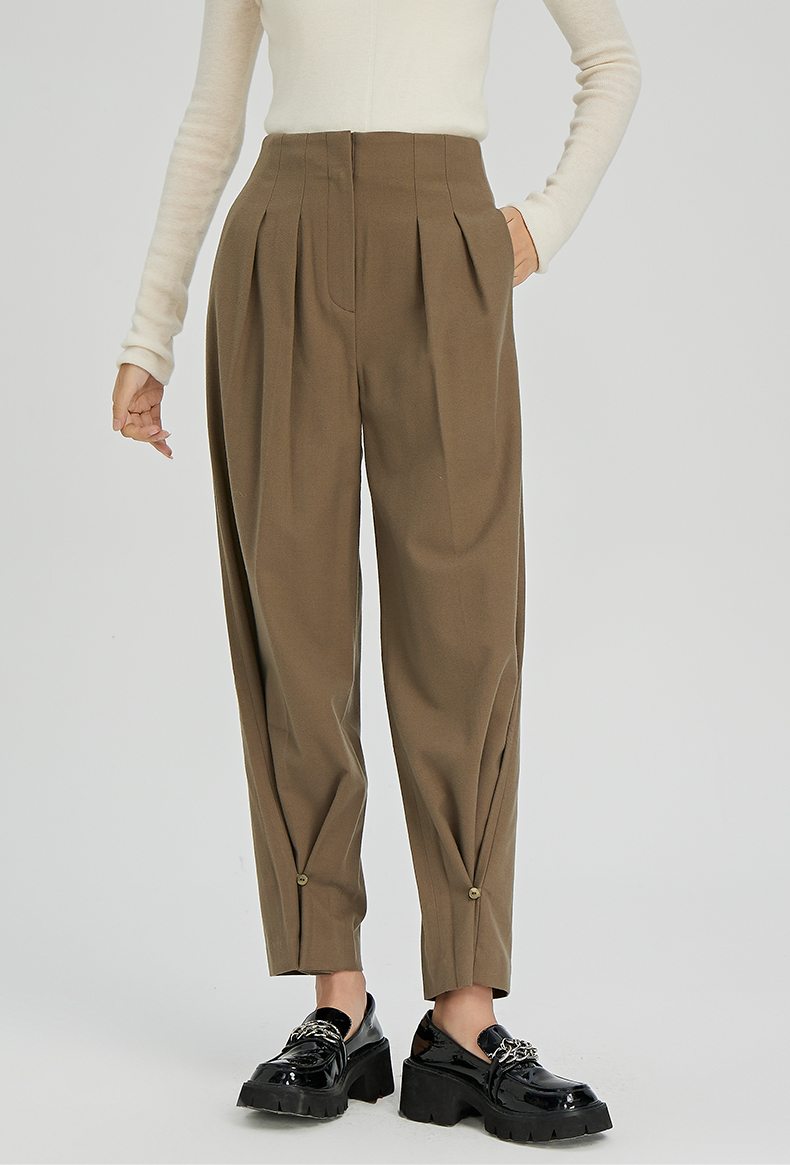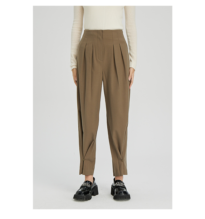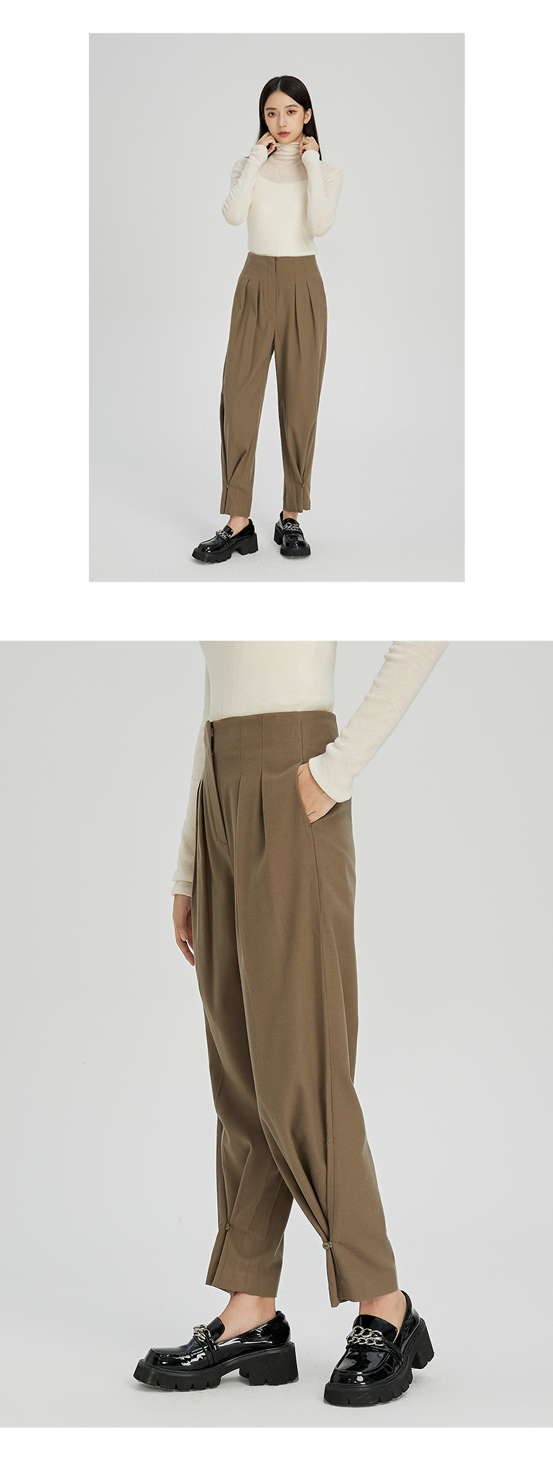 NUTS秋冬款棕色高腰显瘦设计感收脚休闲长裤女241073188B