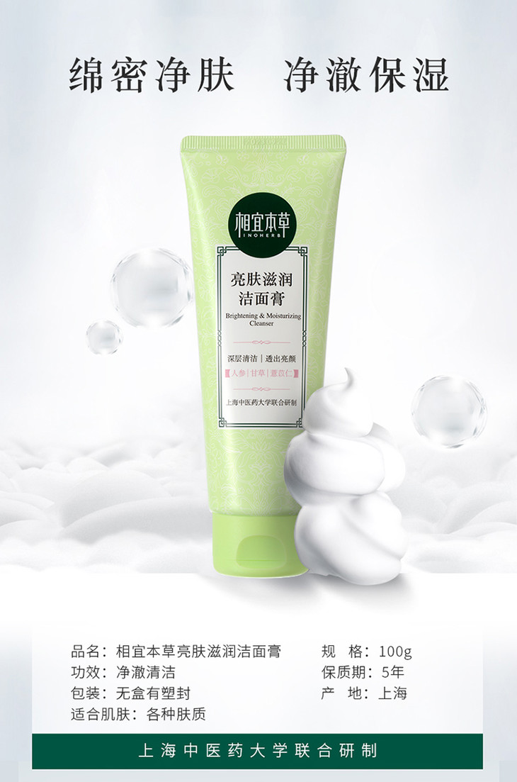 相宜本草 亮肤滋润洁面膏100g