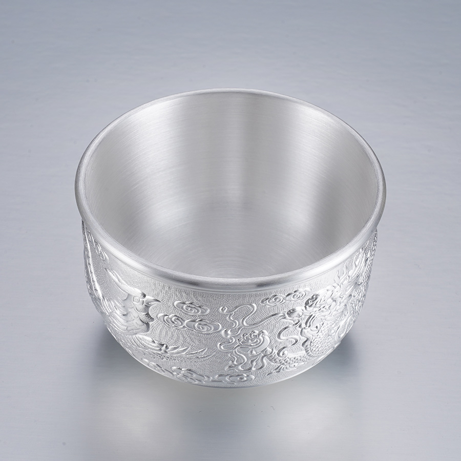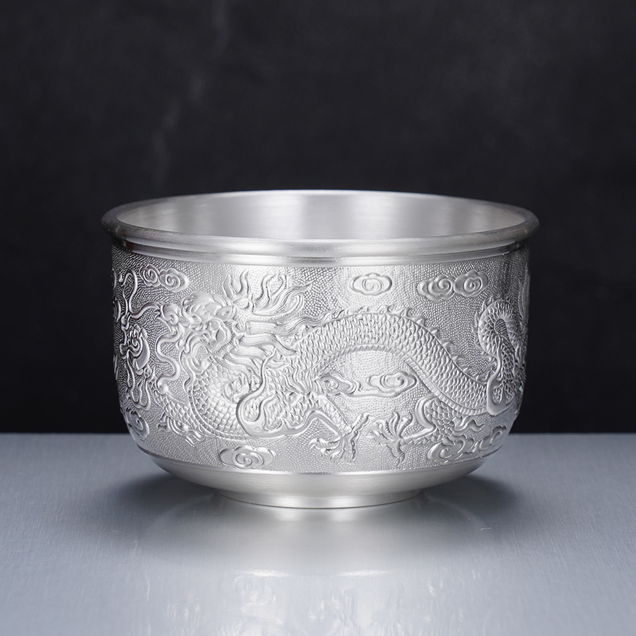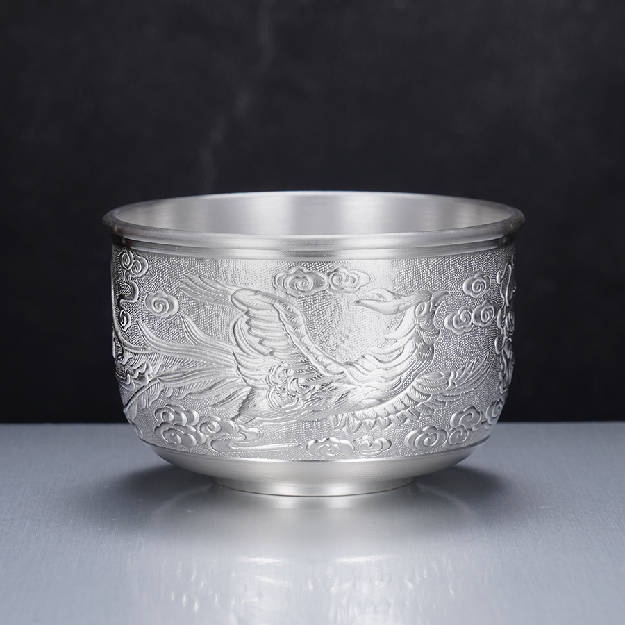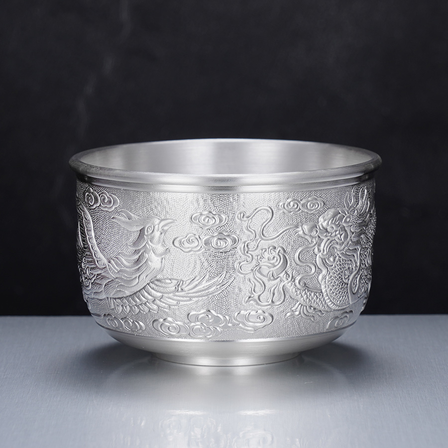 子佩集S999银【龙跃凤鸣】茶杯摆件纯银【DLCB002】茶具亮面大杯摆件2501