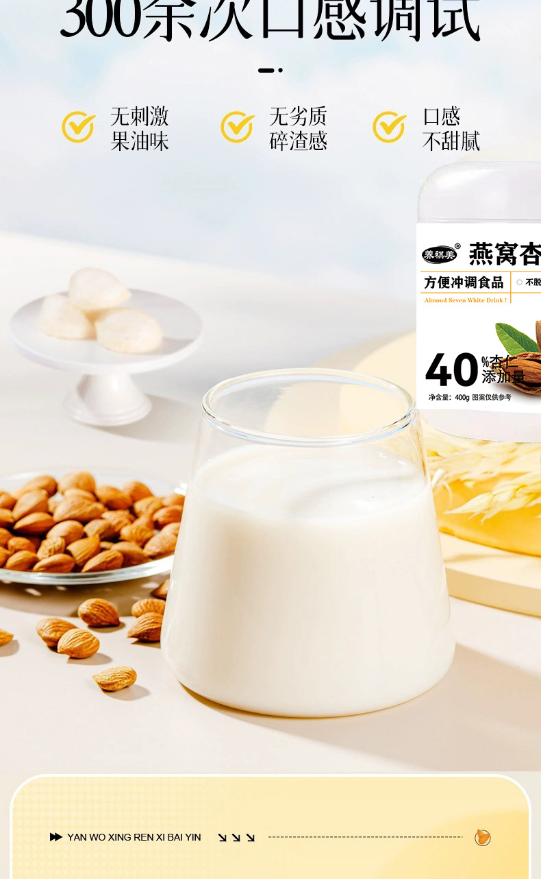 【买二送一❗燕窝杏仁七白饮】精选多重优质食材搭配而成,醇正杏仁香可口,细腻顺滑,易冲不结块,冲调即食代餐粉营养早餐QQ