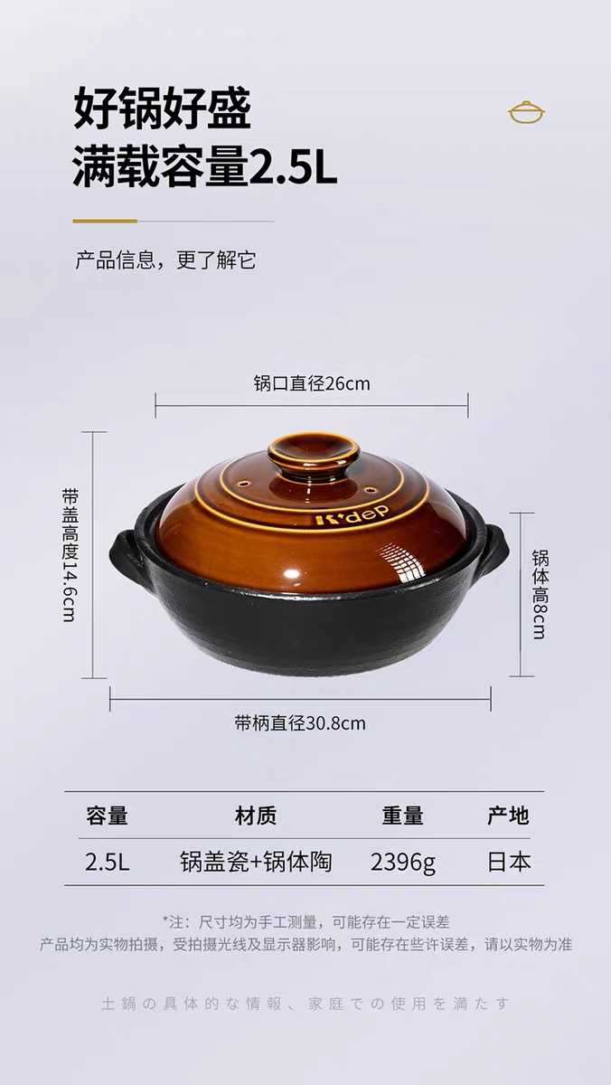 日本进口kdep凯得宝砂锅炖锅家用燃气明火陶瓷锅煲仔饭砂锅煲沙锅