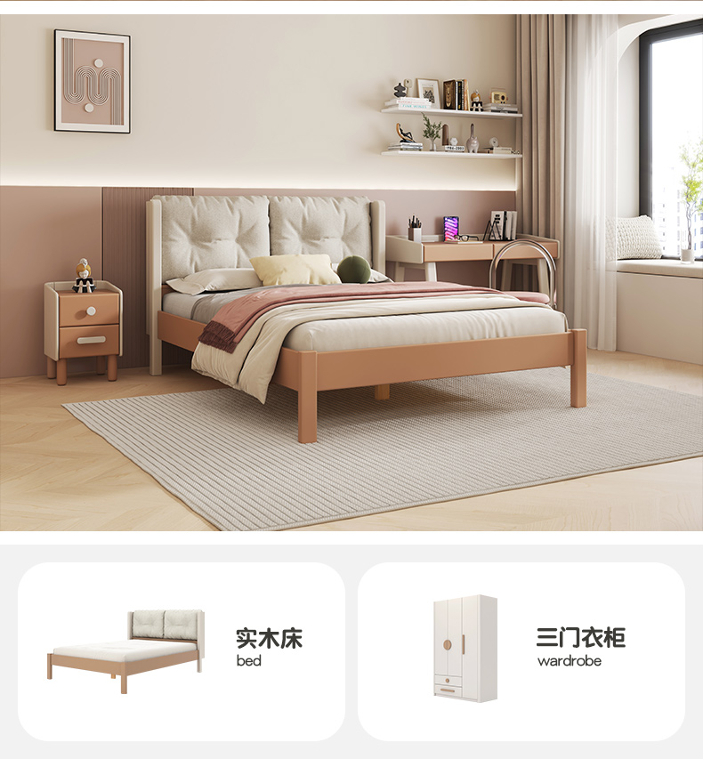 喜梦宝儿童学习桌全实木一字型书桌写字台实体店同款