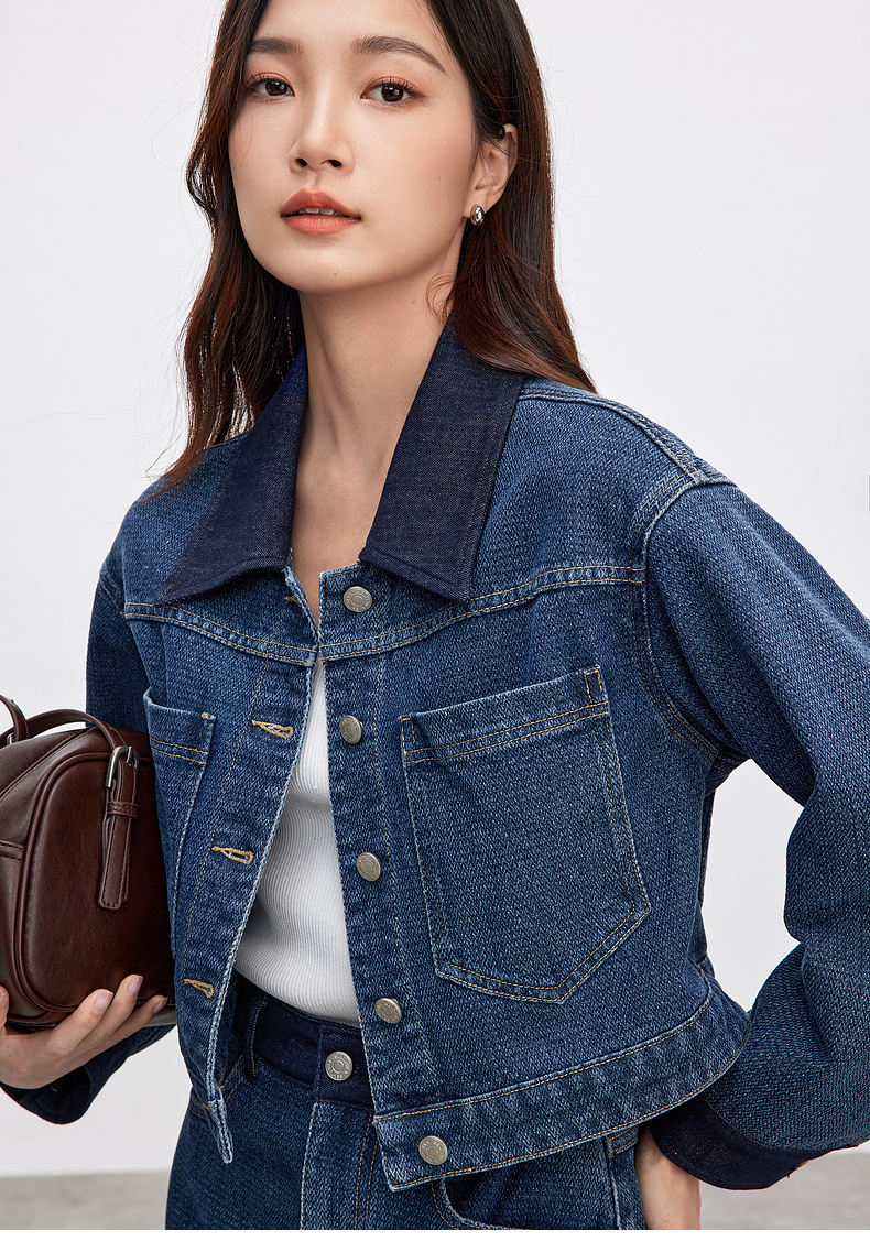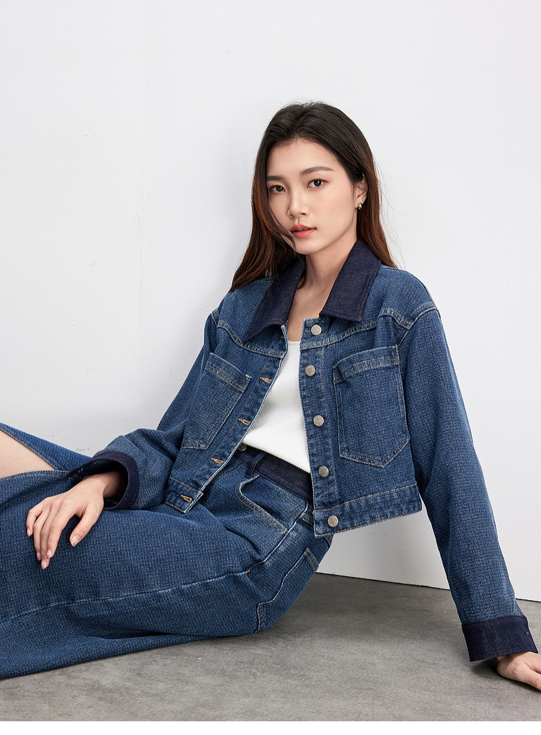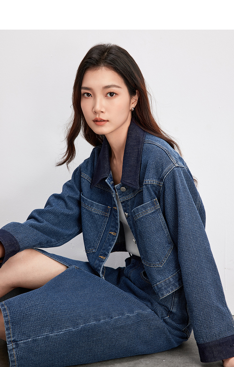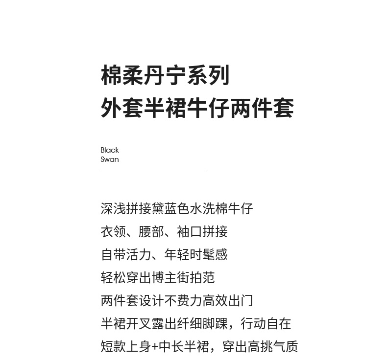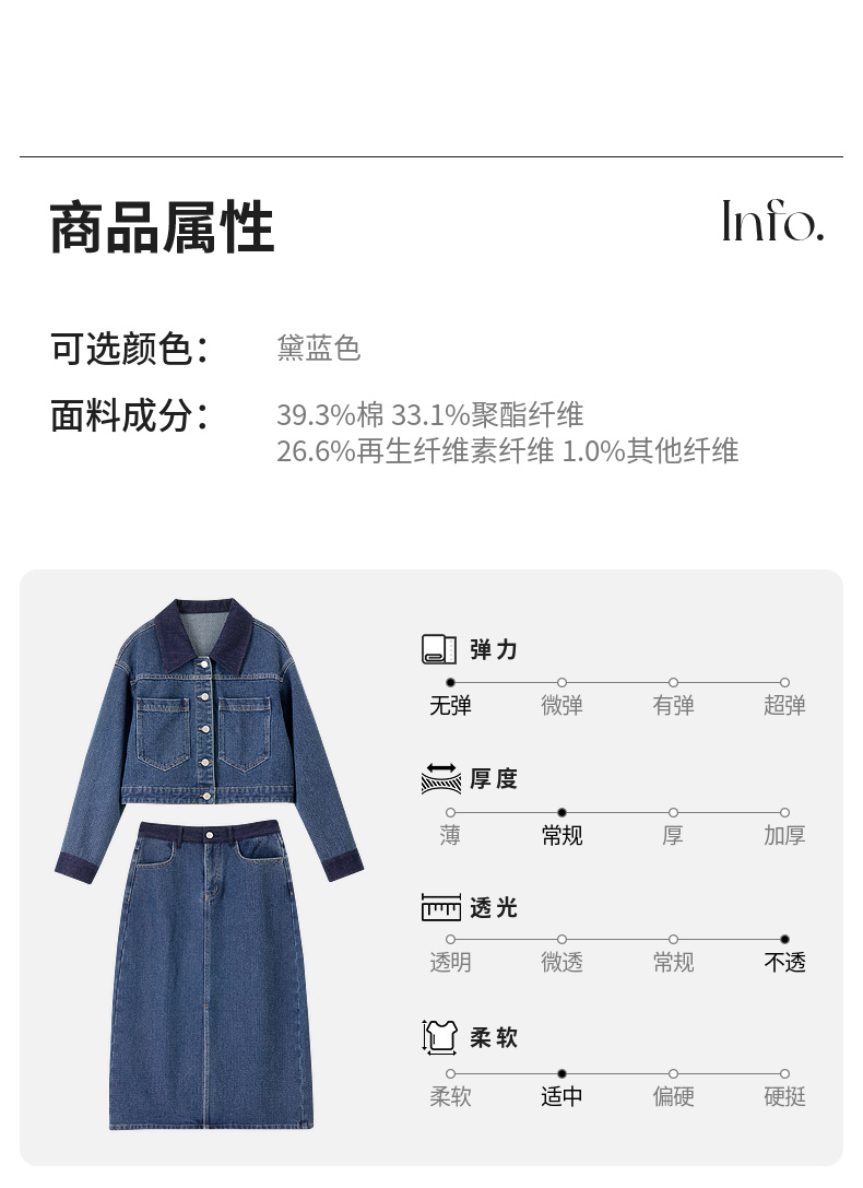 【内购】W51Z87901休闲通勤衬衫外套开叉半裙水洗棉牛仔套装-RJ054