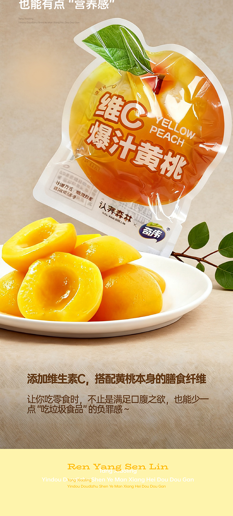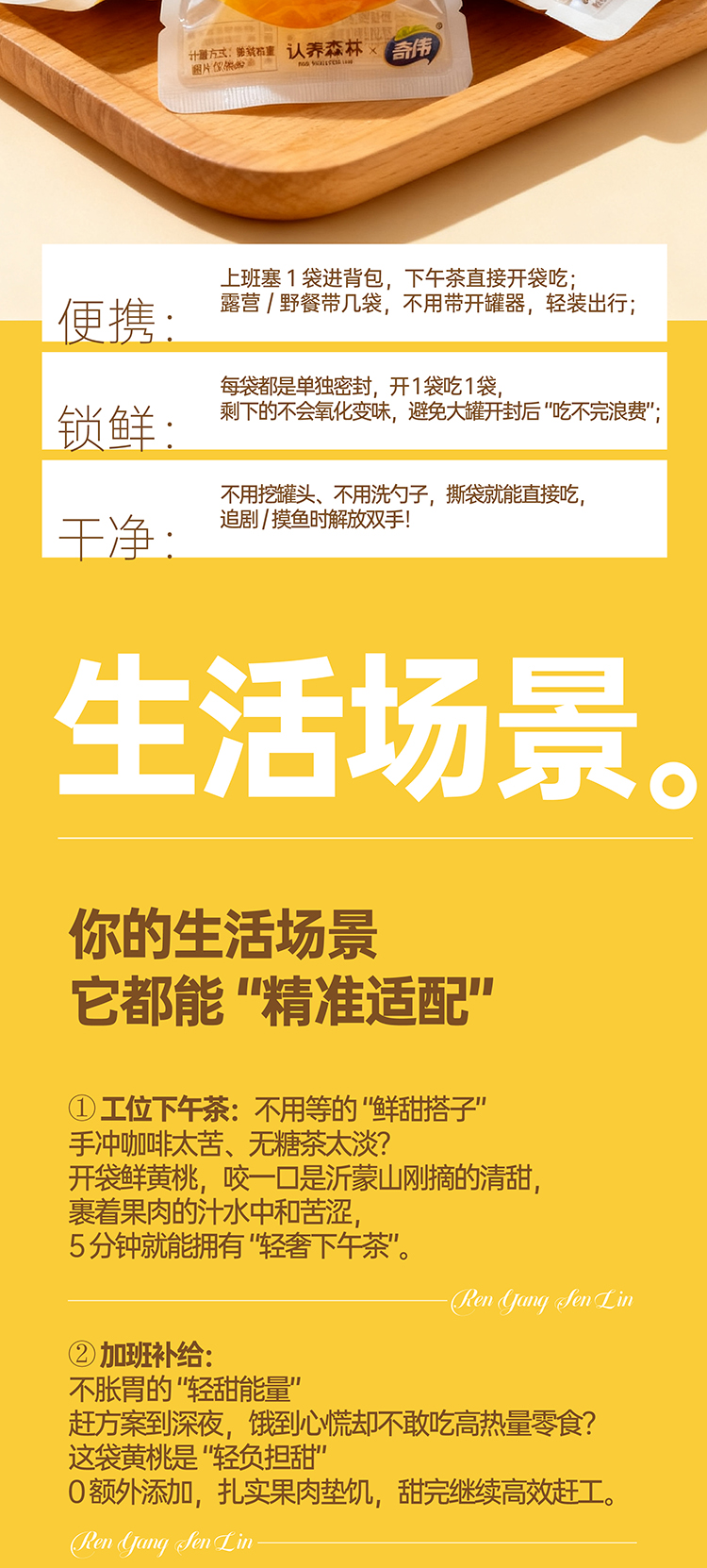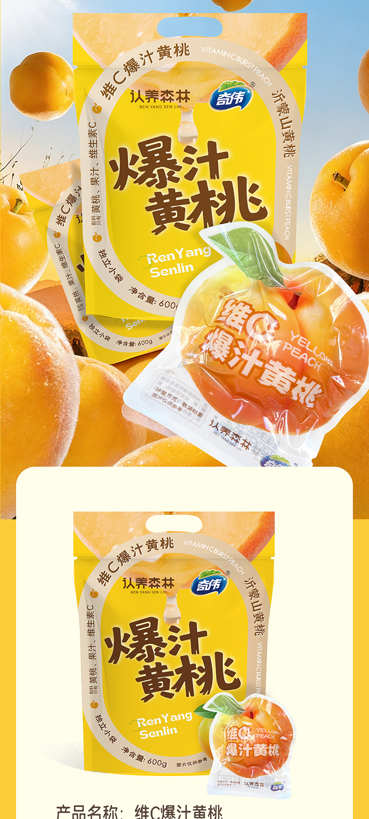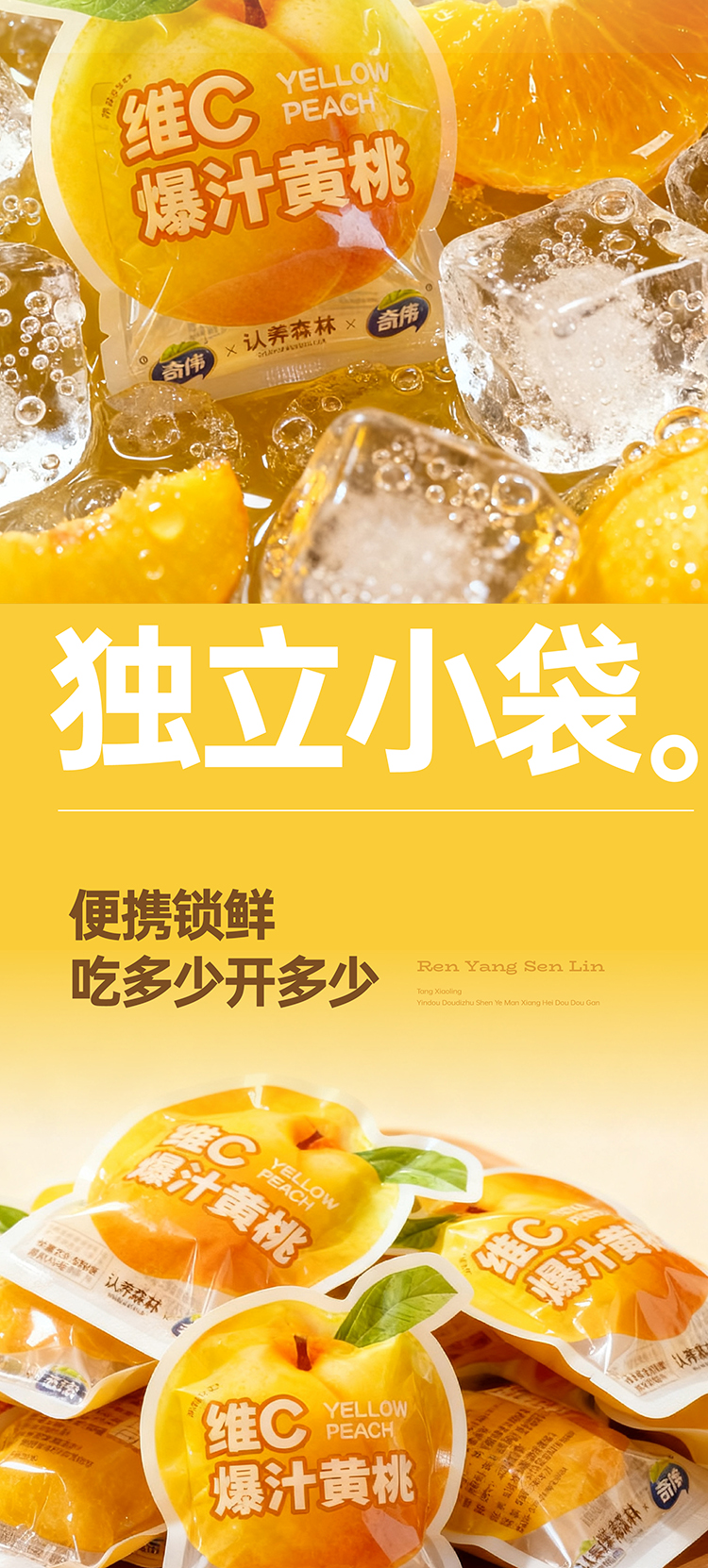 独立小袋密封锁鲜,牢牢锁住黄桃的水分和香气,随时随地享美味;