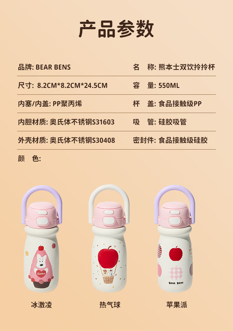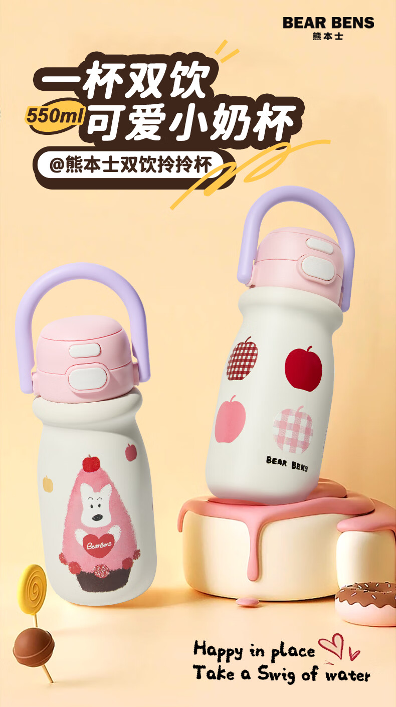 BEAR BENS熊本士小奶杯水杯随行咖啡杯便携拎拎壶 (316双饮杯) 550ml YD