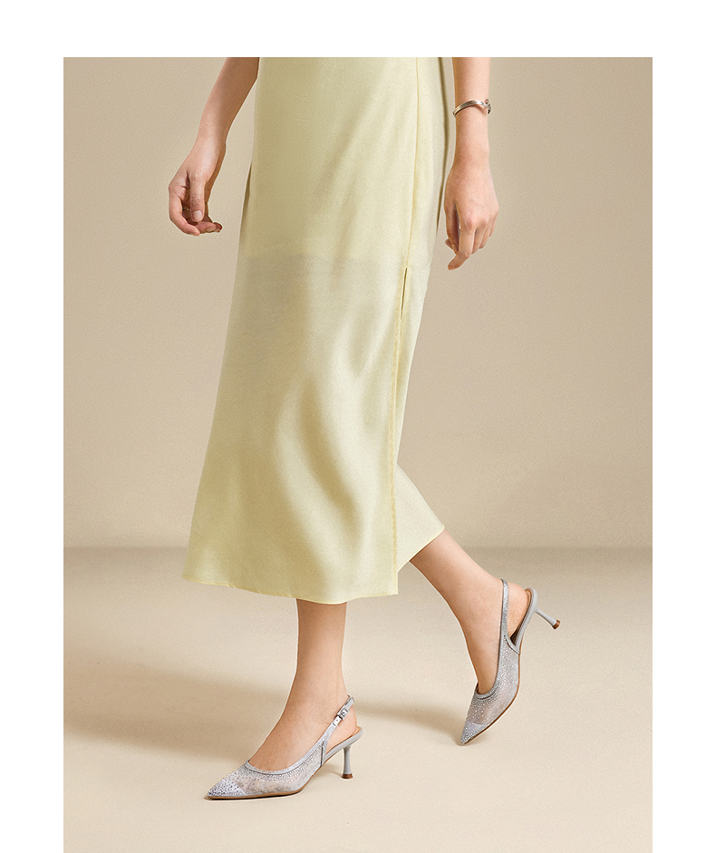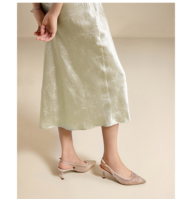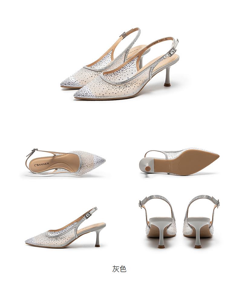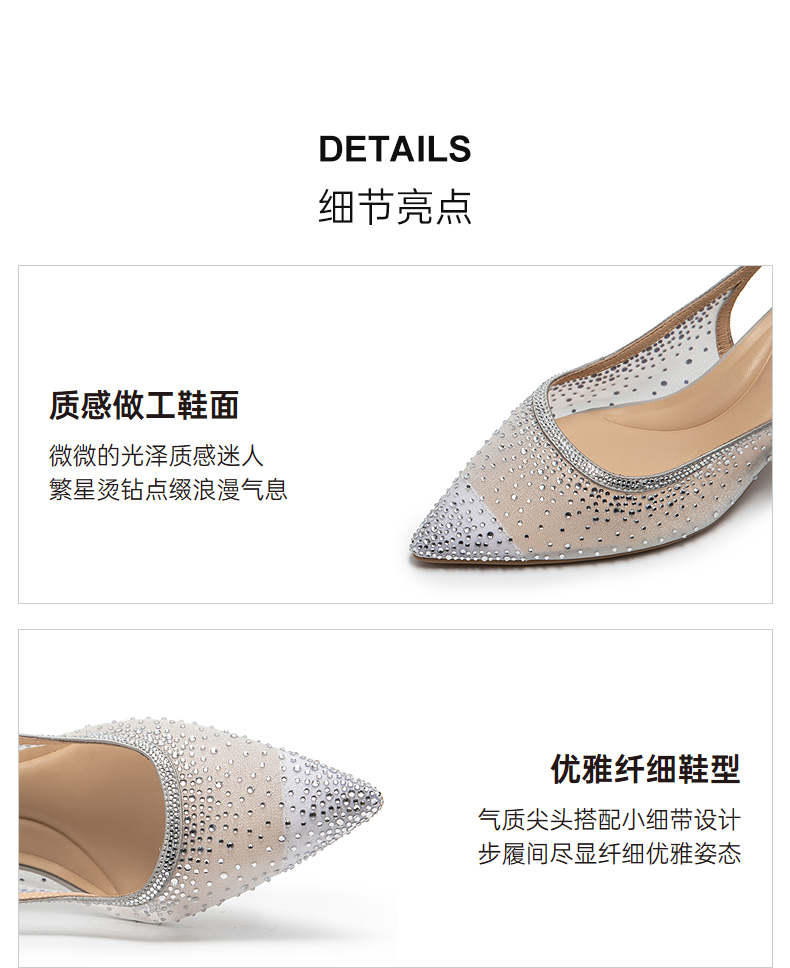 千百度细高跟繁星烫钻婚鞋时装凉鞋女包头后空凉鞋A25210736