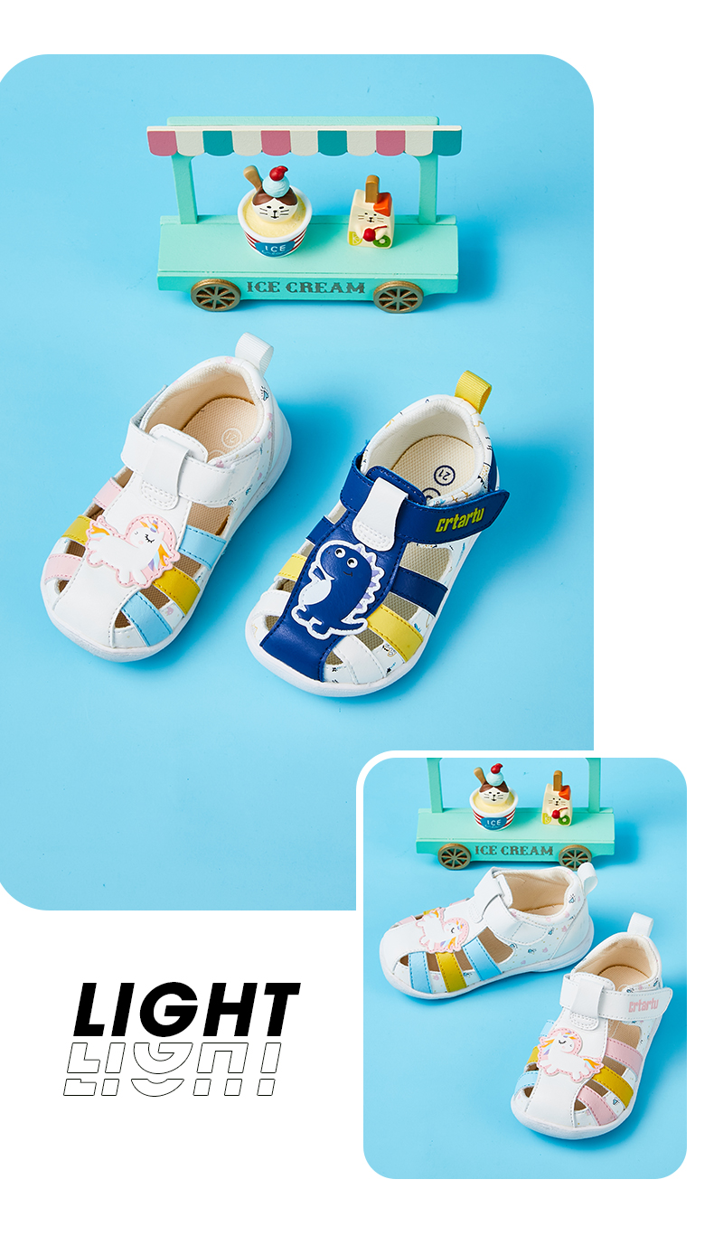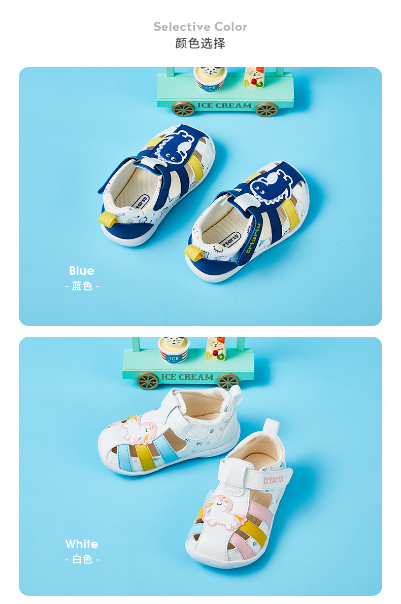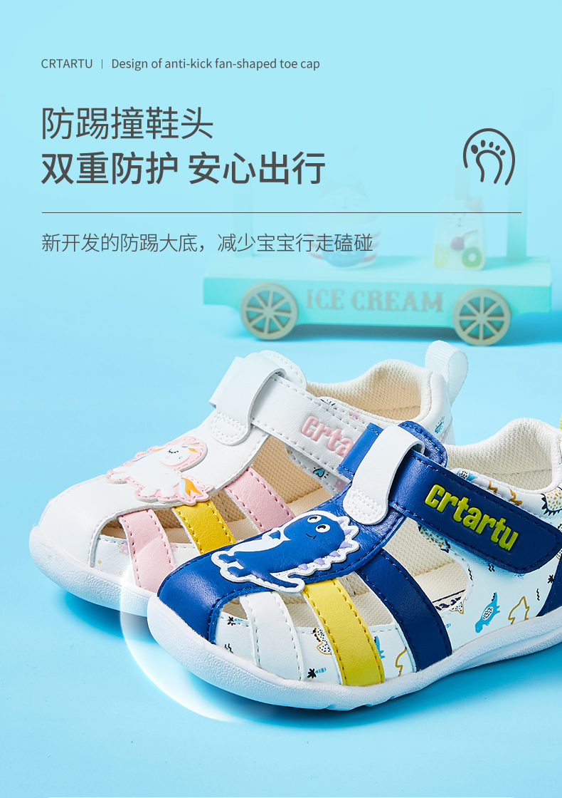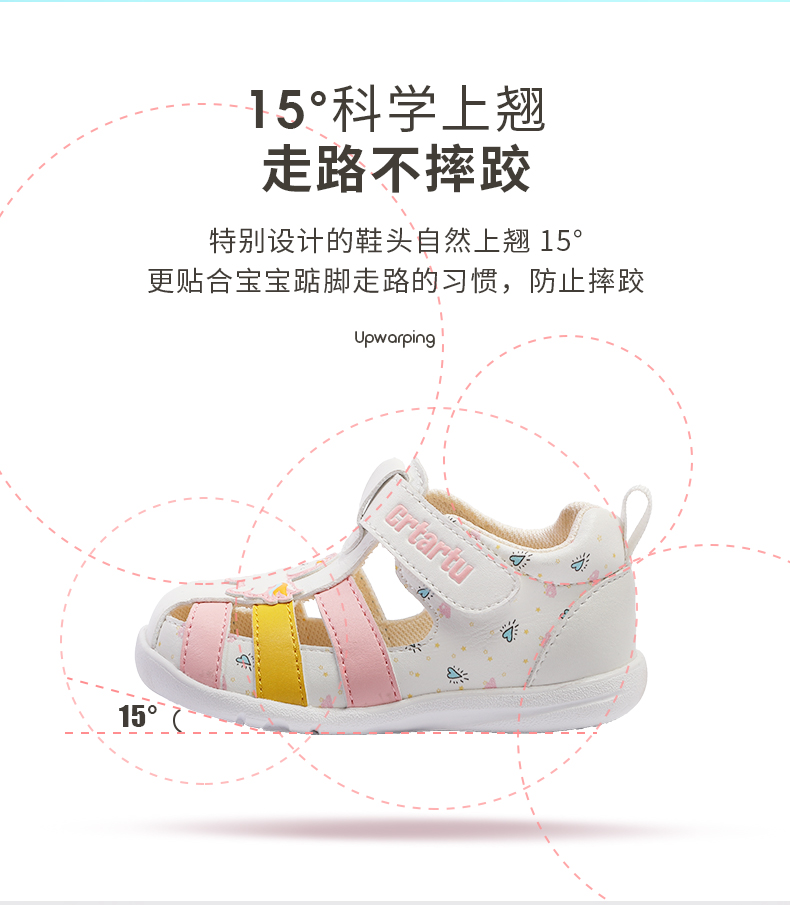 卡特兔女童凉鞋2023夏季新款婴儿鞋软底学步卡通儿童包头皮凉鞋