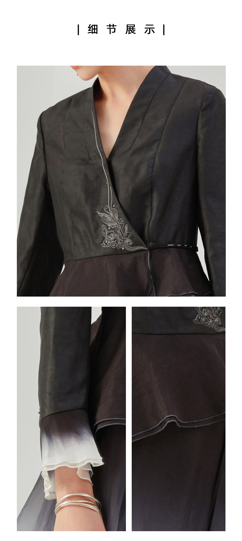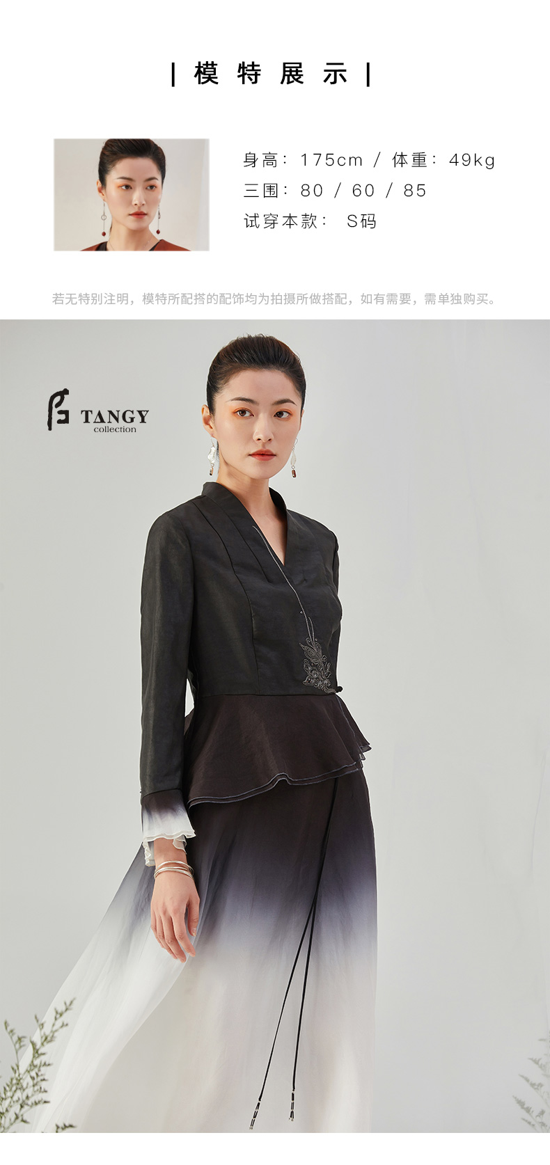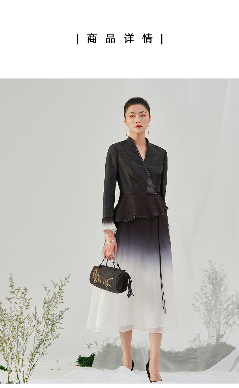 TANGY Collection/天意精品2021年秋季新品吊染拼撞刺绣莨绸连衣裙