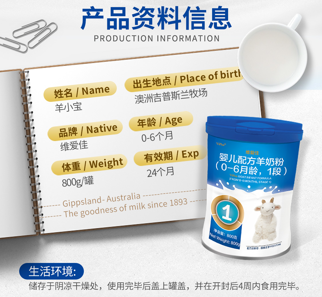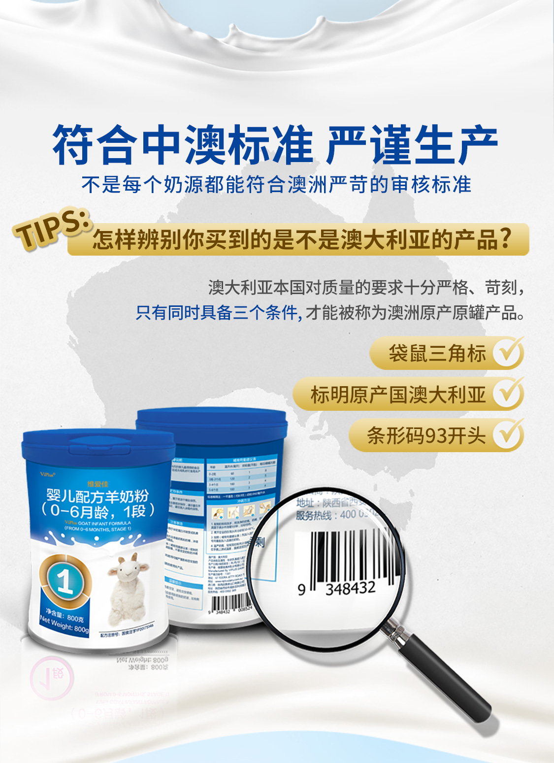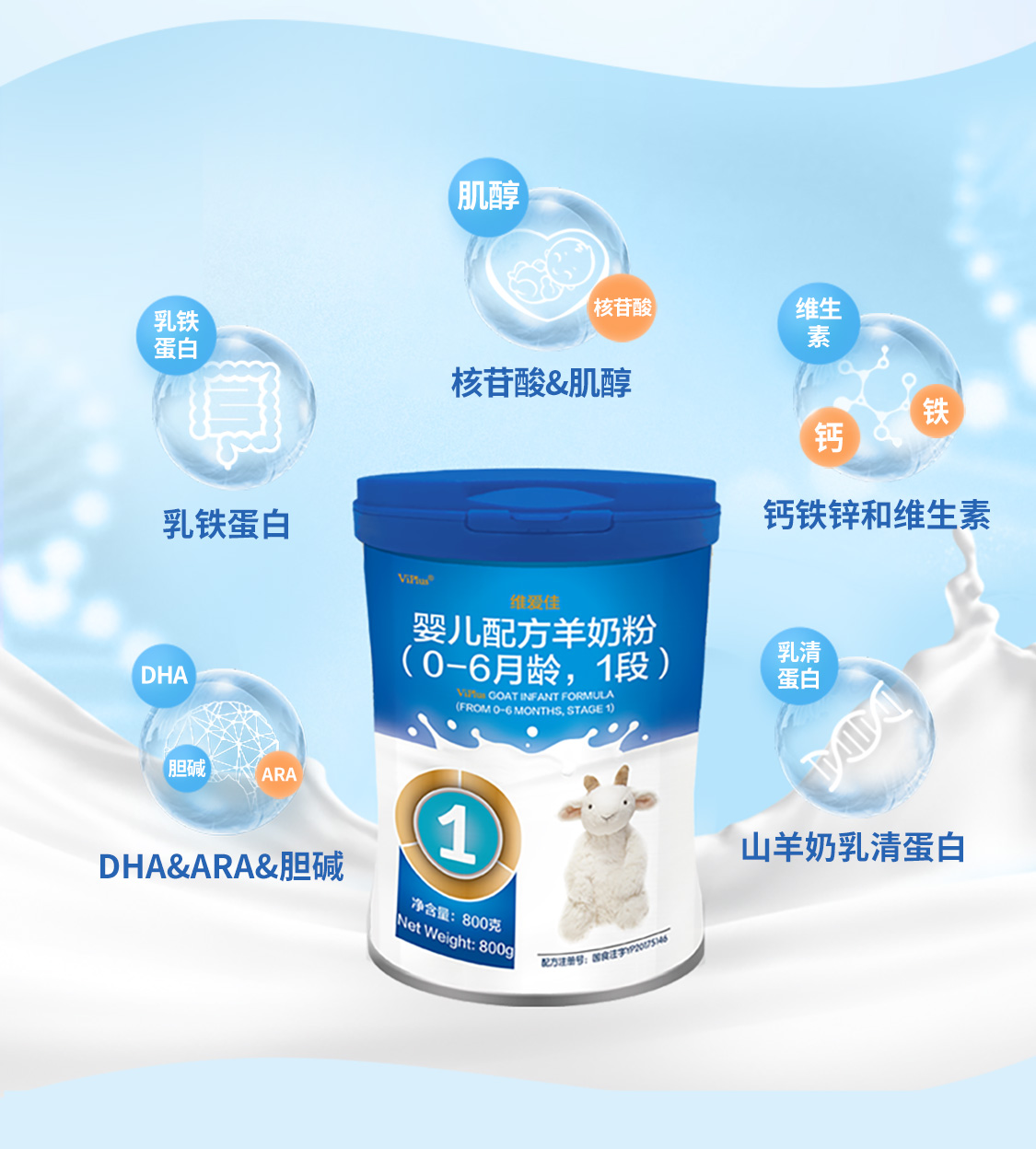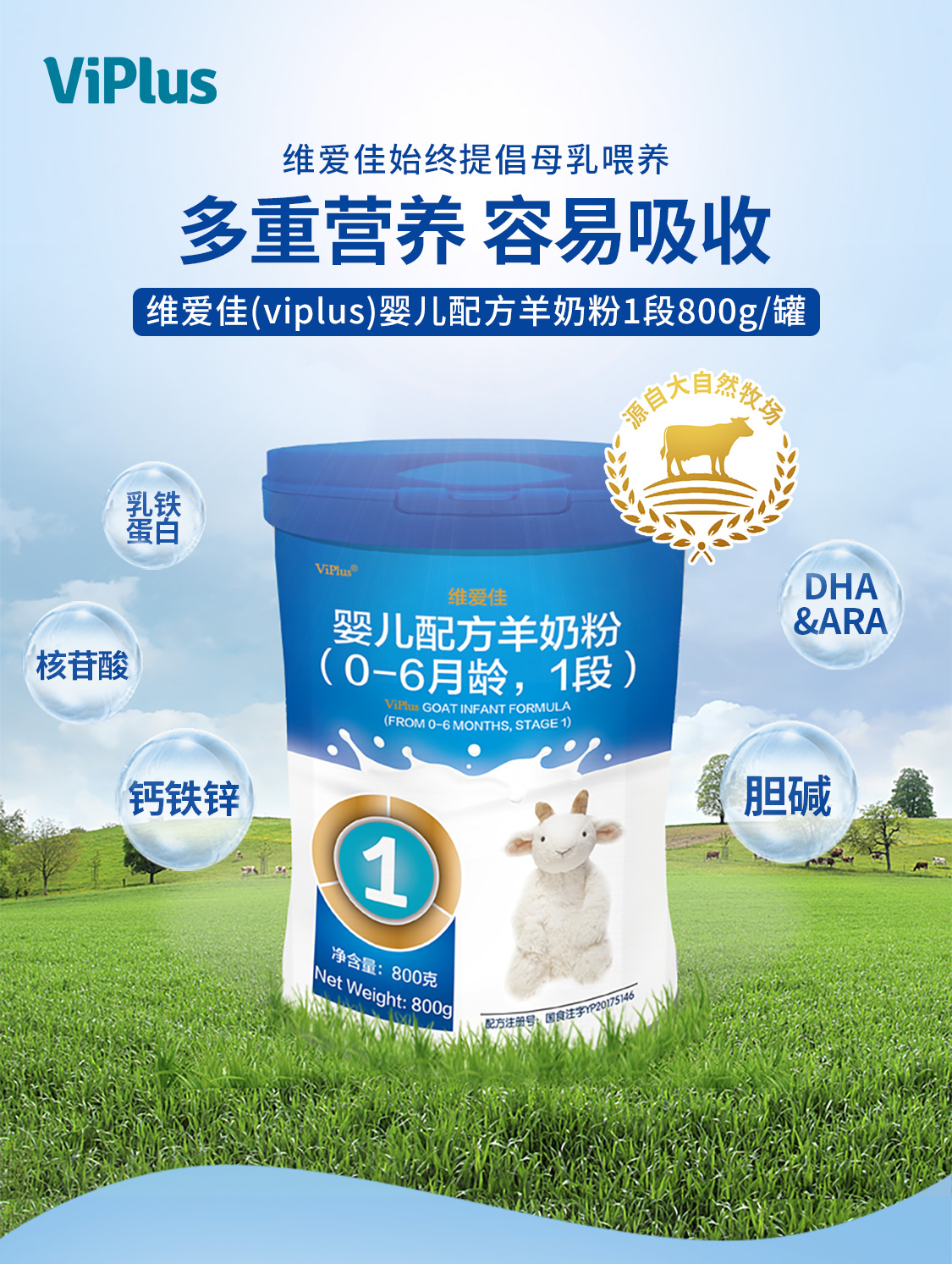 澳洲进 维爱佳Viplus婴儿配方羊奶粉1段 乳铁蛋白 DHA ARA 0-6月 800g罐【维爱佳】