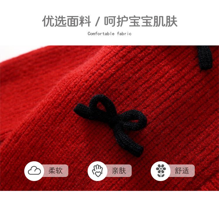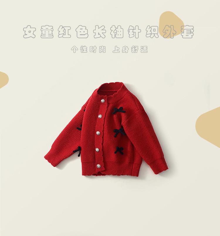 Hania2026年新年女童红色针织开衫秋冬新款中小童韩版蝴蝶结长袖毛衣套装90-140★