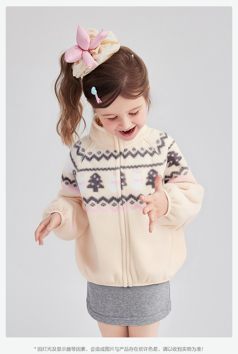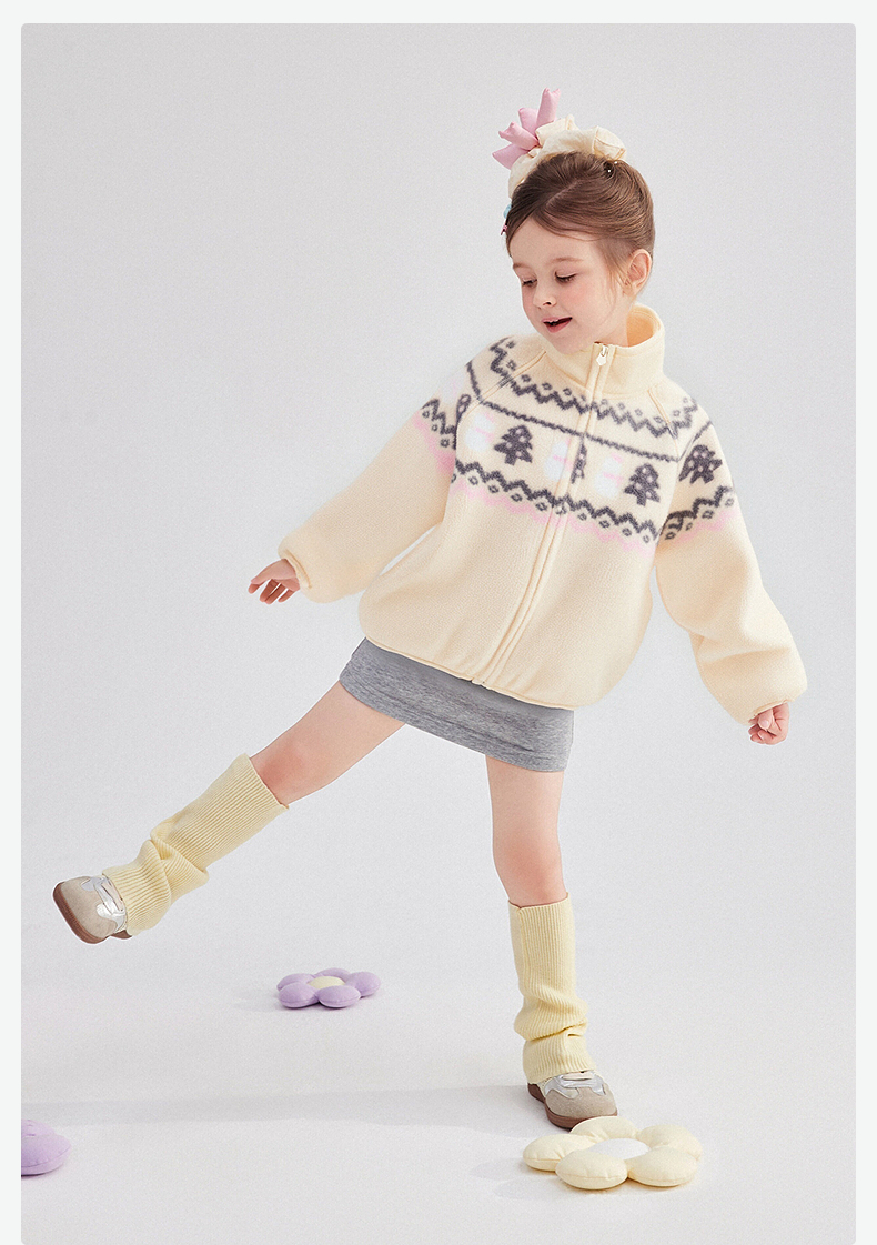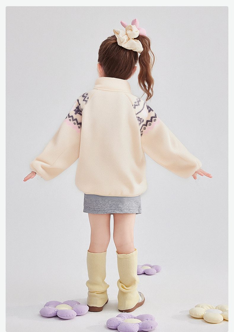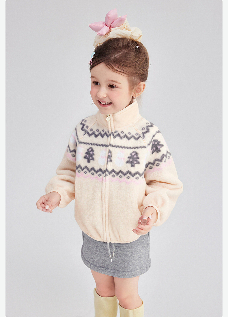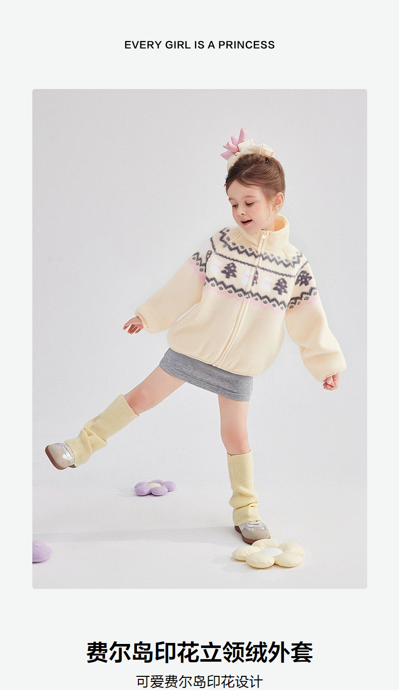 笛莎Deesha 童装女童外套2025冬新款女童费尔岛印花立领绒外套