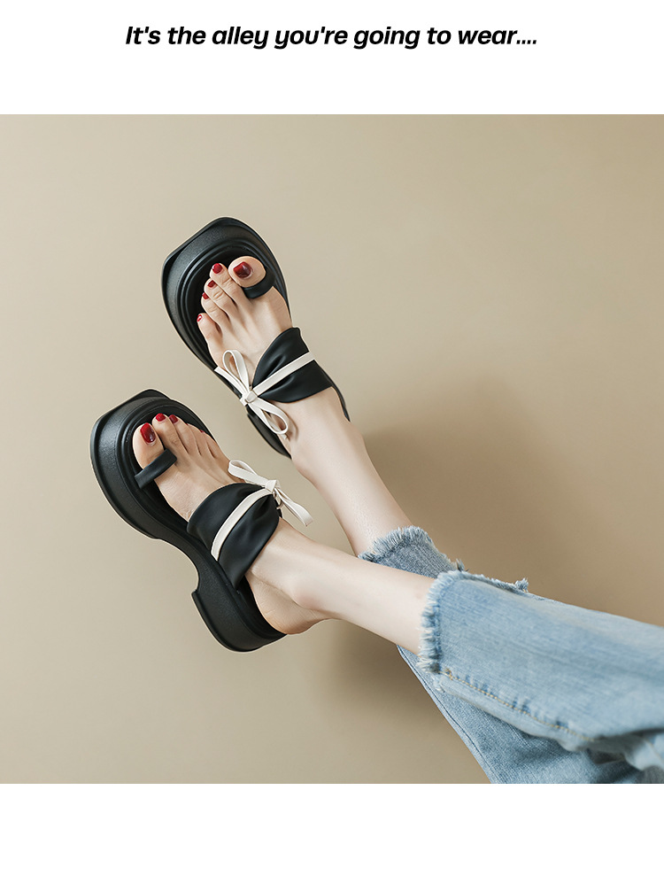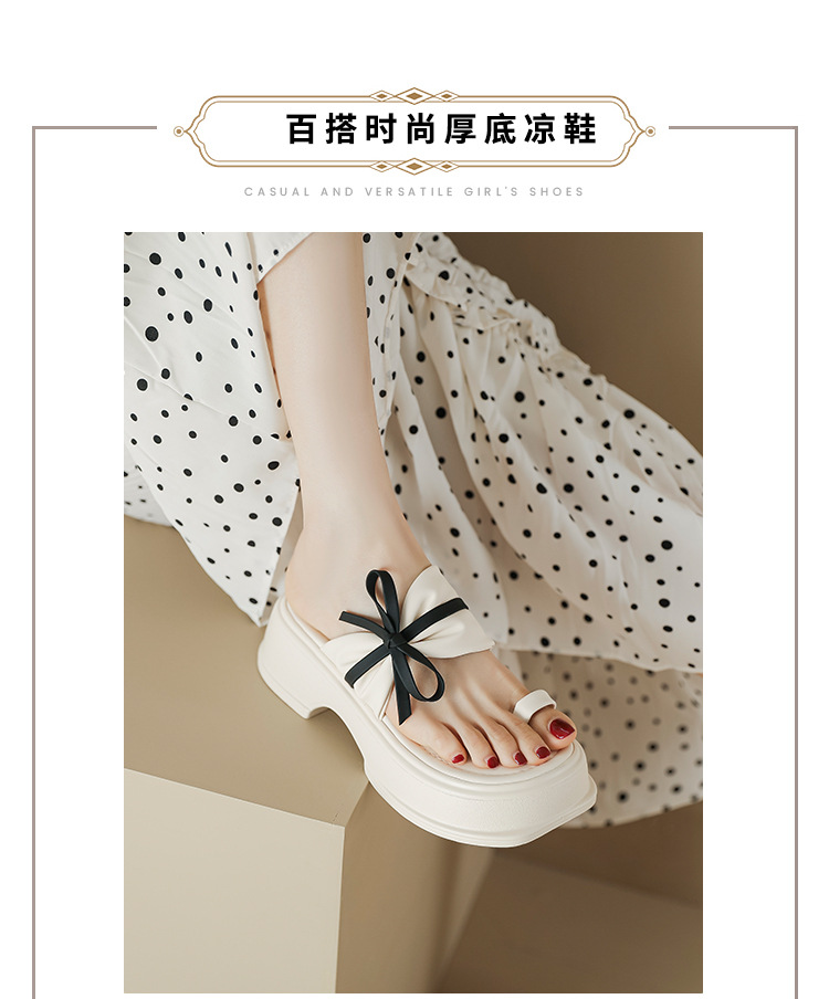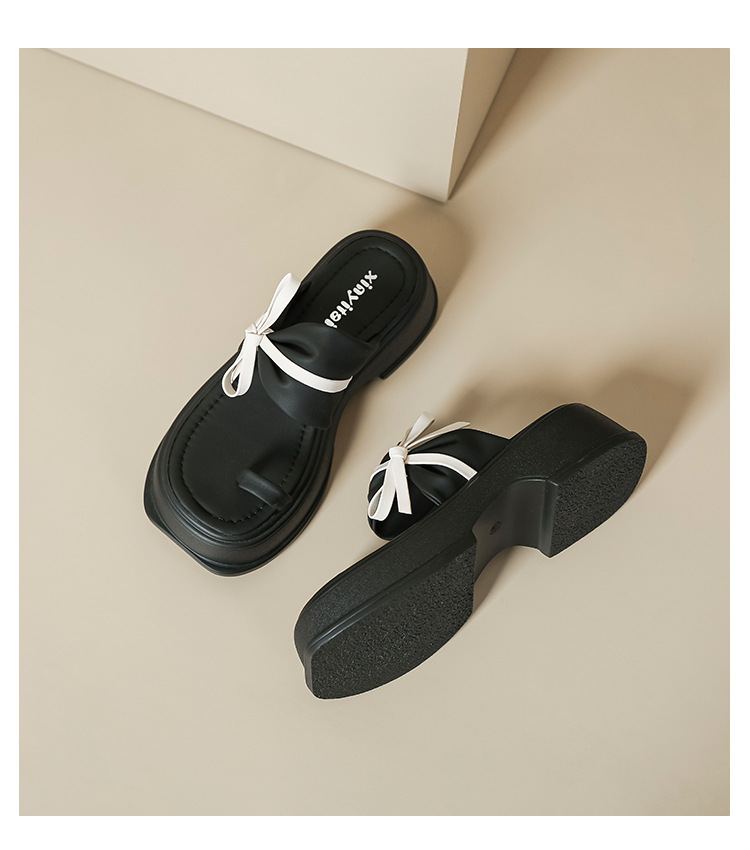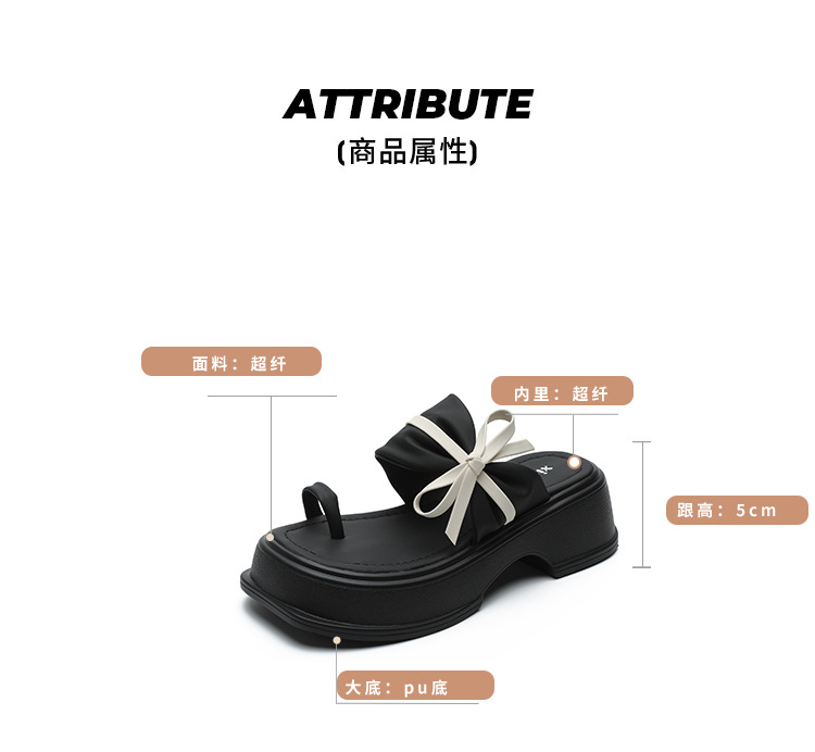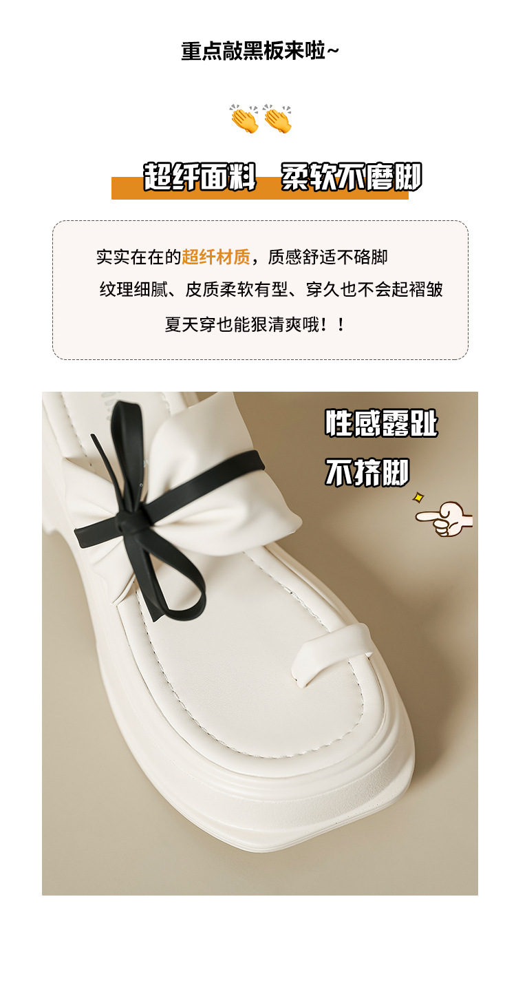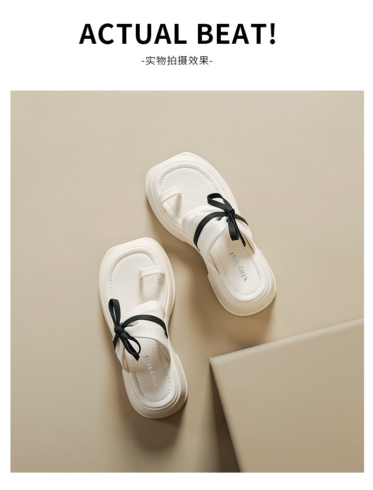 【黑白配ju好看】蝴蝶结拖鞋女2023夏季新款松糕厚底夹趾凉鞋女