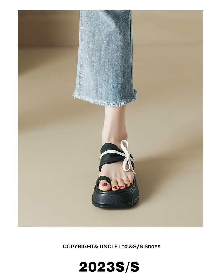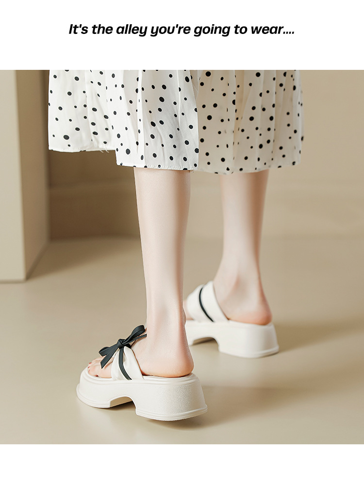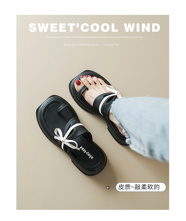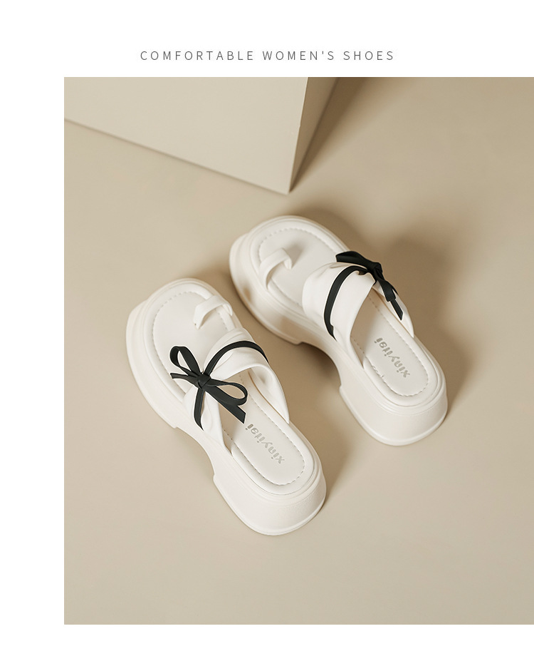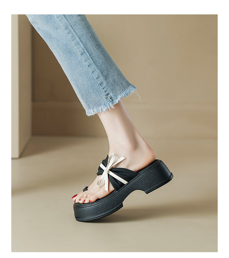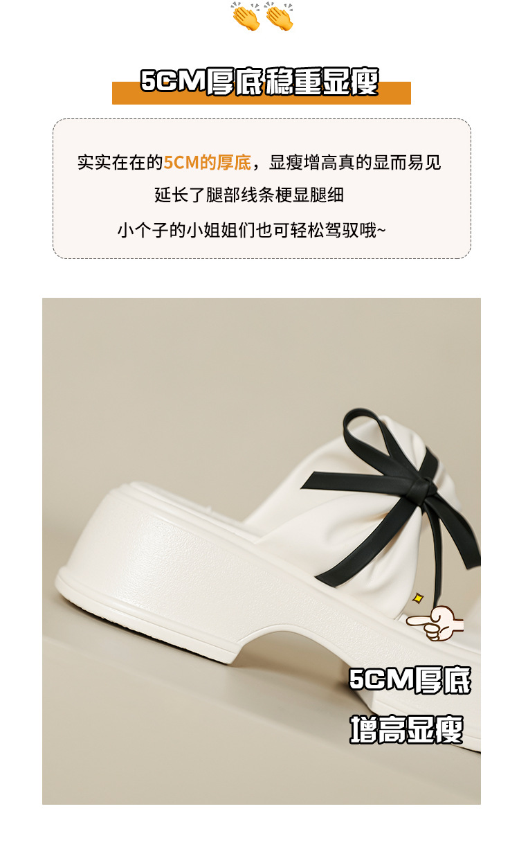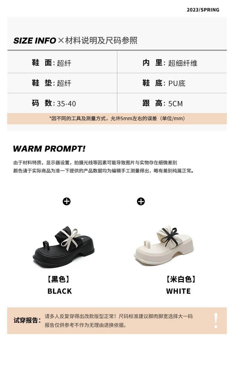 【黑白配ju好看】蝴蝶结拖鞋女2023夏季新款松糕厚底夹趾凉鞋女
