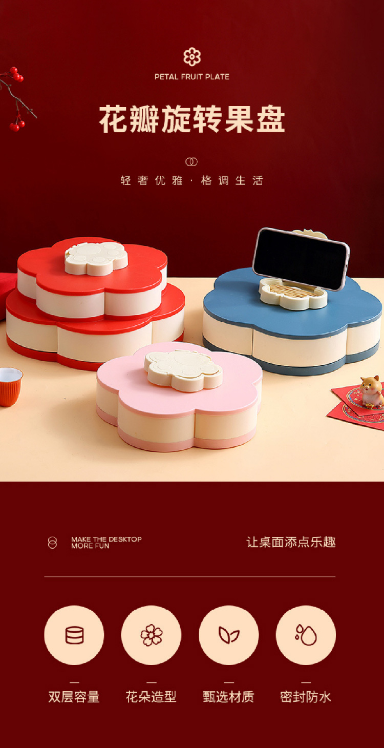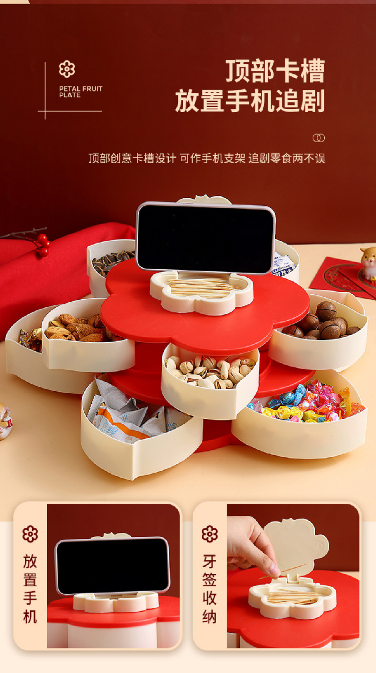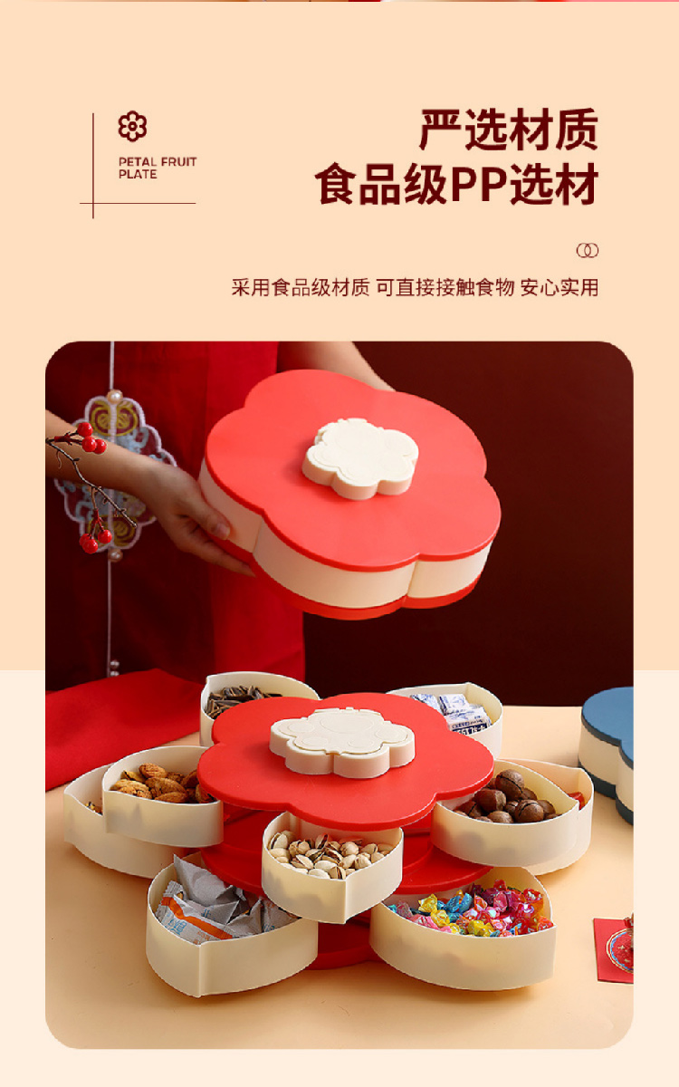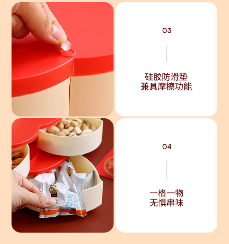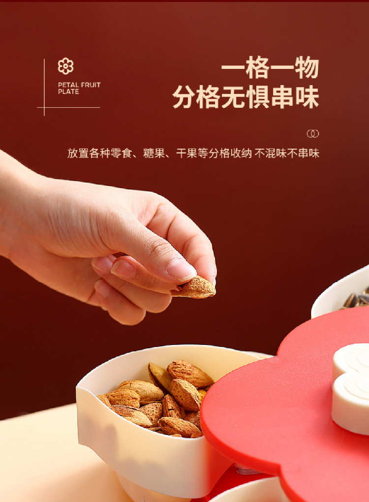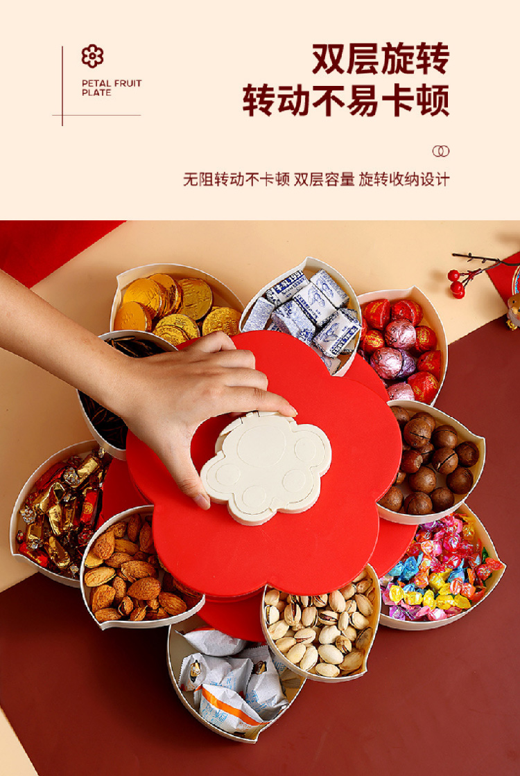 糖果盘新年喜气果盘客厅干果盘分格水果盘旋转果盘家用零食收纳盒
