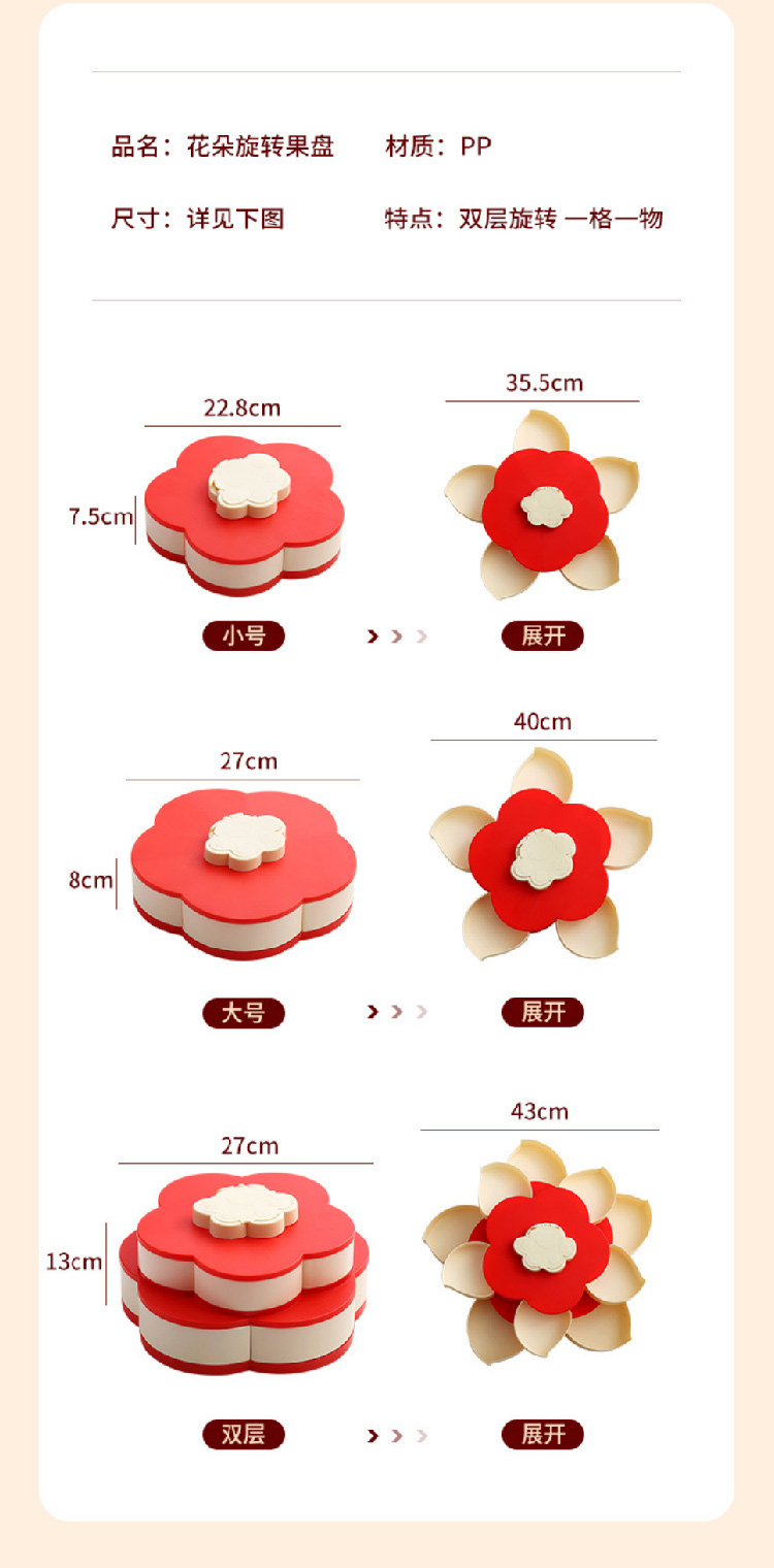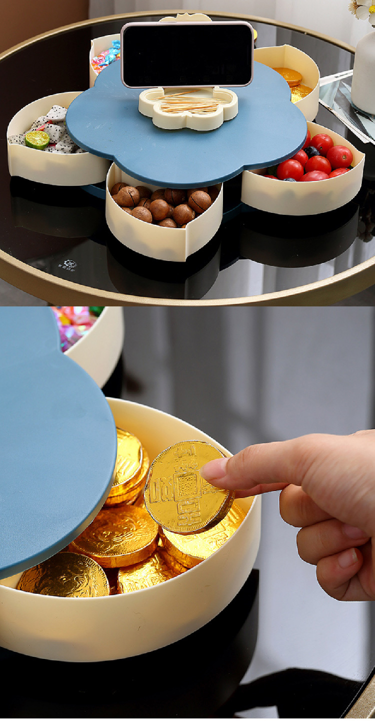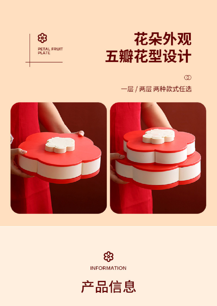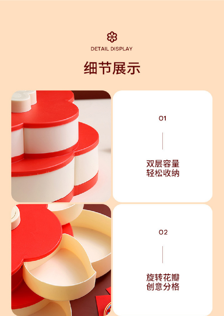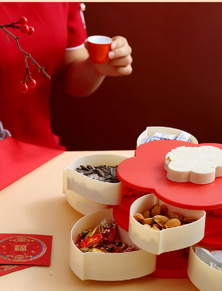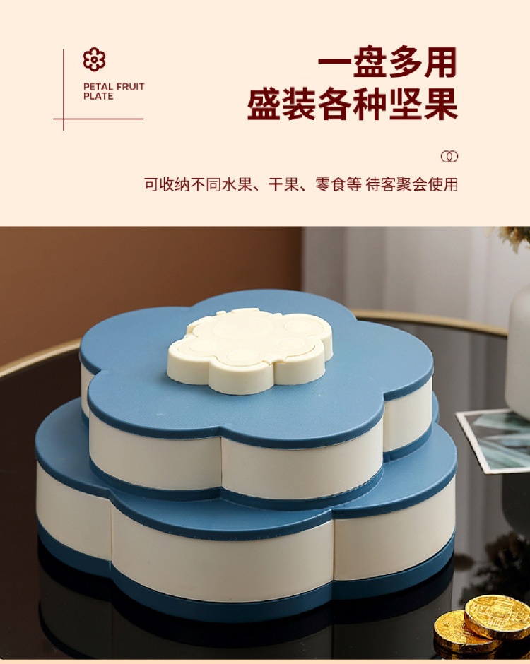 糖果盘新年喜气果盘客厅干果盘分格水果盘旋转果盘家用零食收纳盒