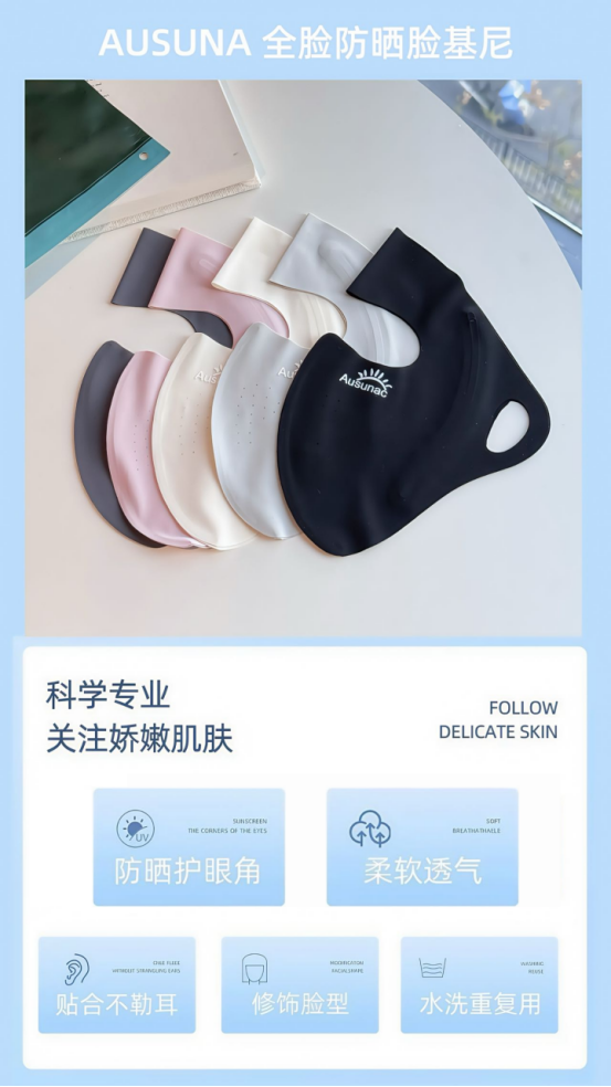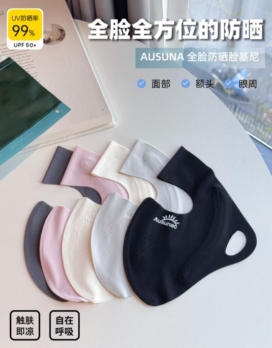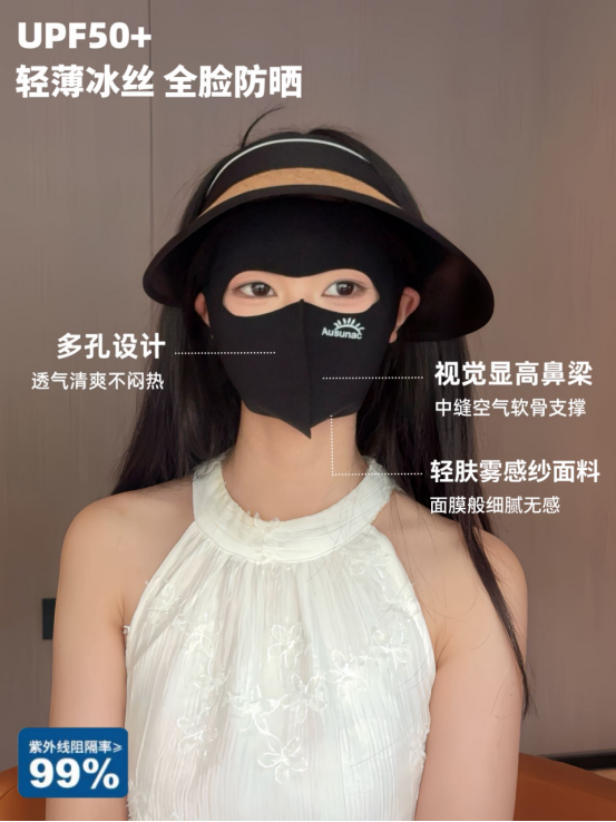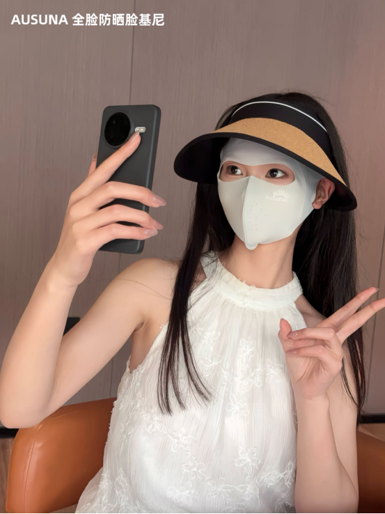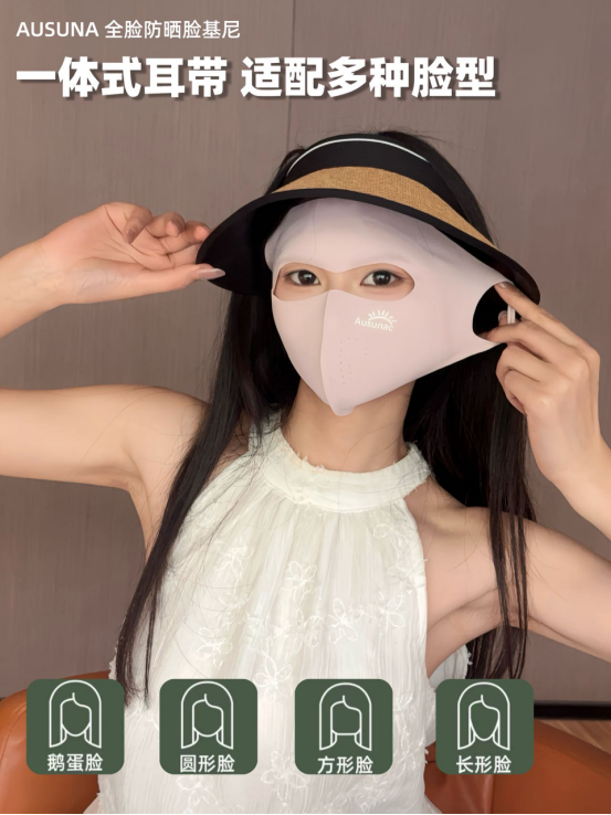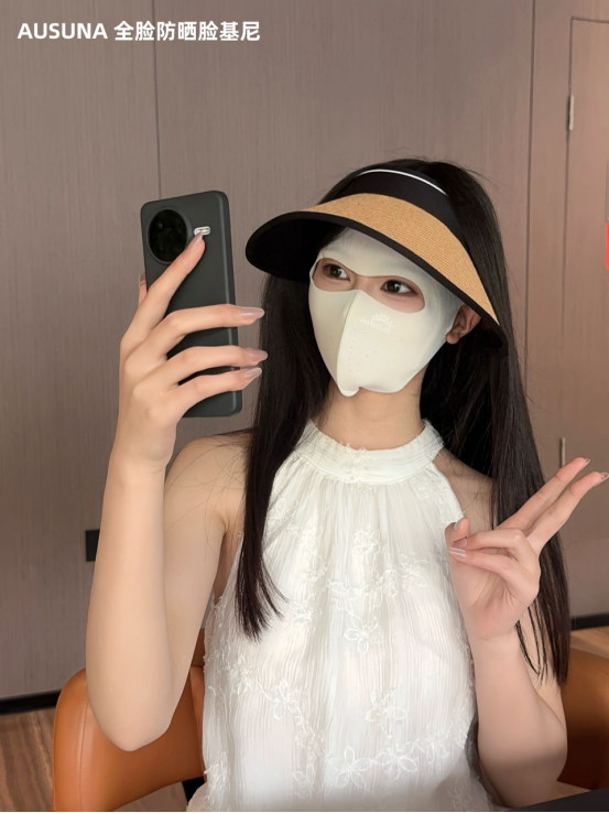 真正做到“滴水不漏”的高阶防晒 全脸物理隔离才是王道 而AUSUNA推出的这款全脸防晒脸基尼 正是时下各大博主热推、通勤户外 双向通吃的“夏季出行装备”