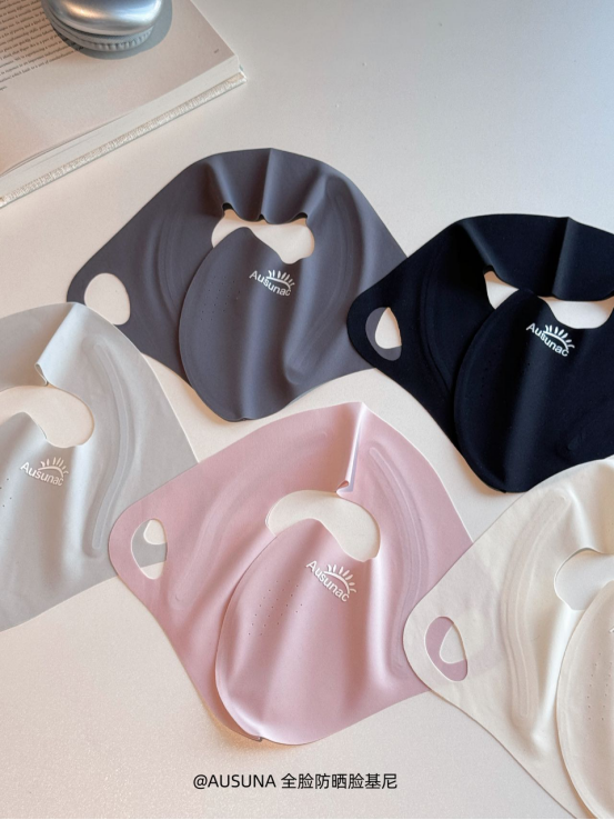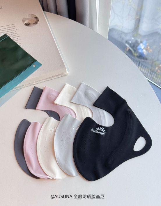 颜值拉满:从防晒工具变身时尚单品 AUSUNA全脸防晒面罩提供了 粉色、黑色、浅灰、深灰、白色 五种颜色选择 冷暖中性色调兼备,时尚指数爆表
