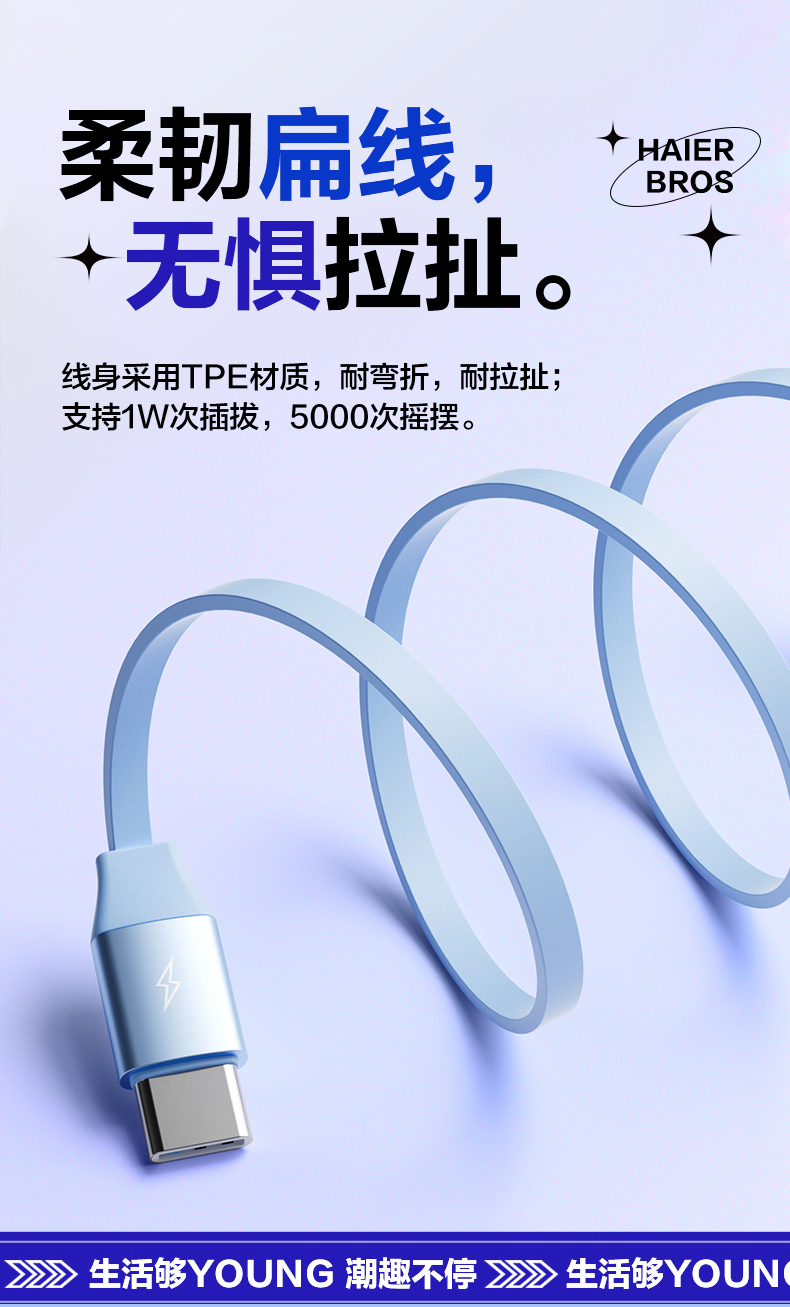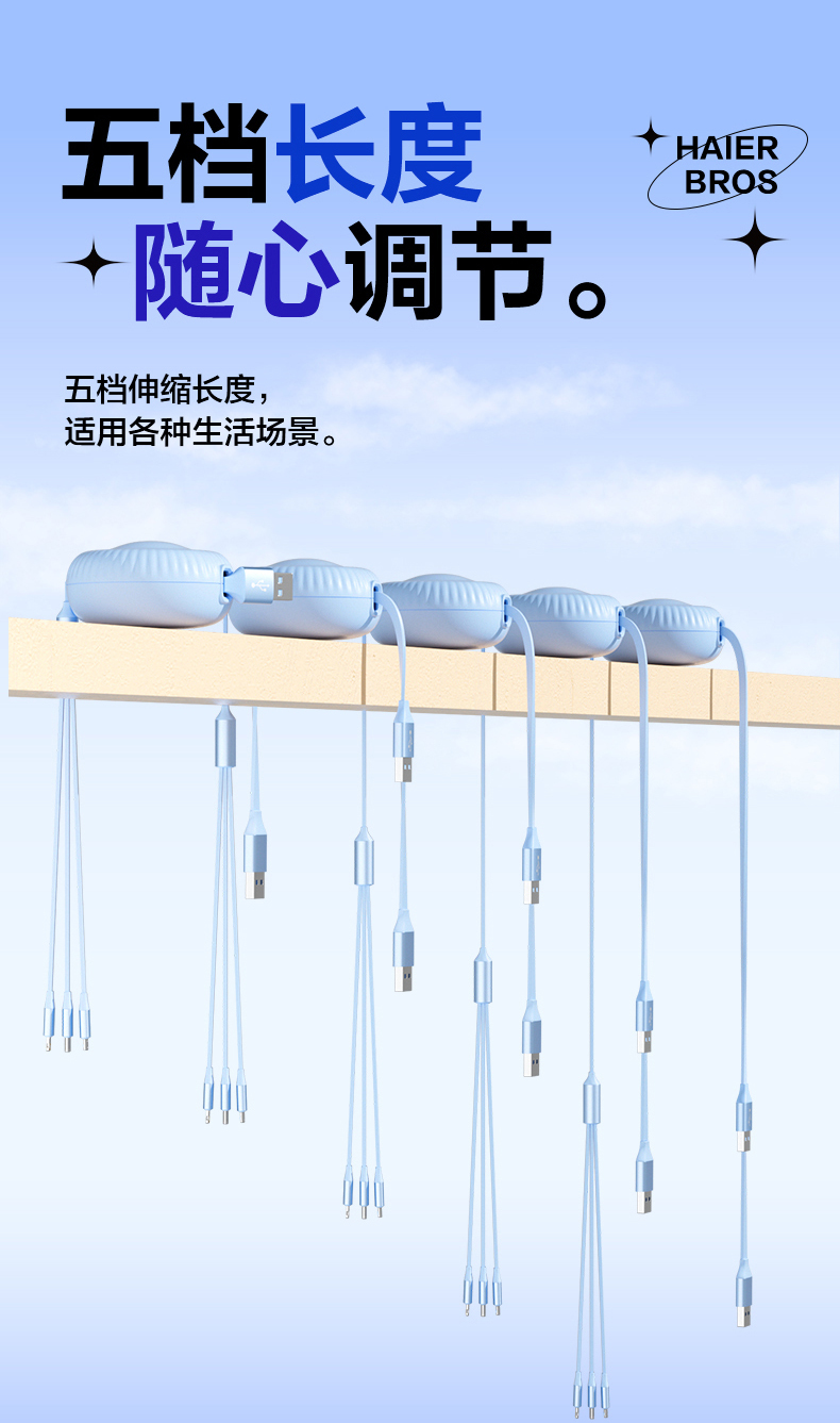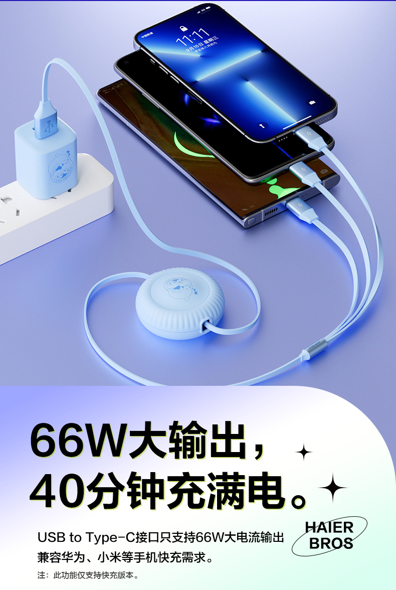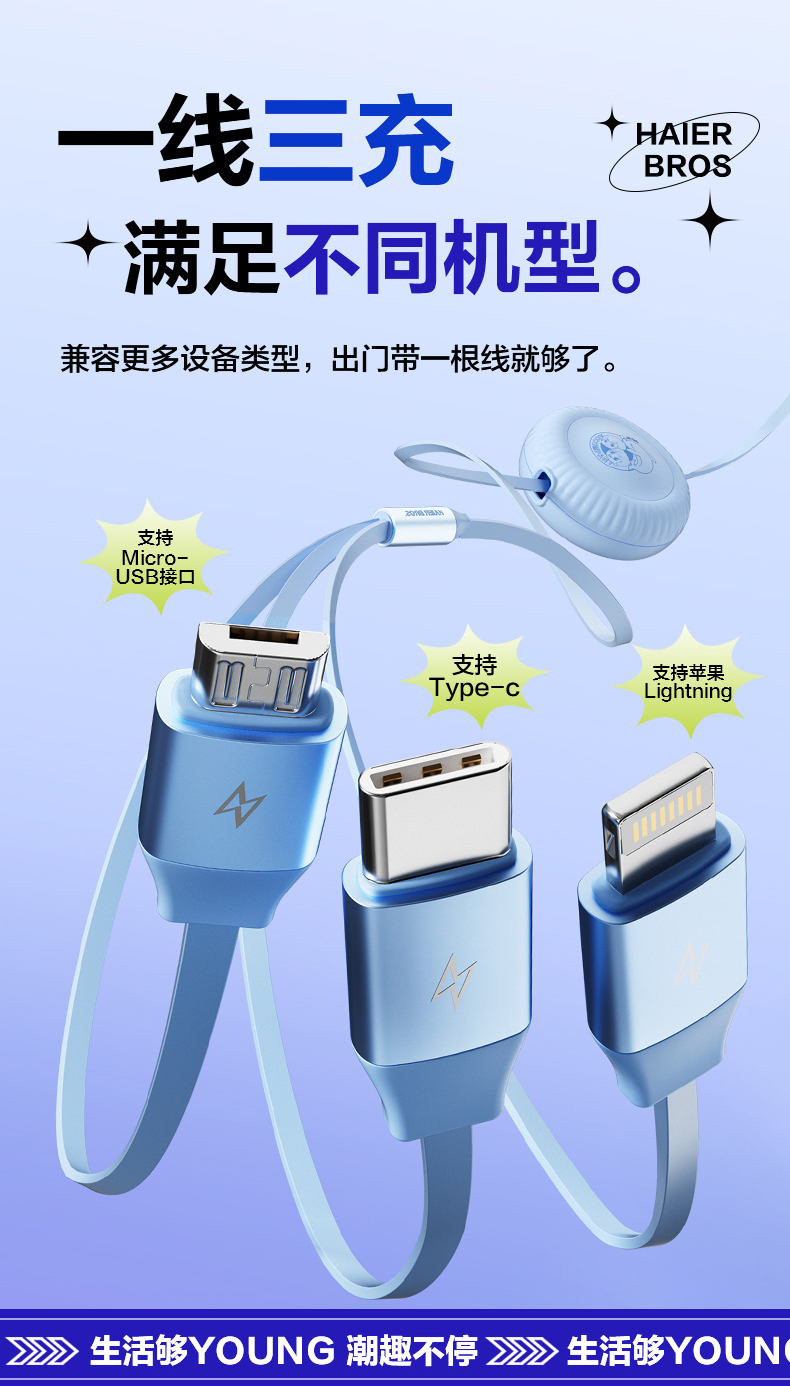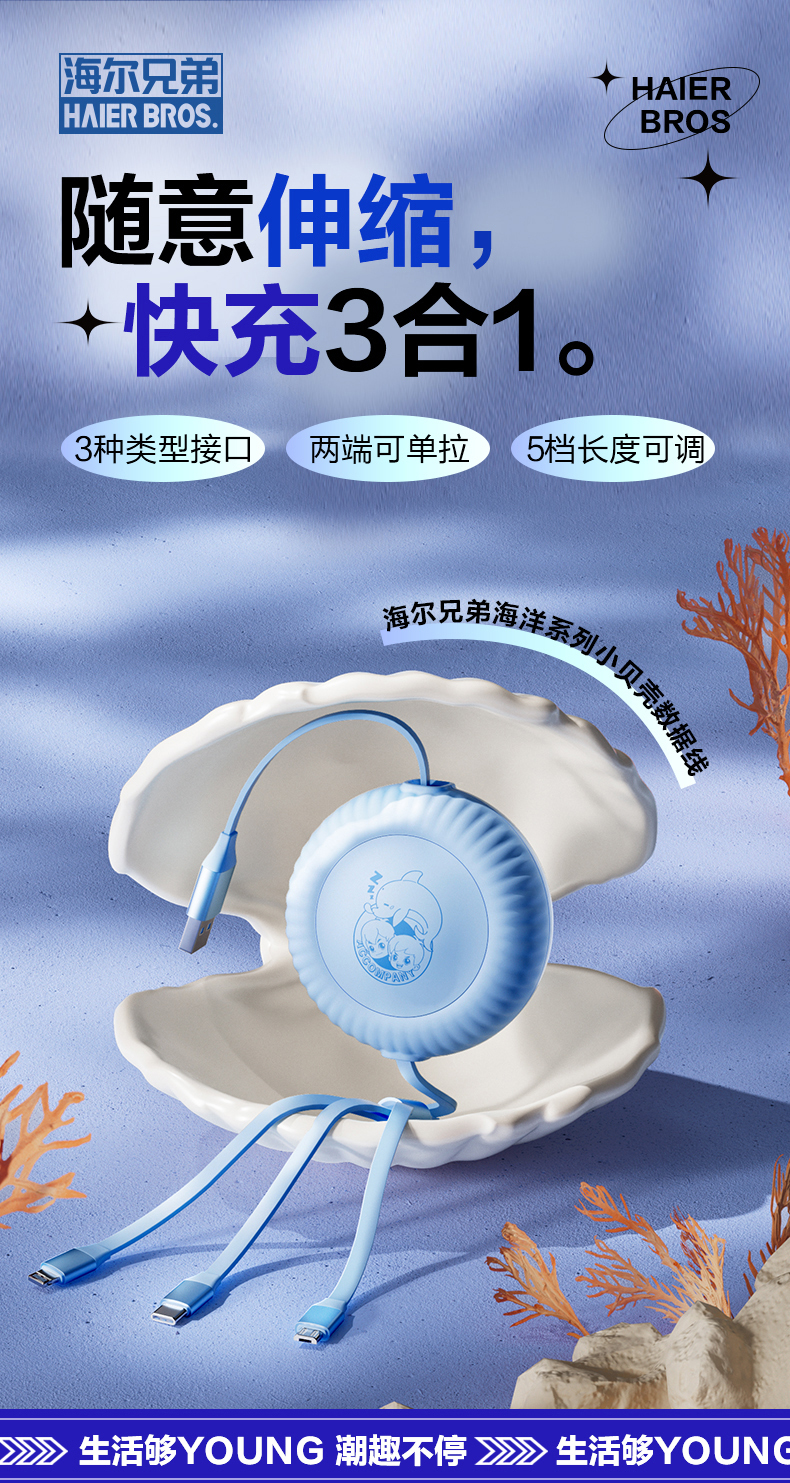 海尔兄弟小贝壳三合一数据线(6A闪充版) HB-ZP212
